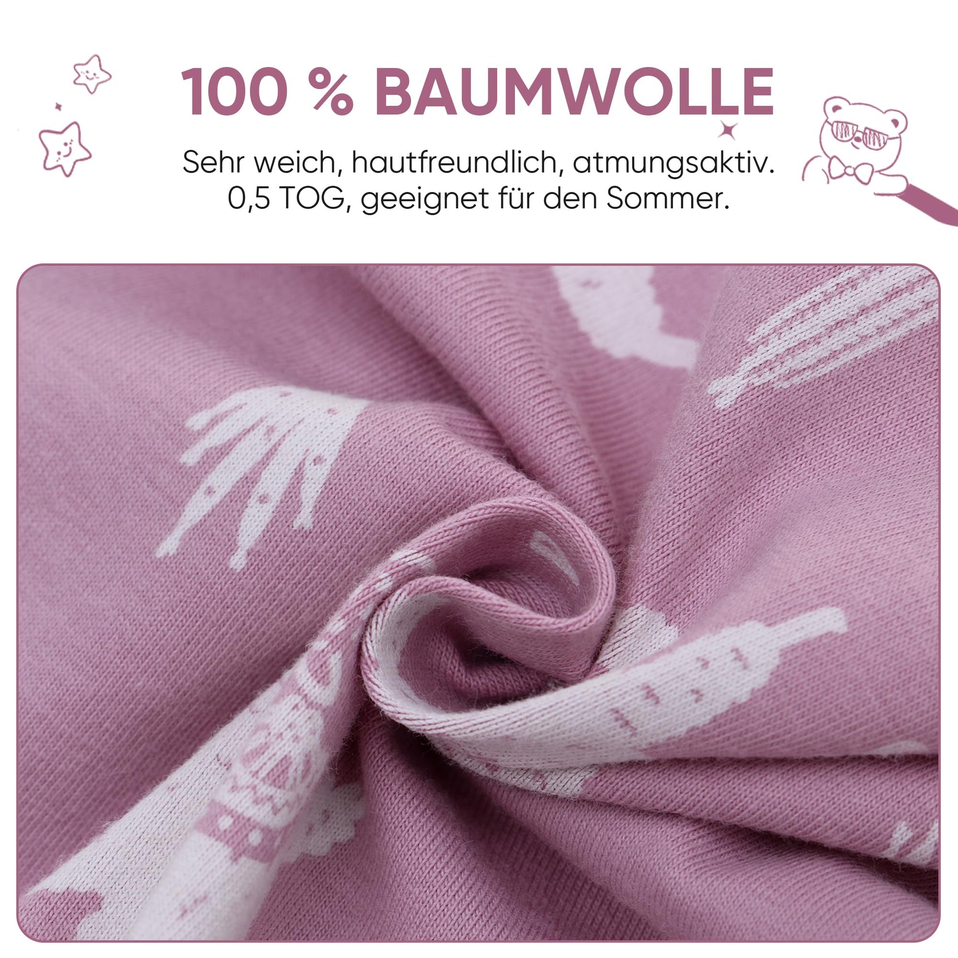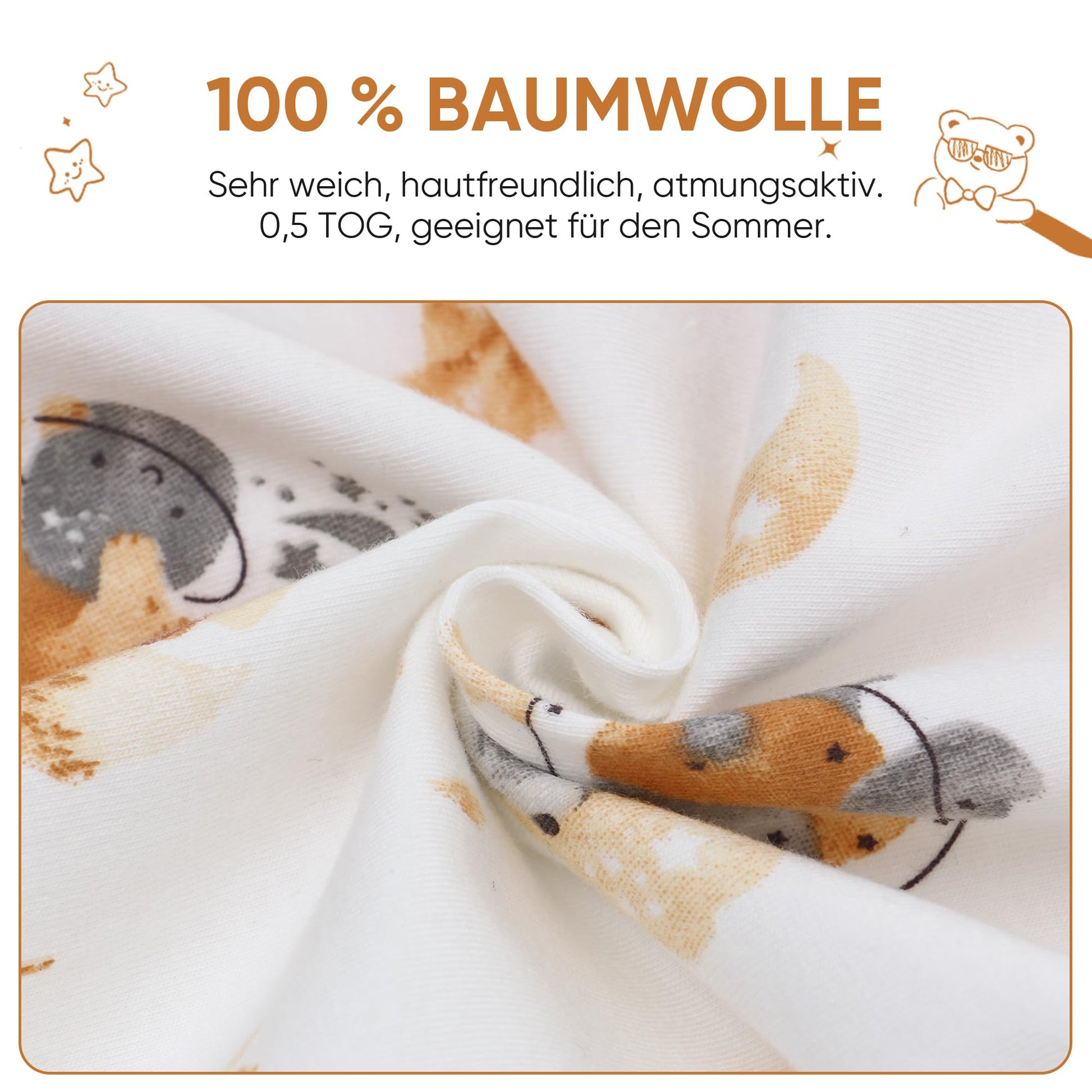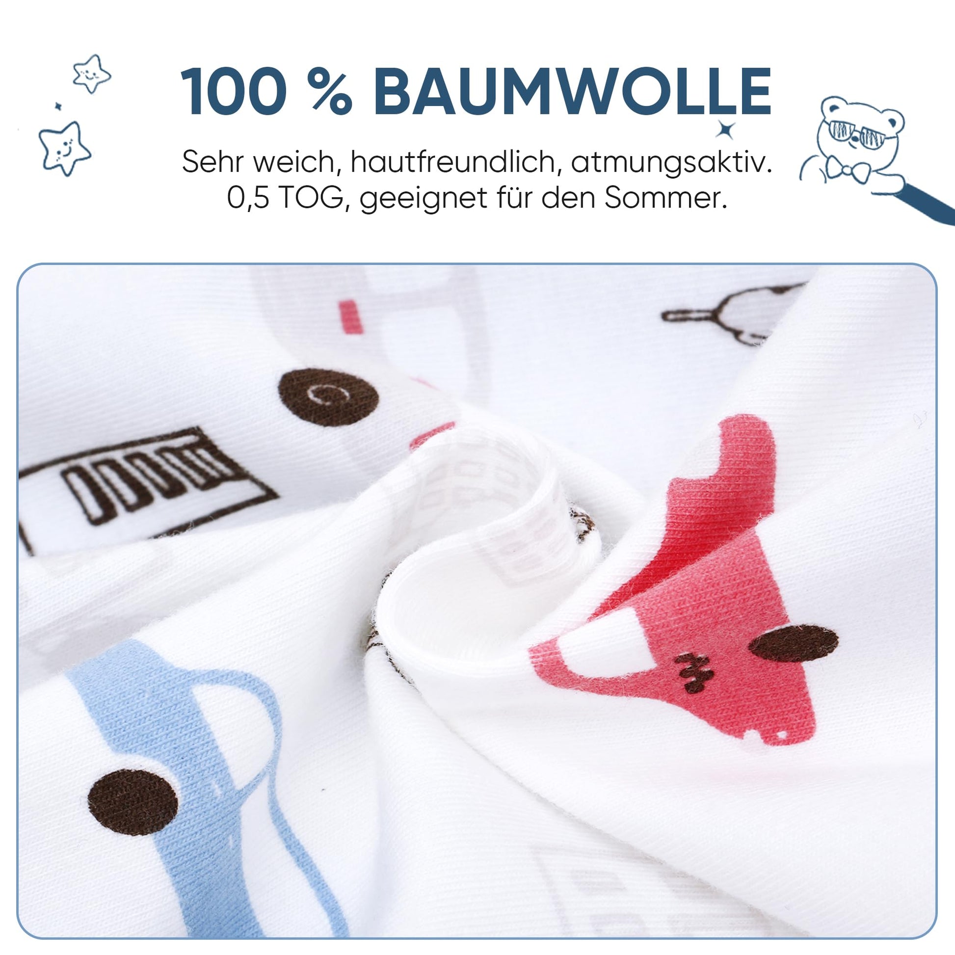 • Safe and comfortable: Our baby summer sleeping bag is made of 100% cotton material, is soft, comfortable, and breathable, so your baby can enjoy a restful and restful night's sleep. This spring/summer sleeping bag with a TOG value of 0.5 is suitable for temperatures between 24 and 28 degrees Celsius.