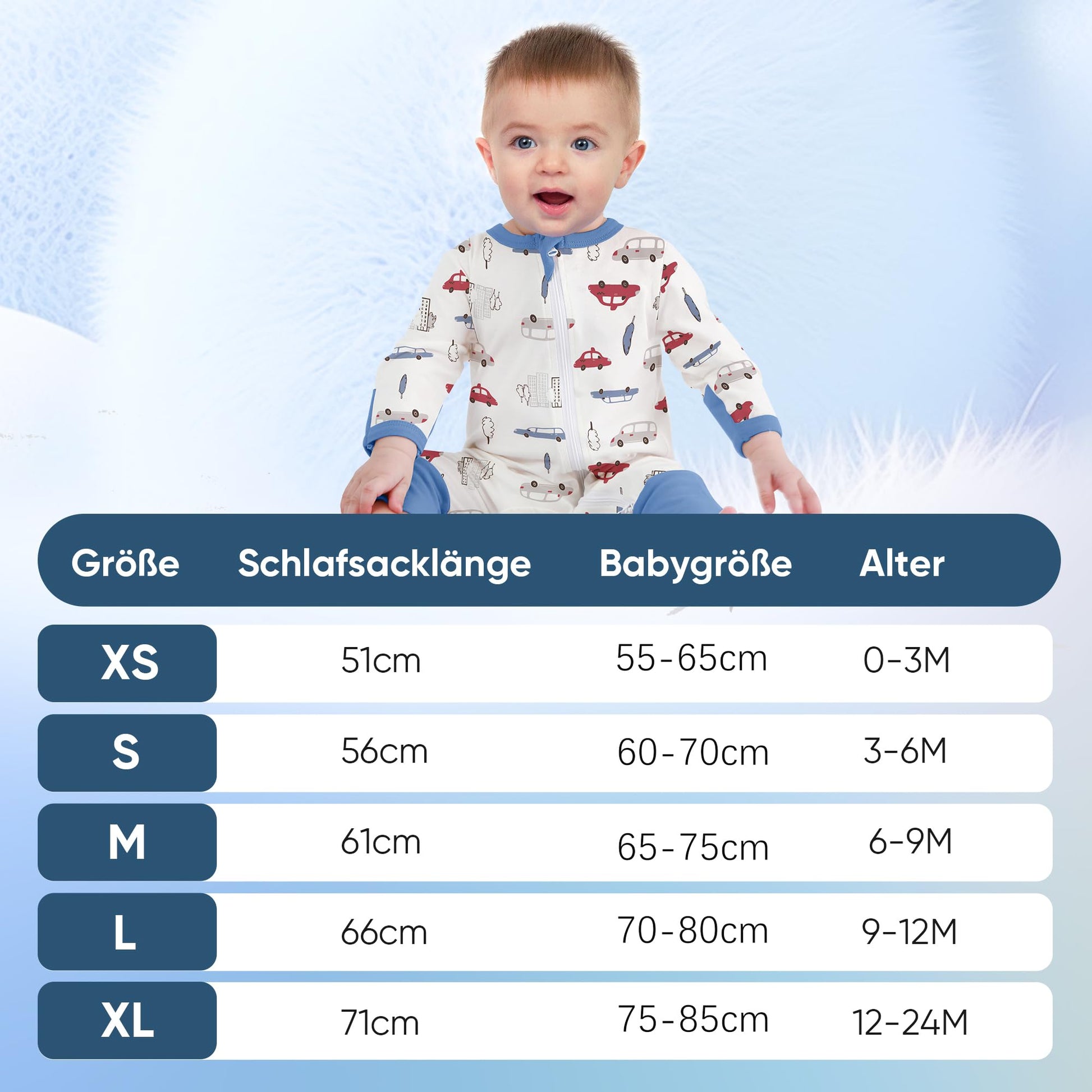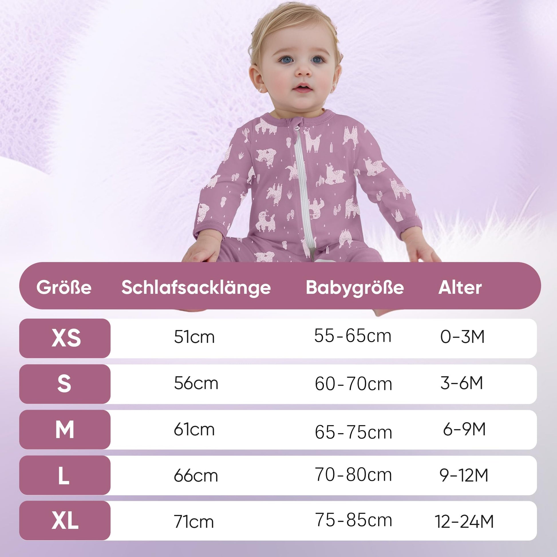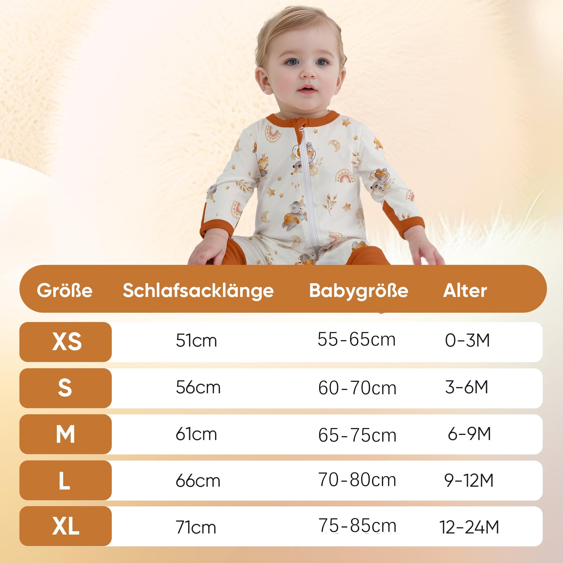 • Suitable size: The length of the baby sleeping bag is 51cm/0-3 months, suitable for babies 55-65cm tall. The length 56cm/3-6 months is suitable for babies 60-70cm tall. The length 61cm/6-9 months is suitable for babies 65-75cm tall. The length 66cm/9-12 months is suitable for babies 70-80cm tall. The length 71cm/12-24 months is suitable for babies 75-85cm tall.
