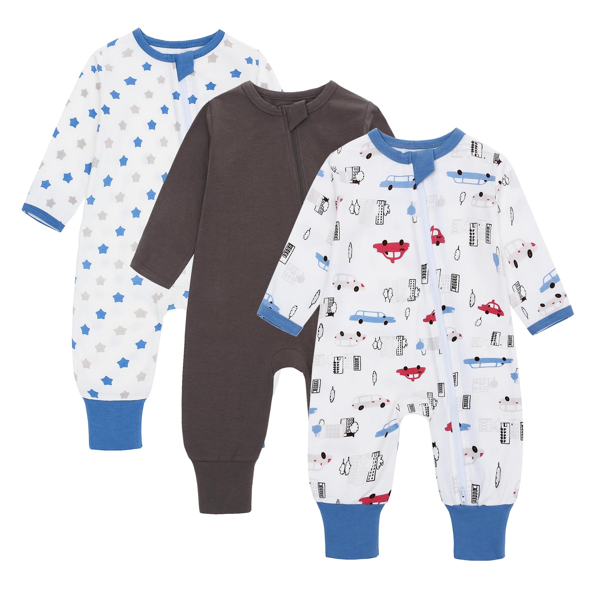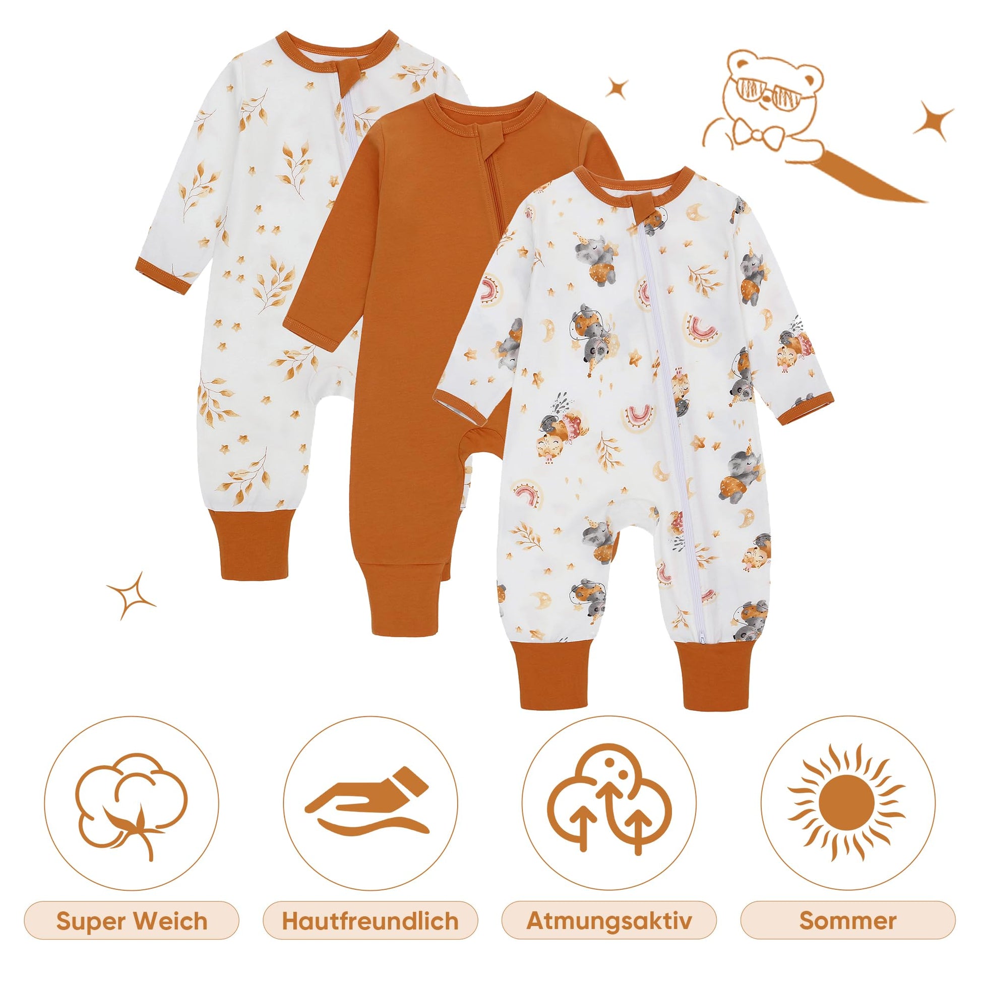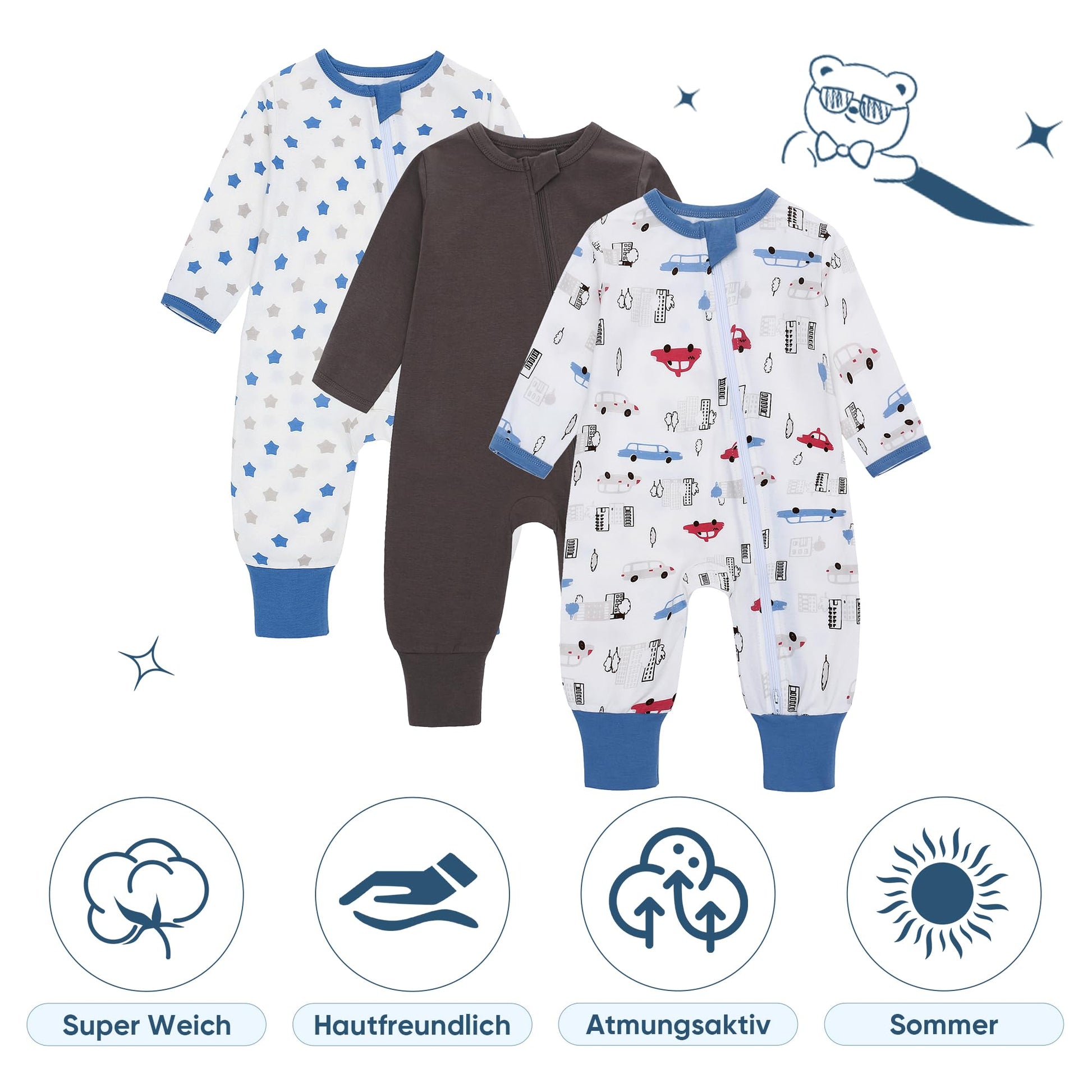 amo nenes 3 Pack Baby Rompers Newborn 0.5 Tog with Feet and Sleeves 100% Cotton Breathable Baby Boys Girls Jumpsuit, Baby Clothes Long Sleeve, 0-24 Months
