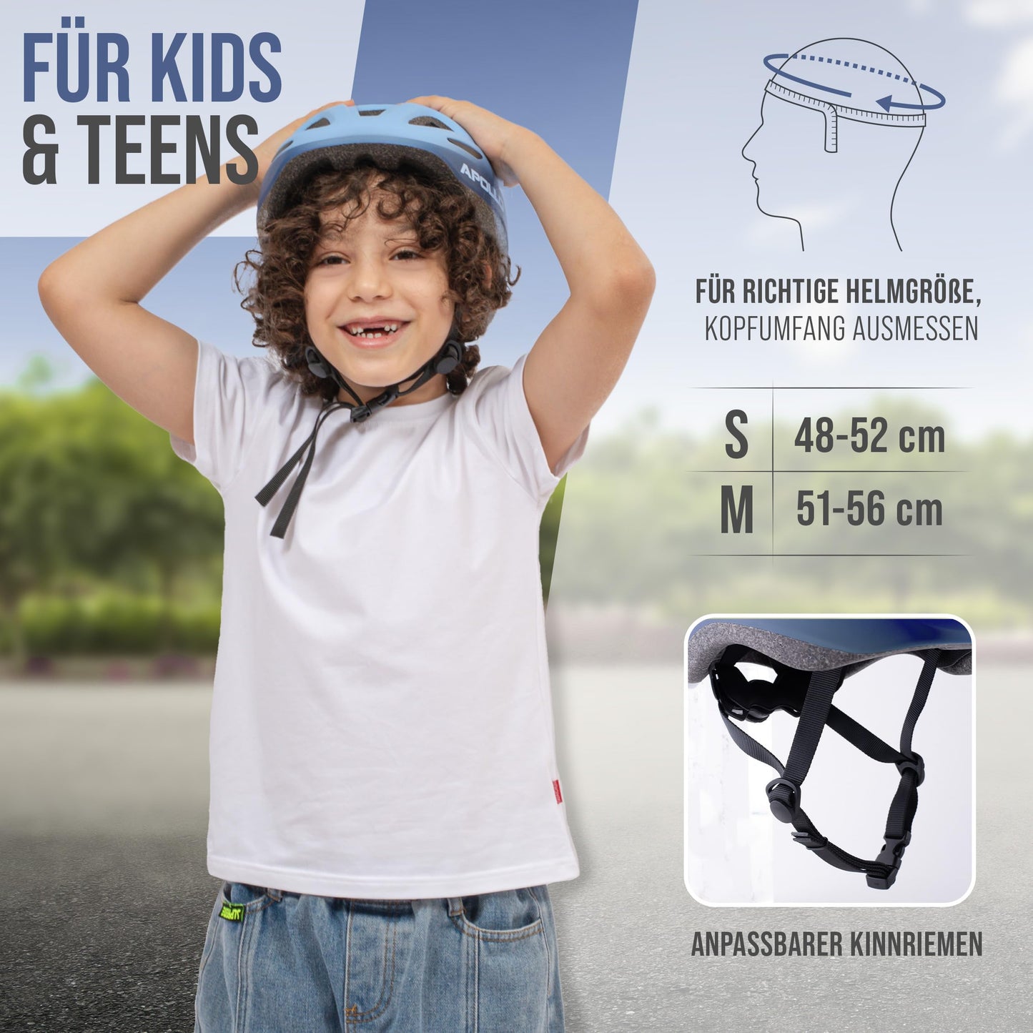 Apollo children's bicycle helmet, helmet for children and teenagers, multi-sport helmet, bicycle helmet for girls, bicycle helmet for boys, children's helmet from 3 years, adjustable children's helmet, from size 48, for bicycles and scooters