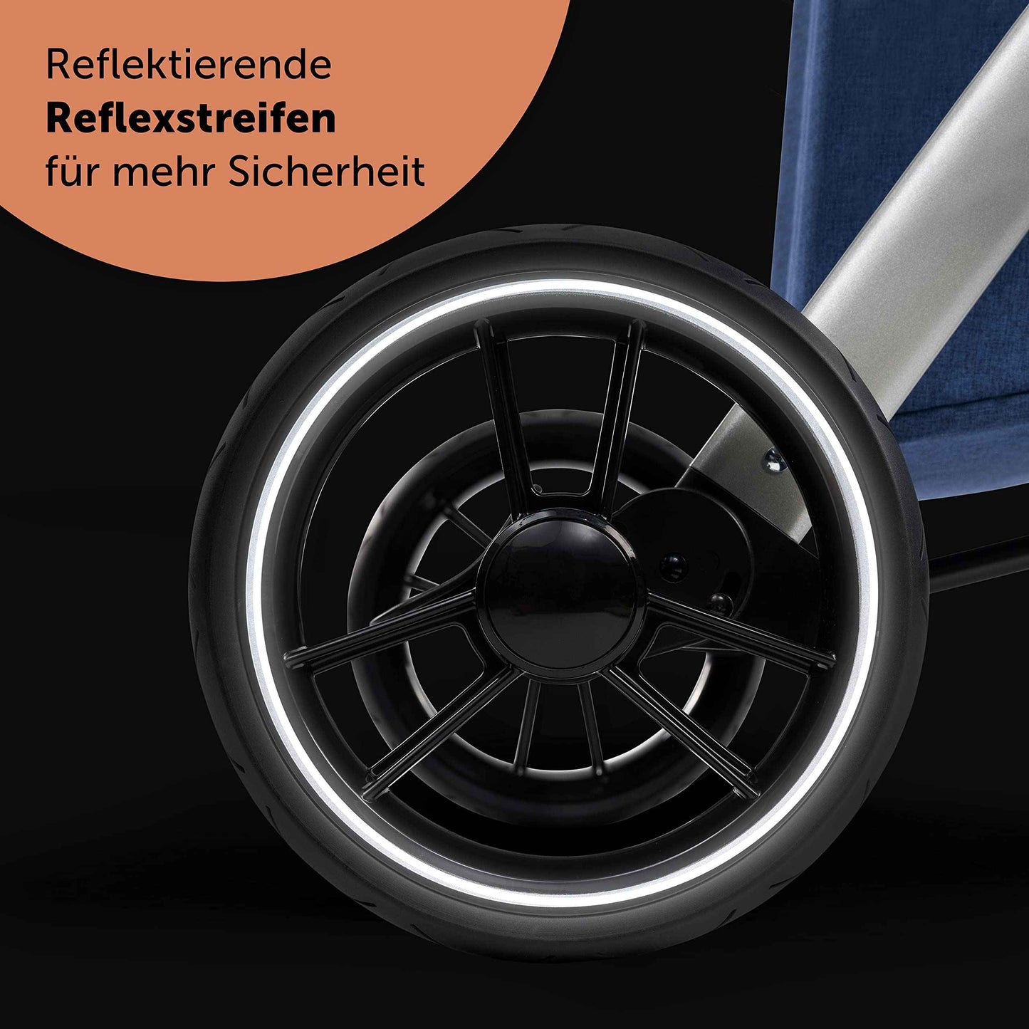 • Box contents: 1 x pram frame made of aluminium with height-adjustable handle; 1 x baby seat, 1 x baby bath/buggy seat; sun protection and weather foot muff; 1 x changing bag, mosquito net and rain cover