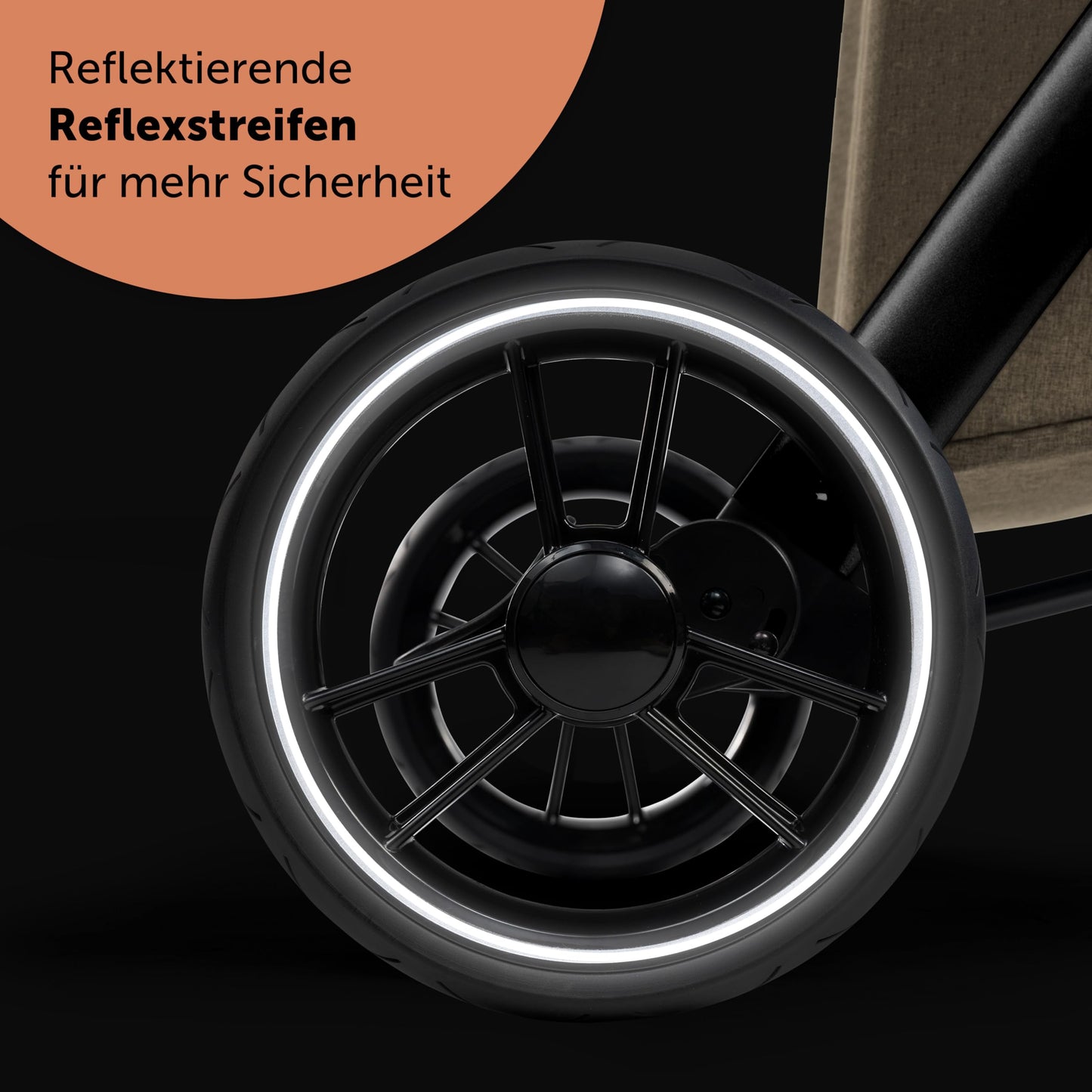 • Safety and comfort – the tyres have integrated reflective strips, which reflect brightly in the dark in car light. The tyres are puncture-proof and have a very high driving comfort.