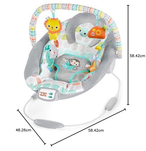Bright Starts Baby Bouncer with Soothing Vibrations, Infant Seat, Music, Removable Toy Bar, 0-6 Months, up to 20 lbs (Whimsical Wild)