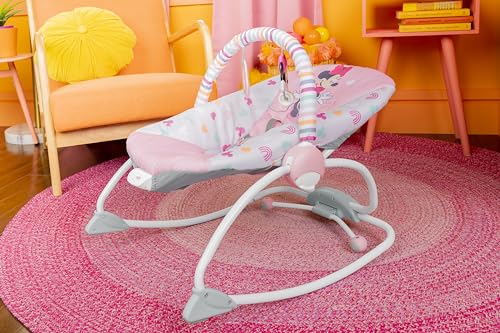 Bright Starts, Disney Baby Minnie Mouse Forever Besties, Bouncer for Babies and Toddlers, with Soothing Vibrations, Removable Toy Arch and 2 Toys, Rose, 12209