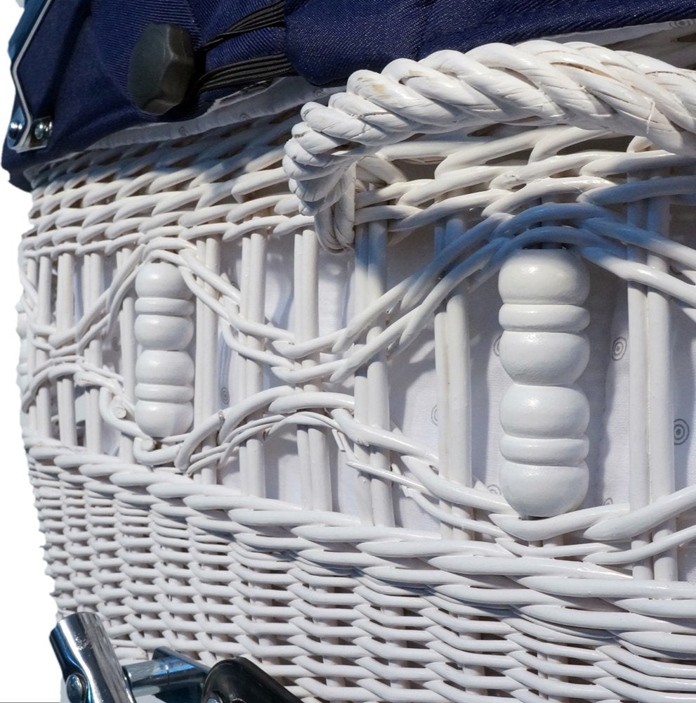EICHHORN Stroller Wicker Basket - Pram Made of Real Willow, Handwoven Basket, White, Fabric Navy