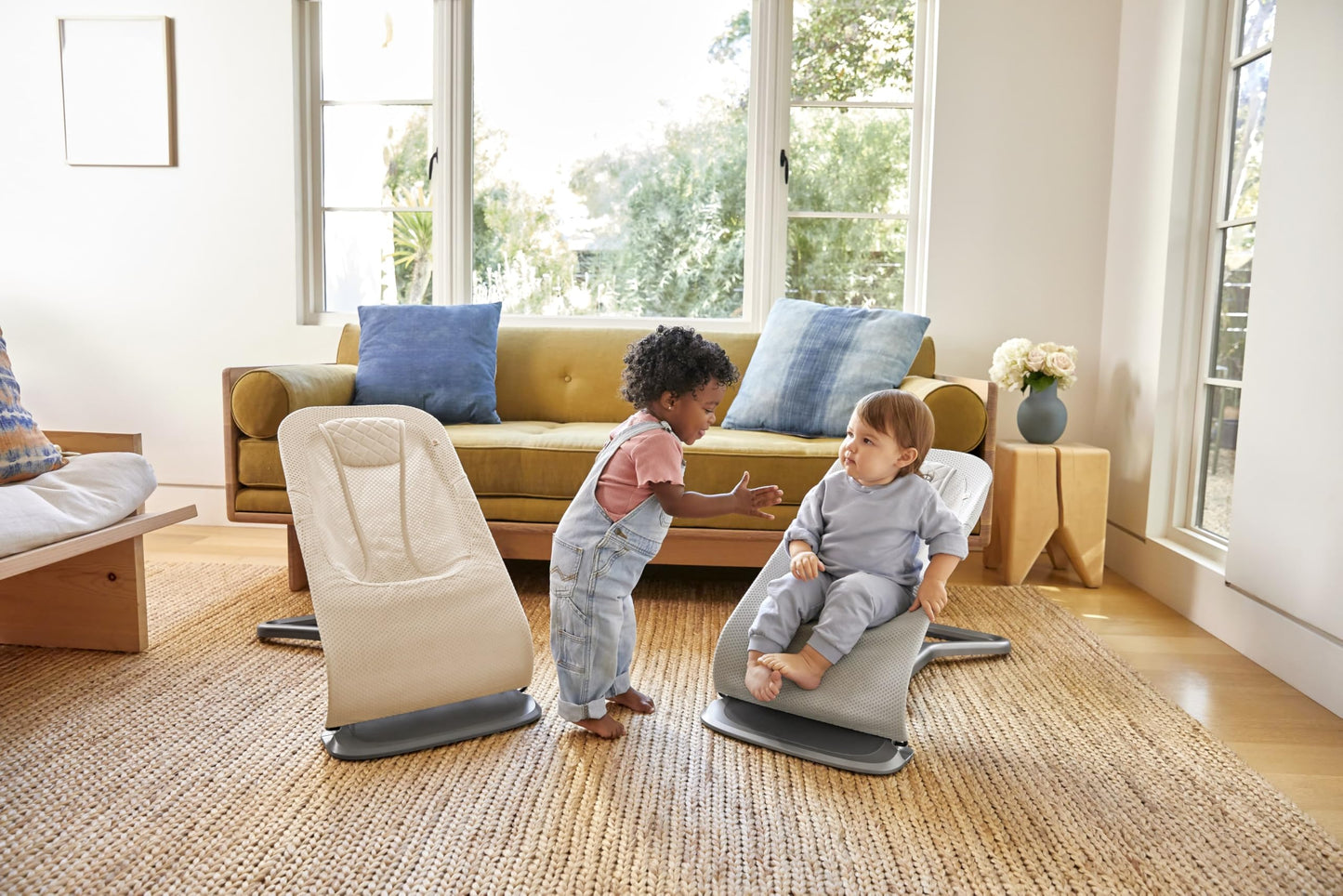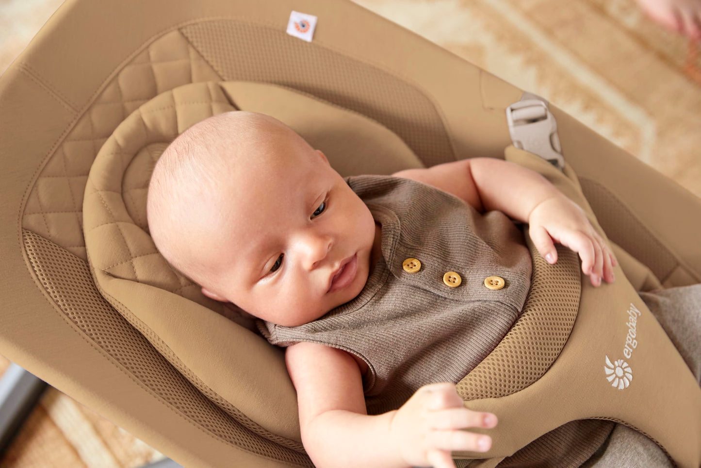 • NATURAL ROCKING MOVEMENT - No plugs, batteries, or switches. Gentle self-regulation, as the baby triggers the bouncer's movement.