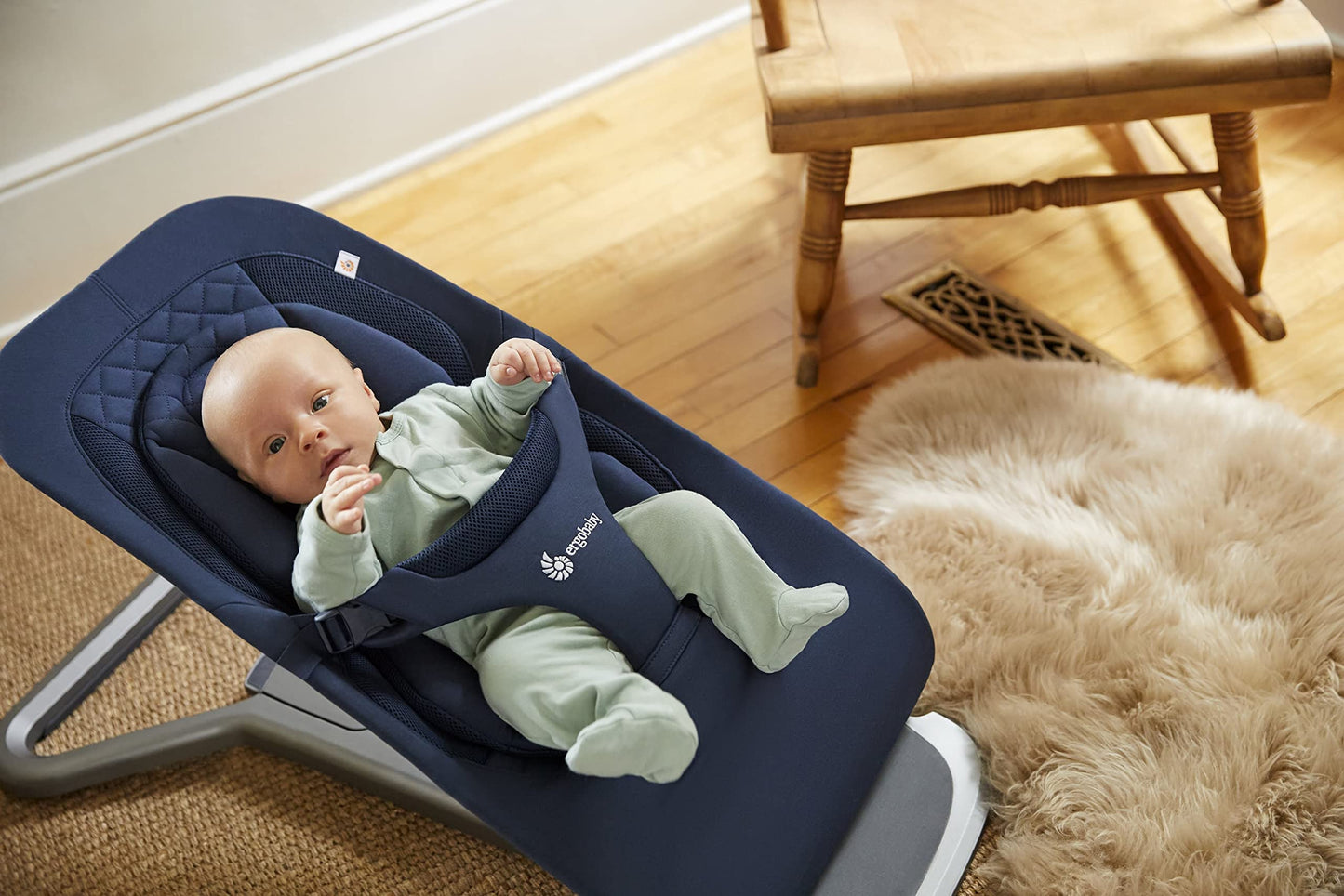 Ergobaby 3-in-1 Evolve Bouncer, Ergonomic Baby Bouncer for Newborns from Birth to Toddler, Baby Swing with Newborn Insert (2.5 kg - 13.2 kg), Midnight Blue