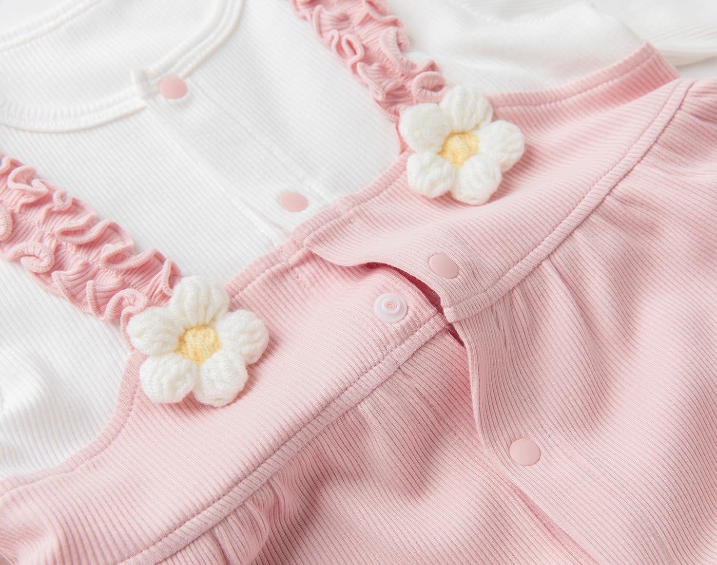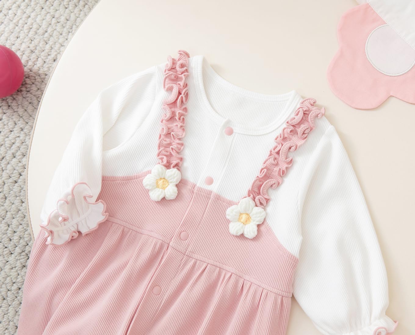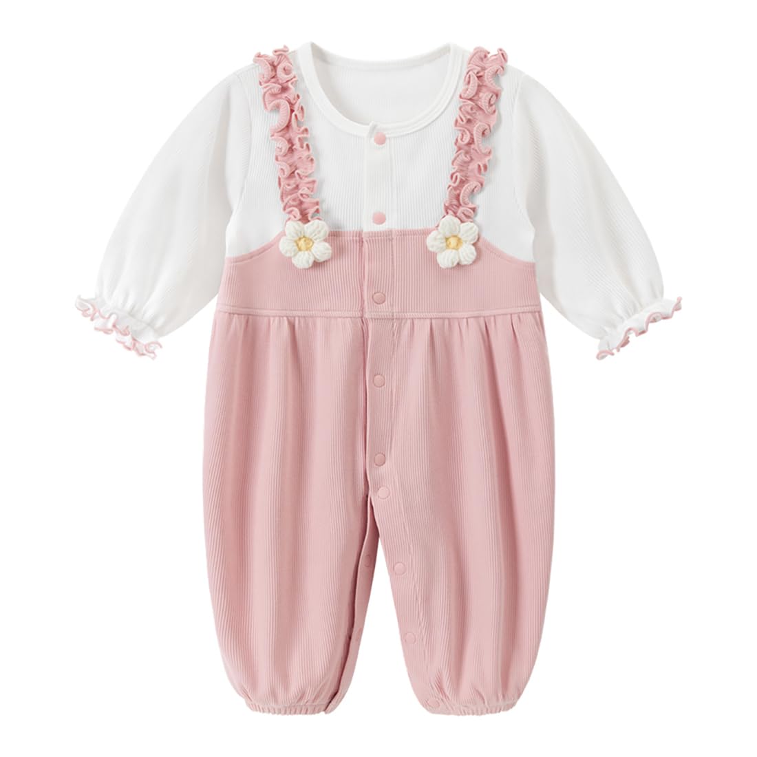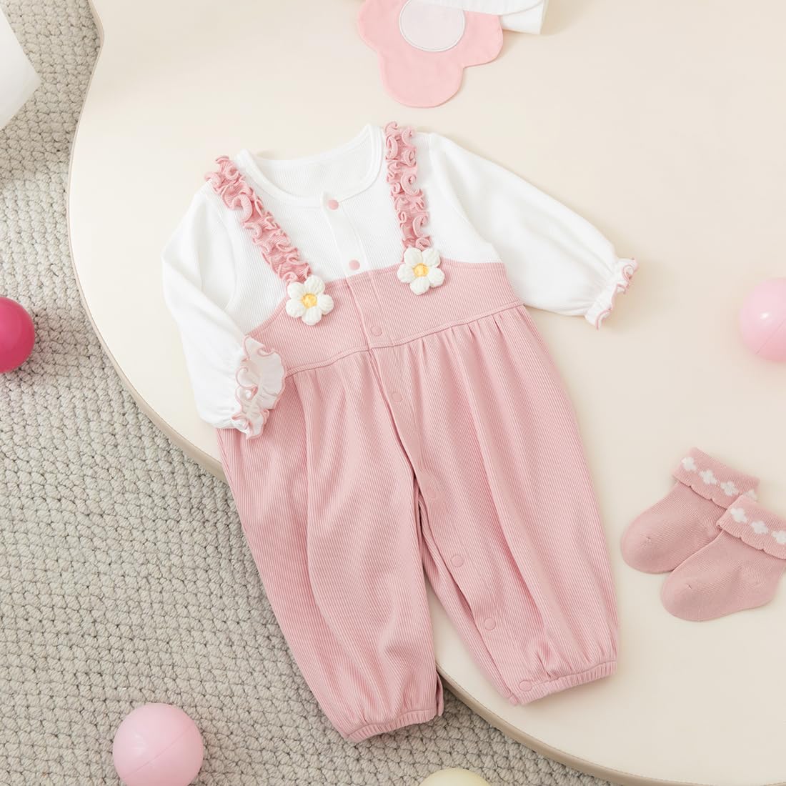 gurcooc Newborn Baby Girl Romper Ribbed Long Sleeve Bodysuit Floral Ruffle Jumpsuit Onesie Outfit Set, 0-18 Months
