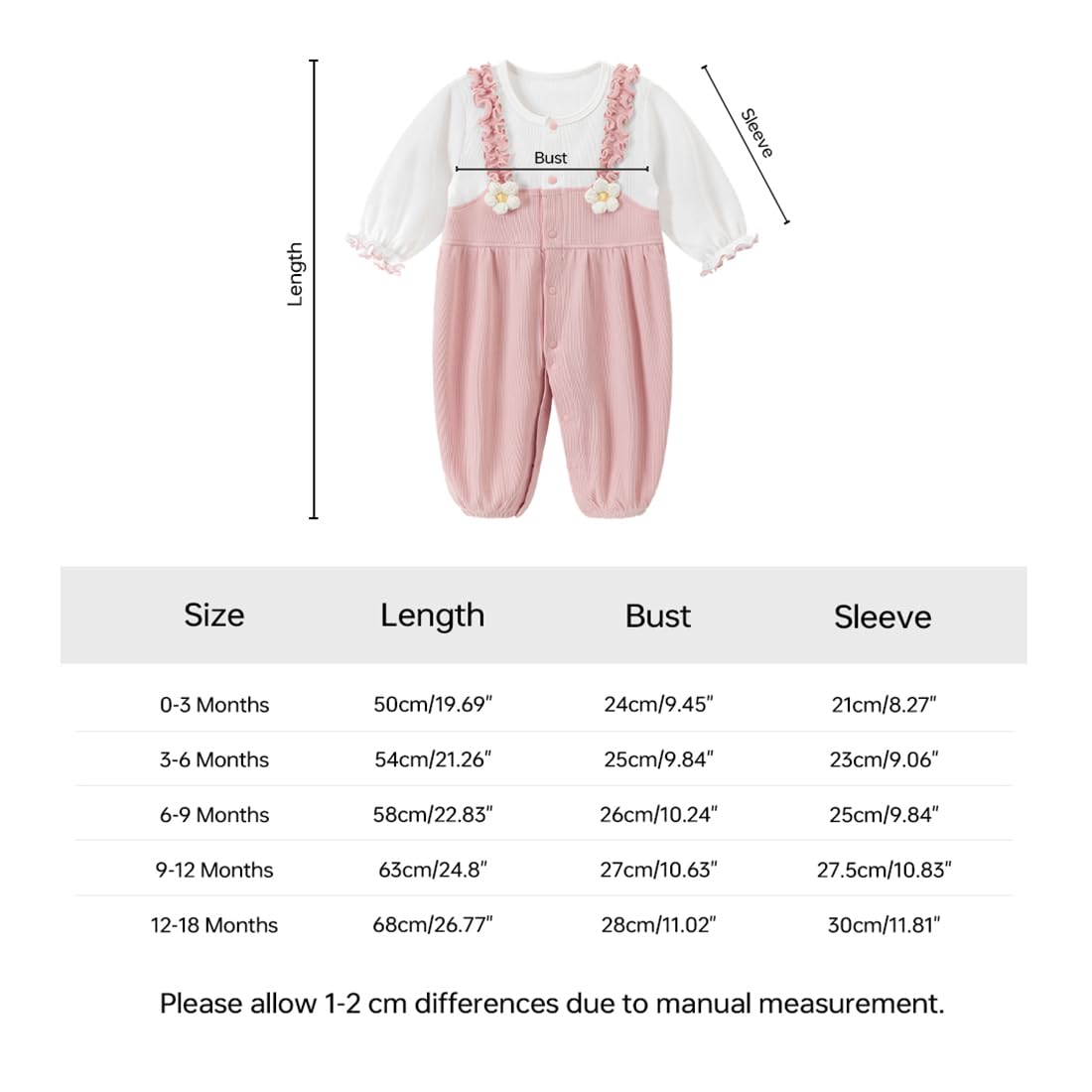 • Size: 59 for 0-3 Months; 66 for 3-6 Months; 73 for 6-9 Months; 80 for 9-12 Months; 90 for 12-18 Months, Detailed size reference, pls see the size chart in the picture showcase or description part