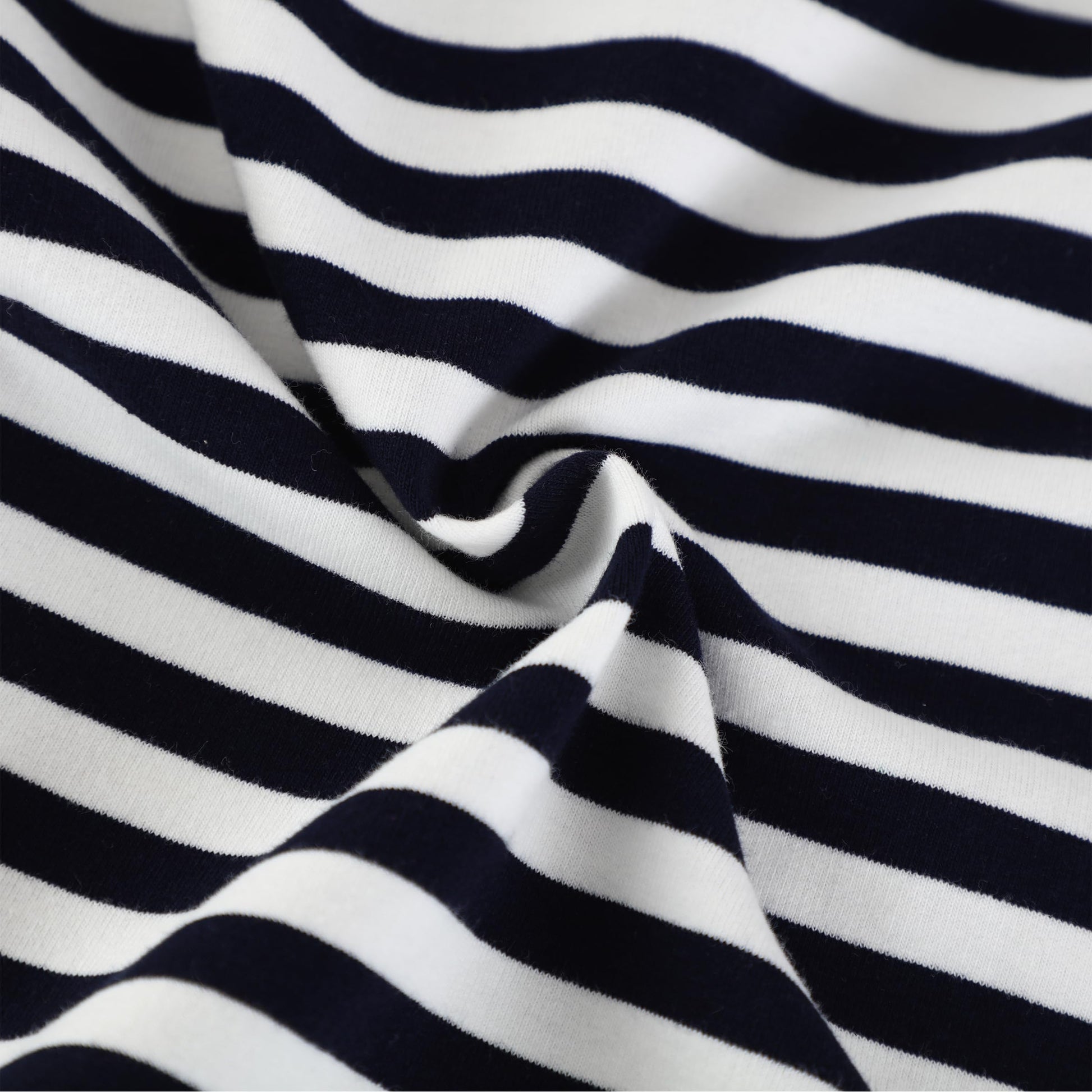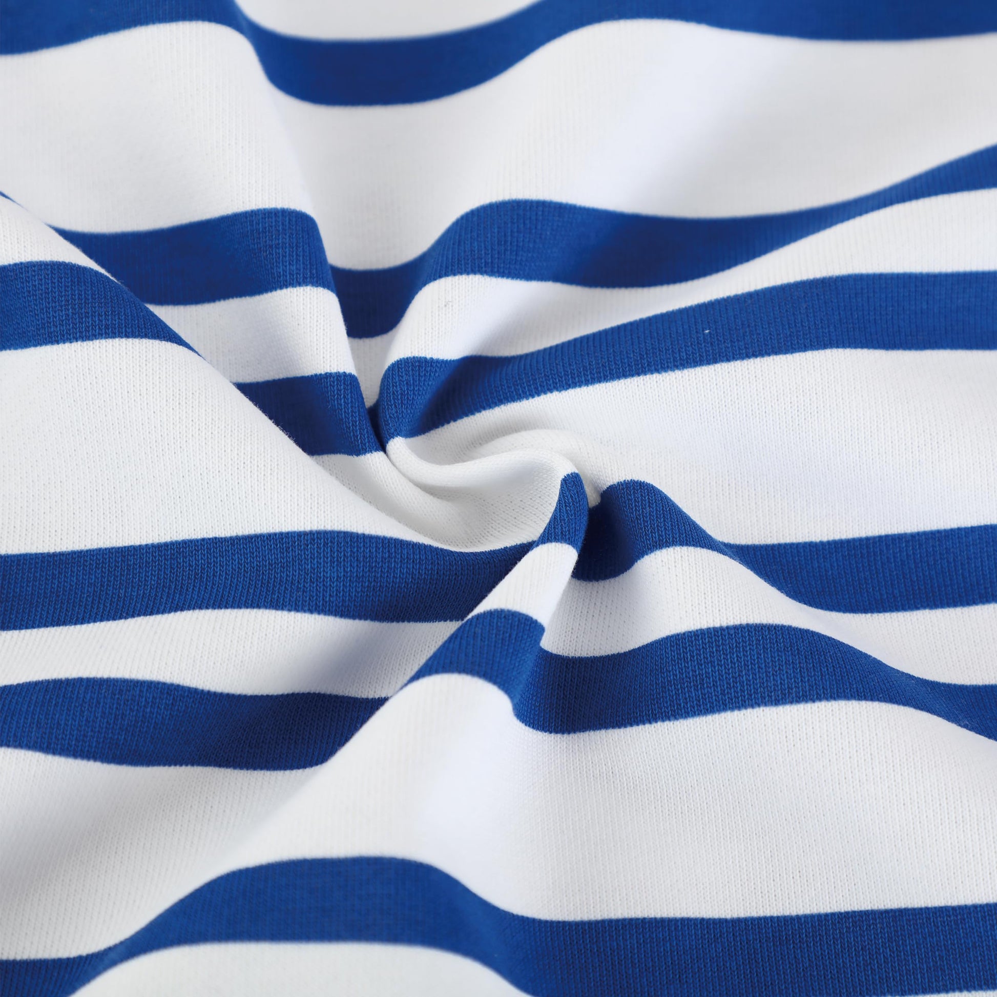 Marineblau-weiß gestreifter Stoff oder Kleidungsstück, das in verschiedenen Falten oder Positionen abgebildet ist.