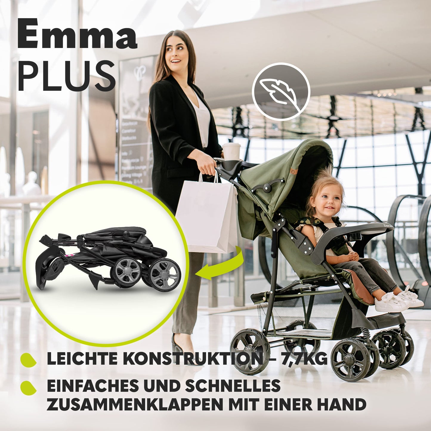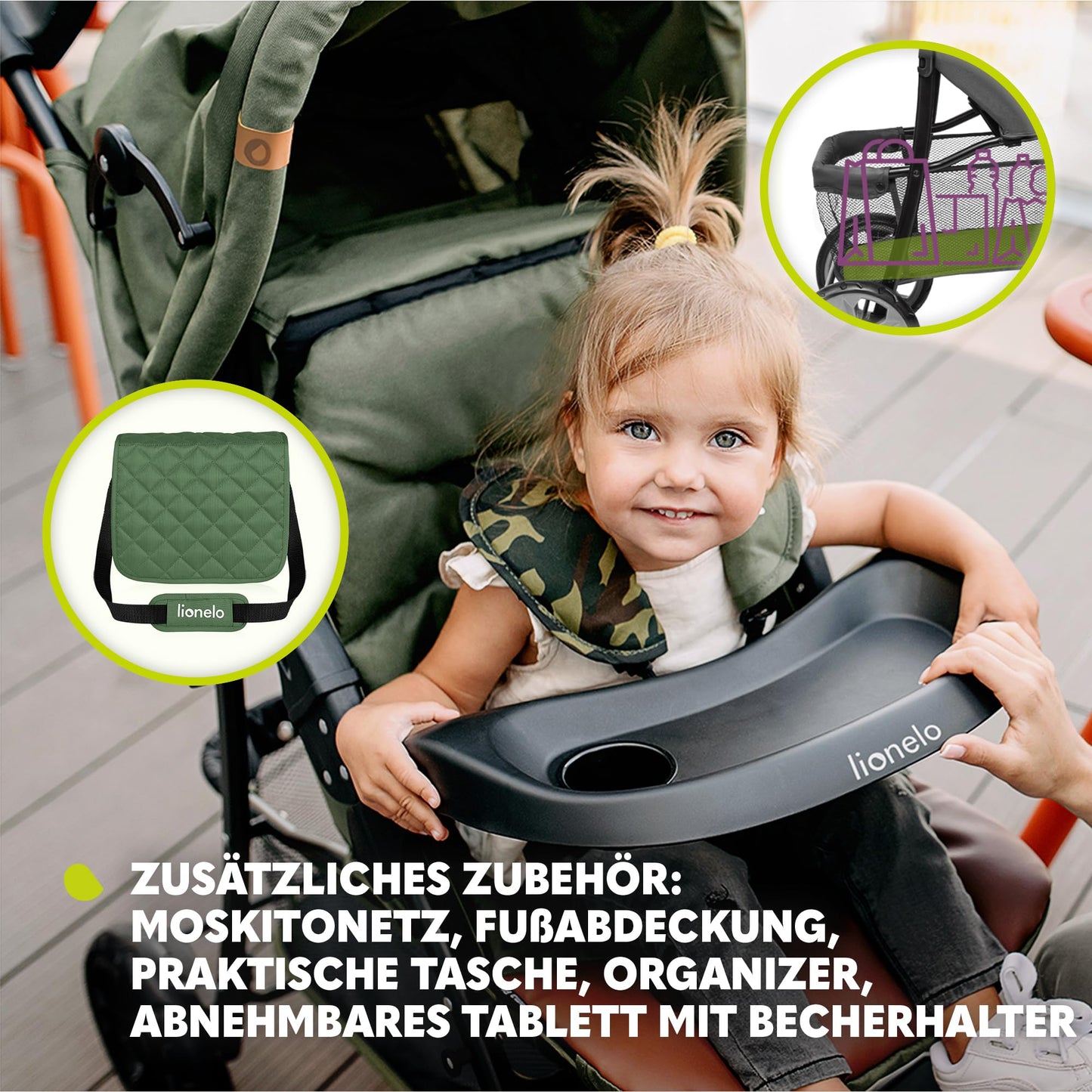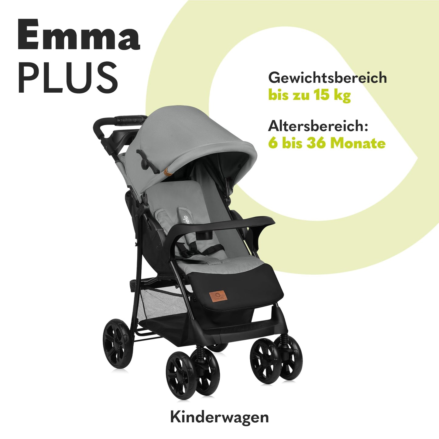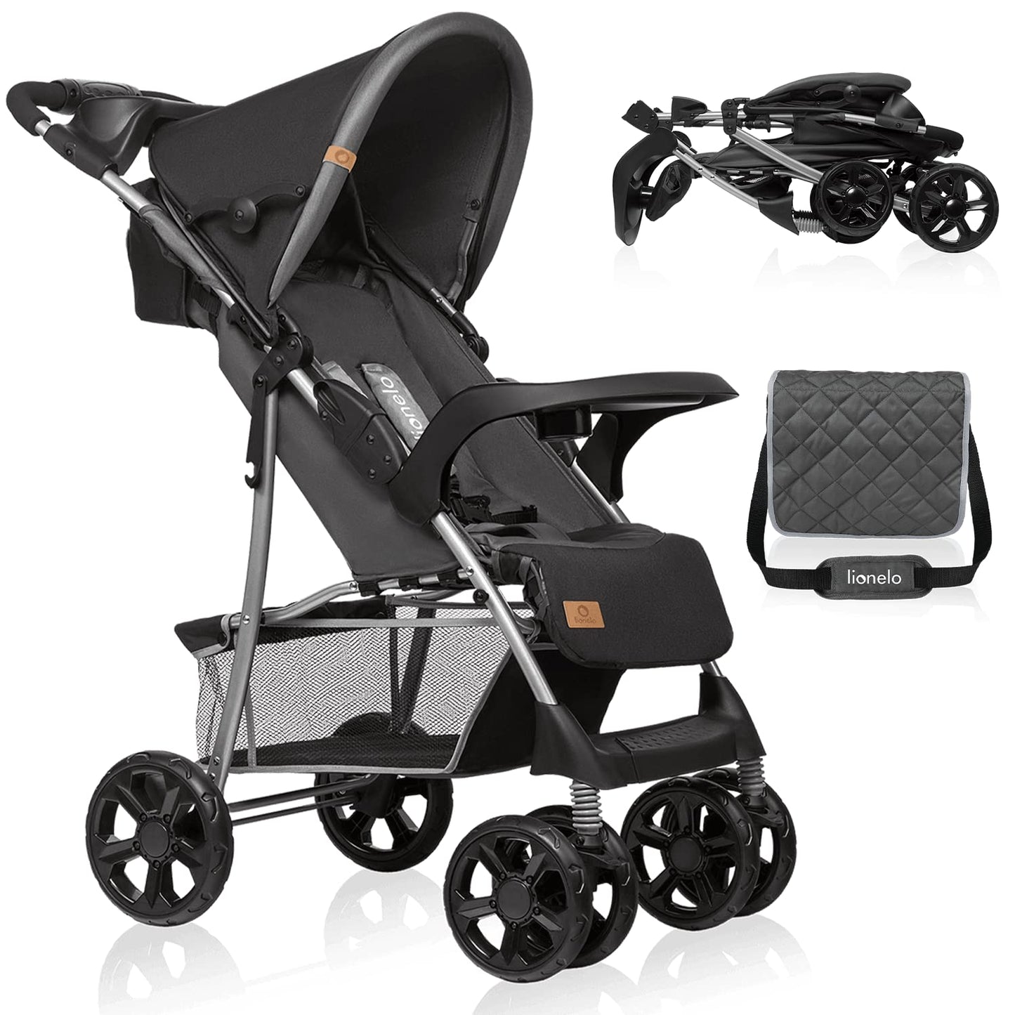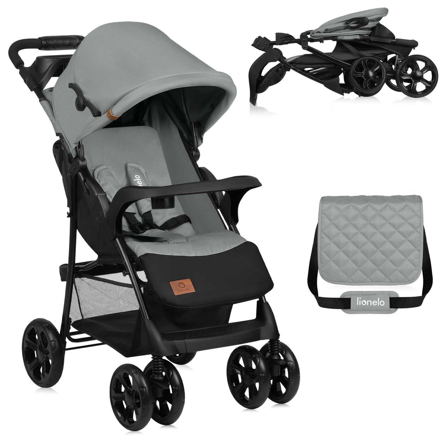 LIONELO Emma Plus stroller up to 15 kg, children's sports stroller, light modern small buggy with reclining position, foldable, large wheels, large basket, bag Stone