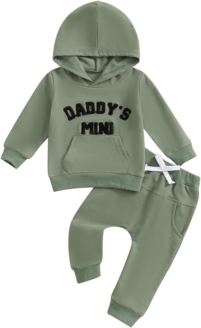 LUVCES Kleinkind Baby Jungen Outfits Langarm Daddy’s Mini Kapuzenpullover Sweatshirts + Hosen 2-teiliges Herbst Winter Frühling Kleidungsset