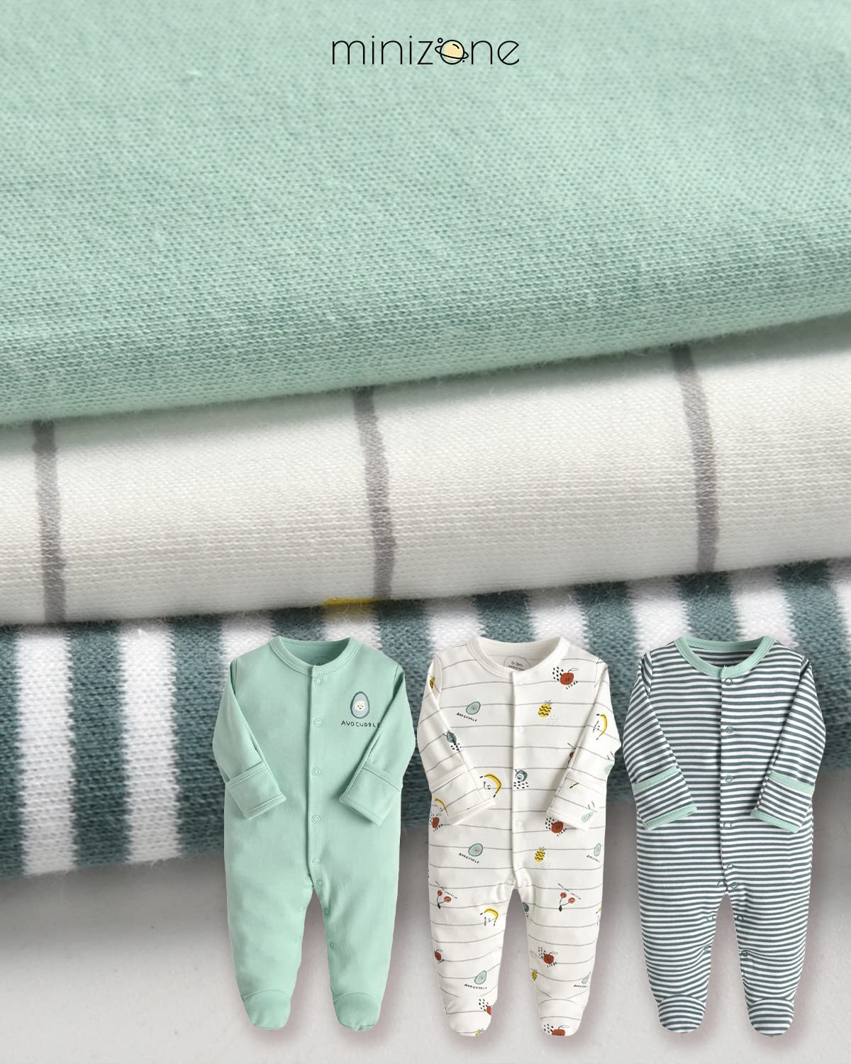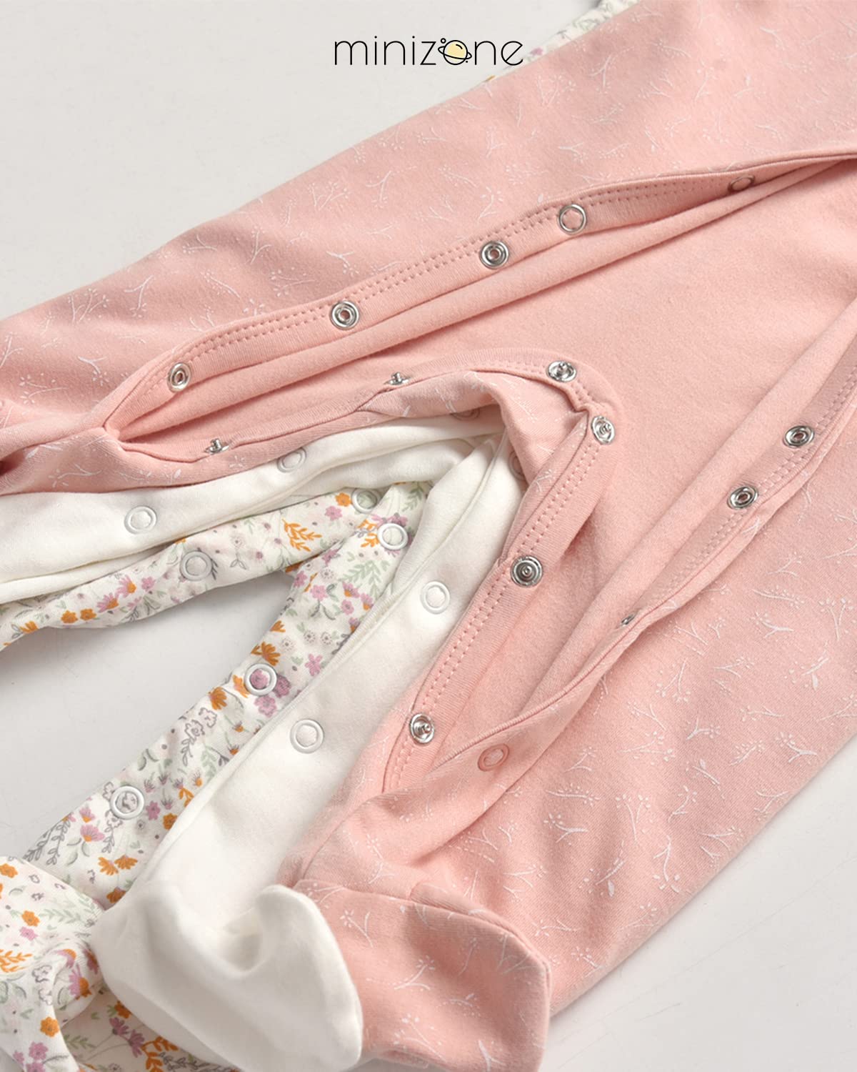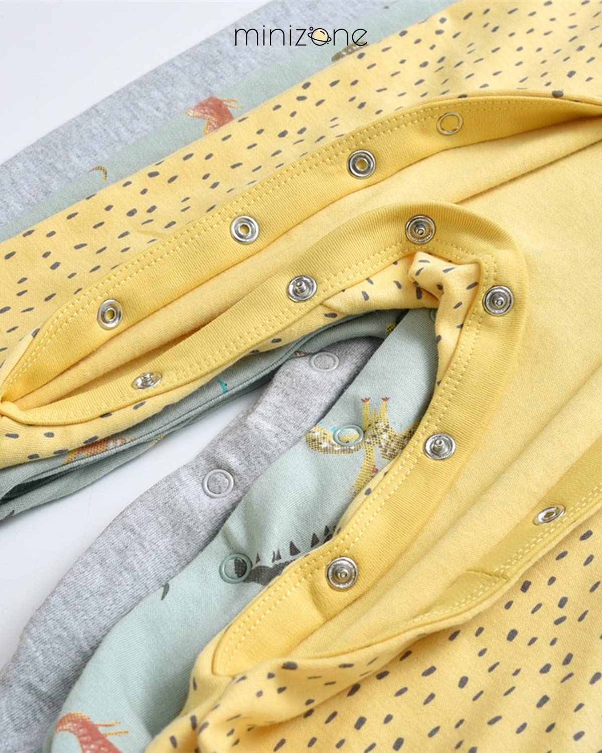 Minizone Baby Sleepsuits 3-Pack, Pajamas Long Sleeve Rompers Boys Girls Gift 9-12 Months