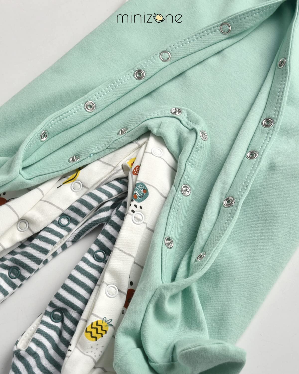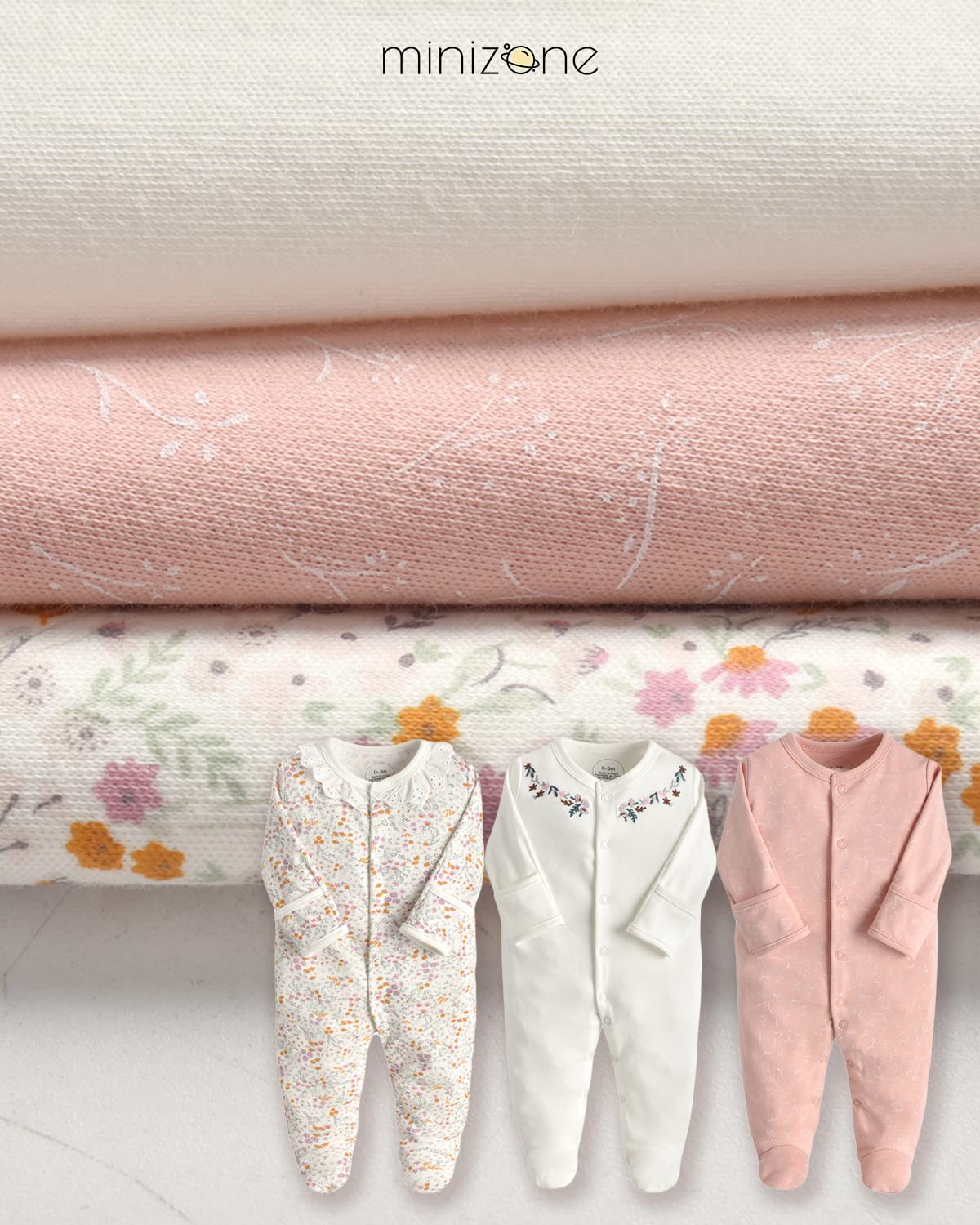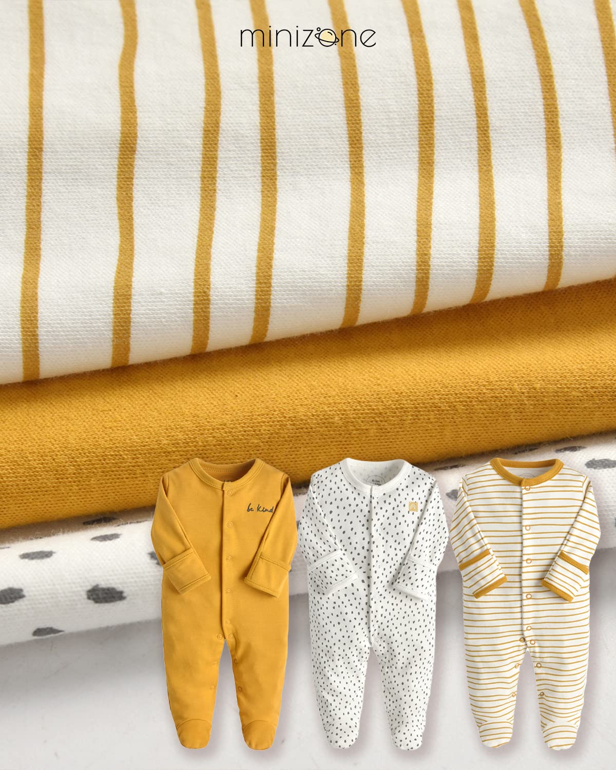 Minizone Baby Sleepsuits 3-Pack, Pajamas Long Sleeve Rompers Boys Girls Gift 9-12 Months
