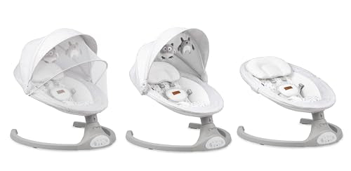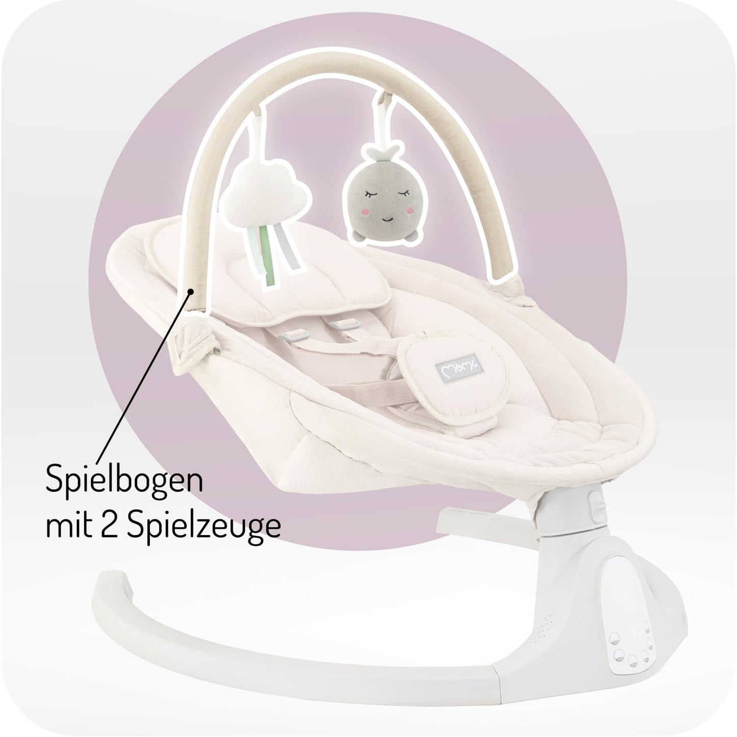 MoMi KENANI baby bouncer for children up to 9 kg, foldable, with remote control & Bluetooth for connecting to a smartphone, battery or power connection, with 5-point safety belt, sun protection, insect net