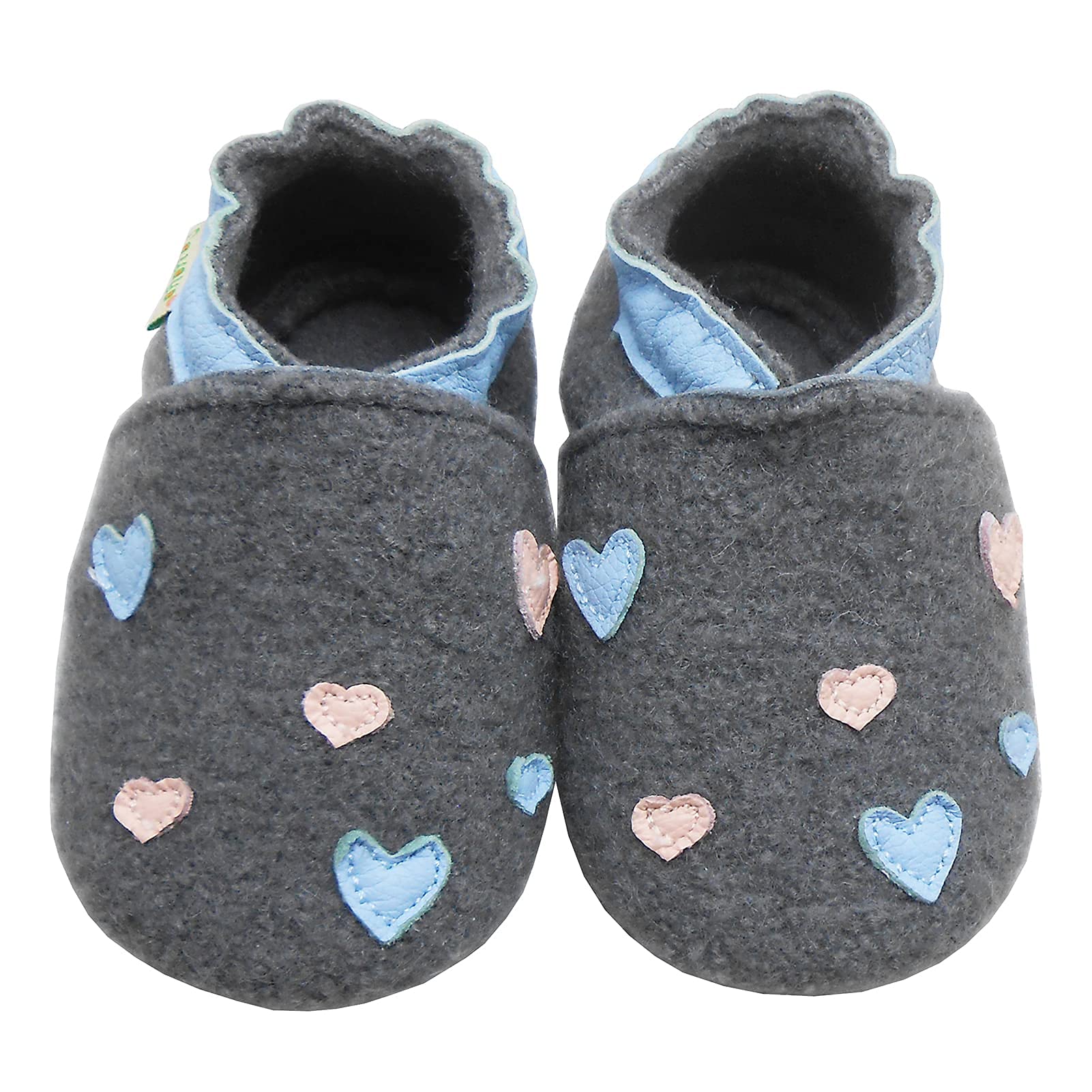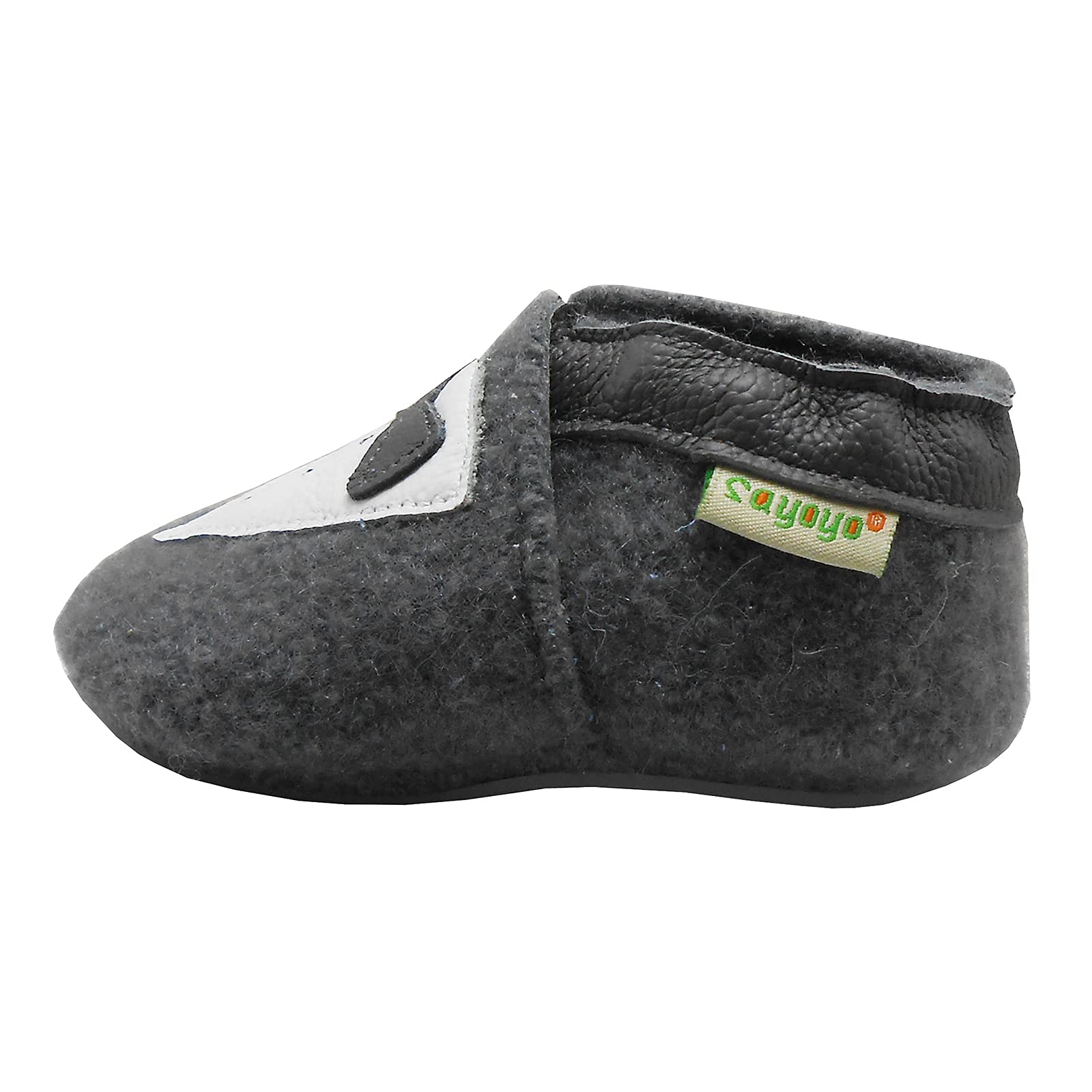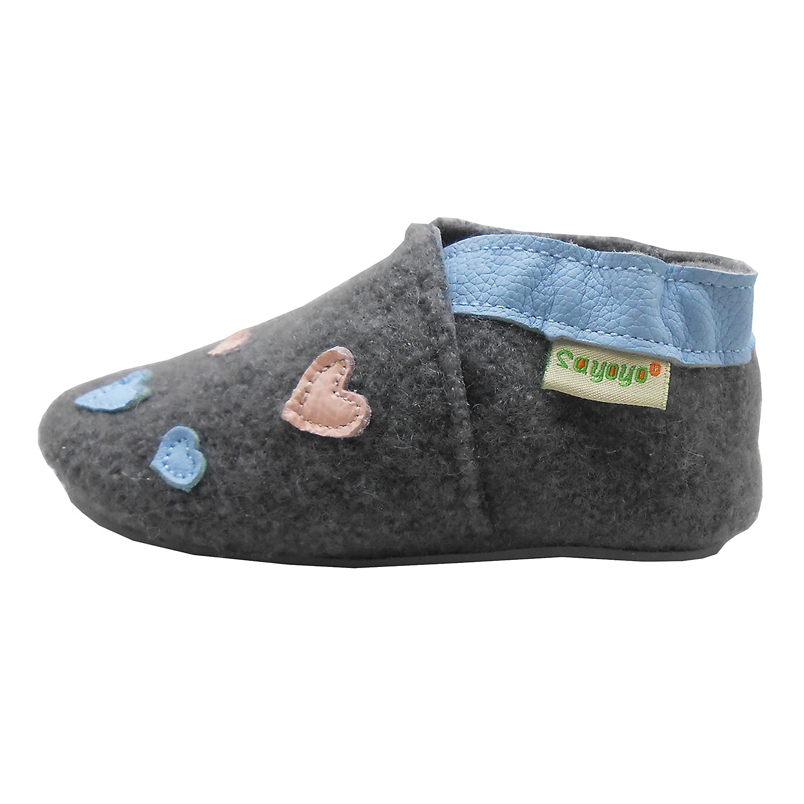 • Sayoyo Crawling shoes are cut by us from 100% pure virgin wool and sewn with non-slip rubber soles, lovingly handmade. The wool makes the shoes breathable and soft and warms the feet.