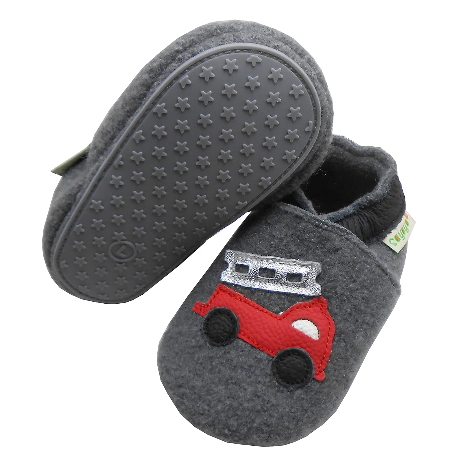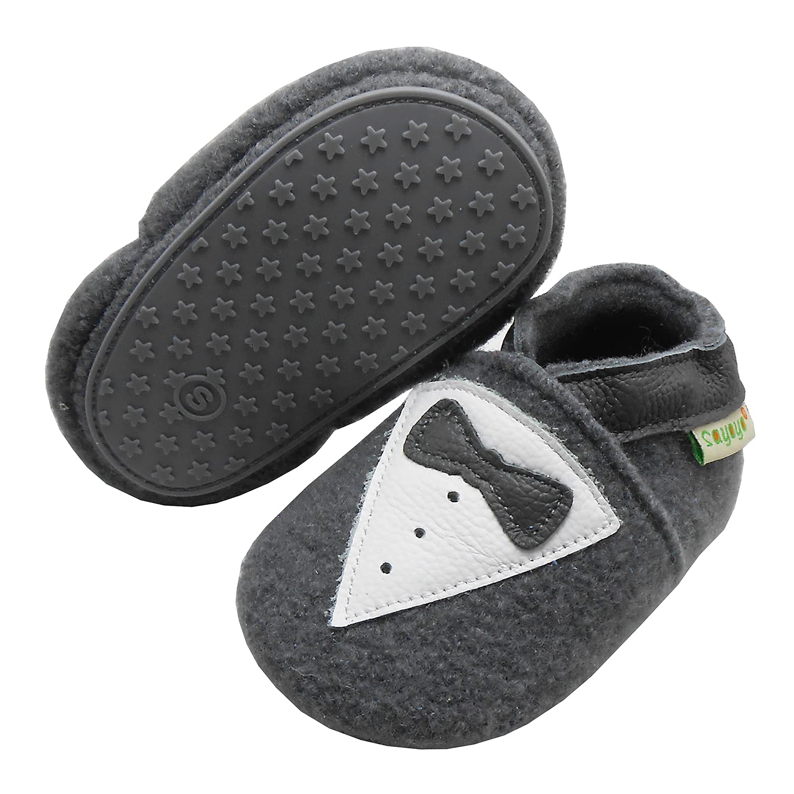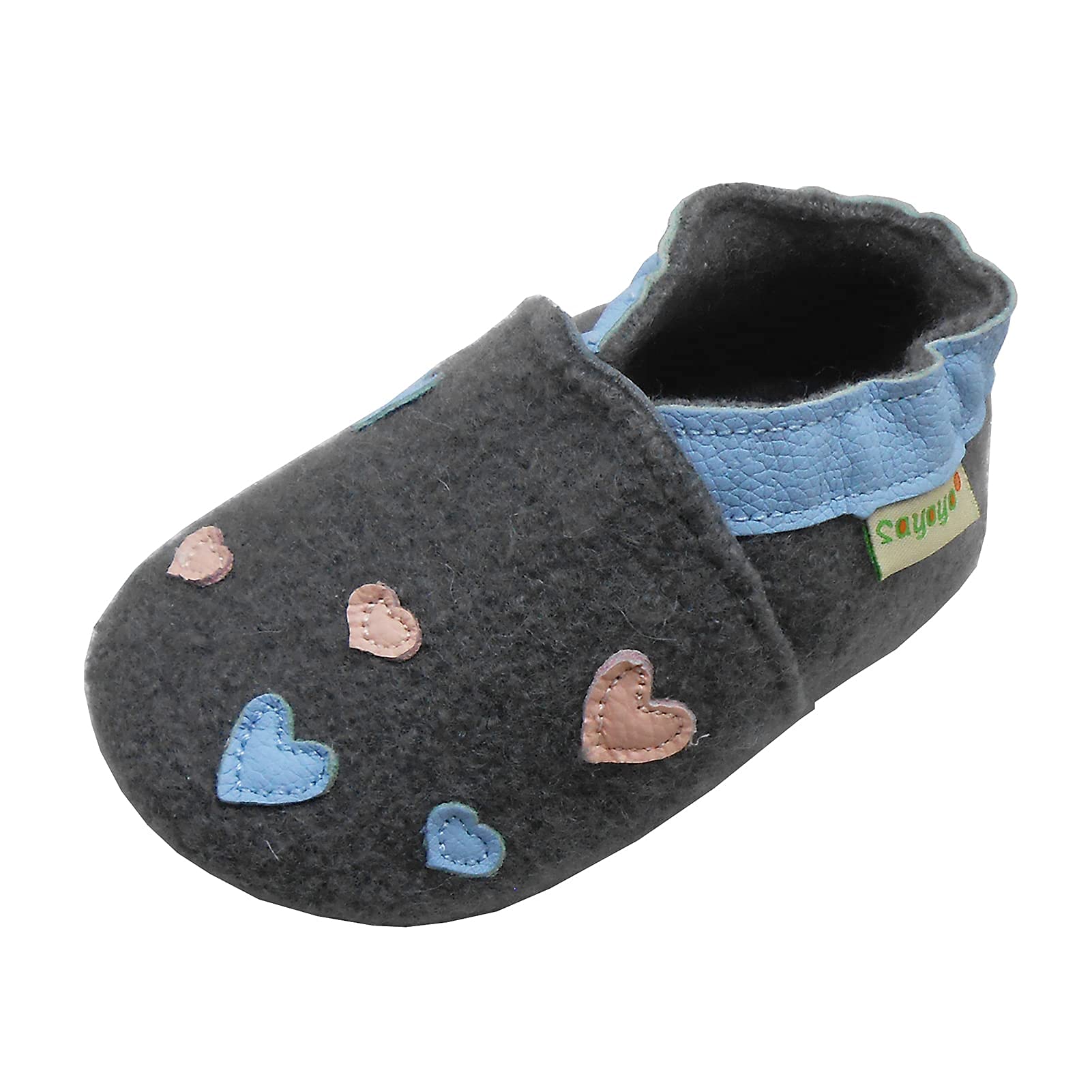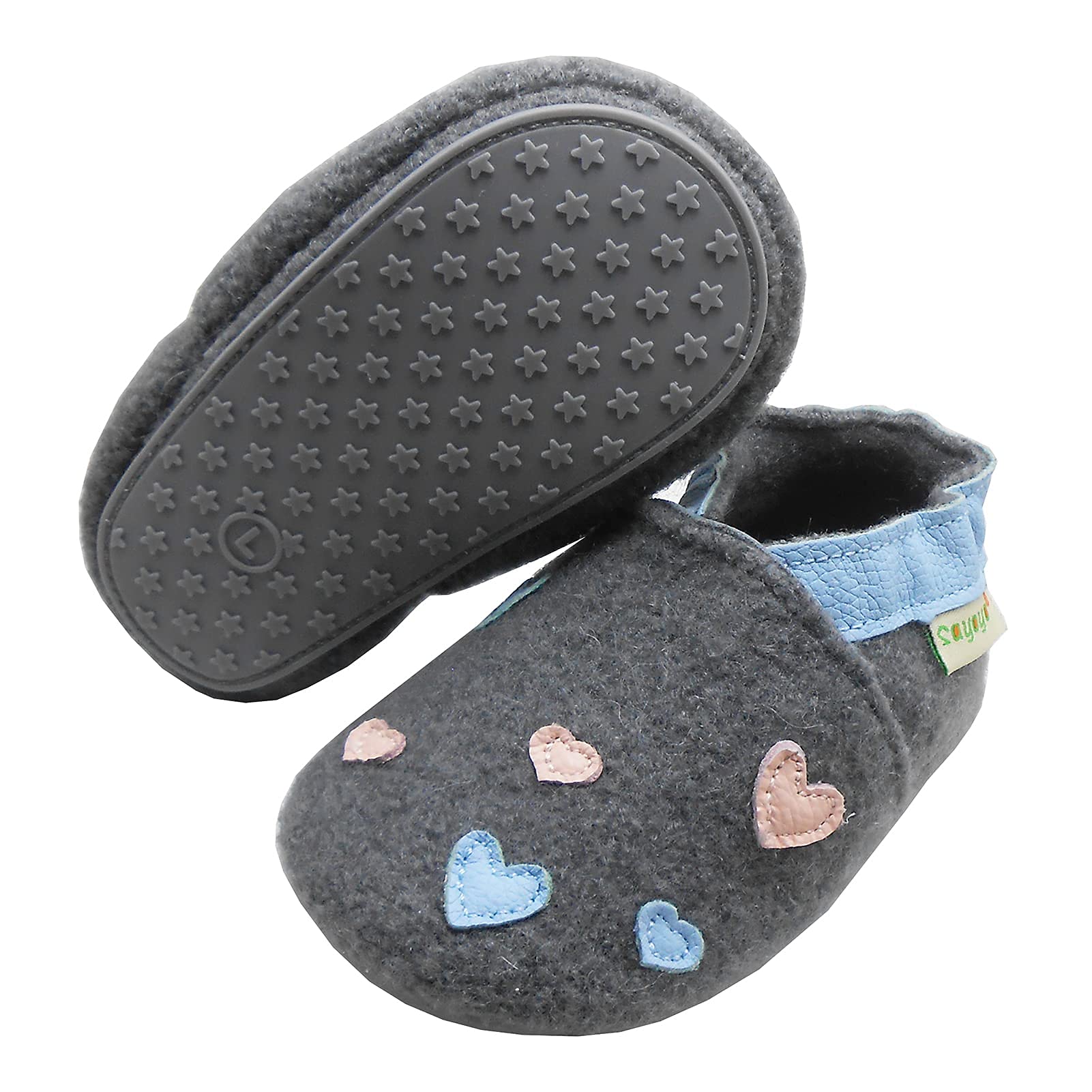 SAYOYO Boys and Girls First Walking Shoes Crawling Shoes Soft Wool Non-Slip Rubber Sole Baby Slippers