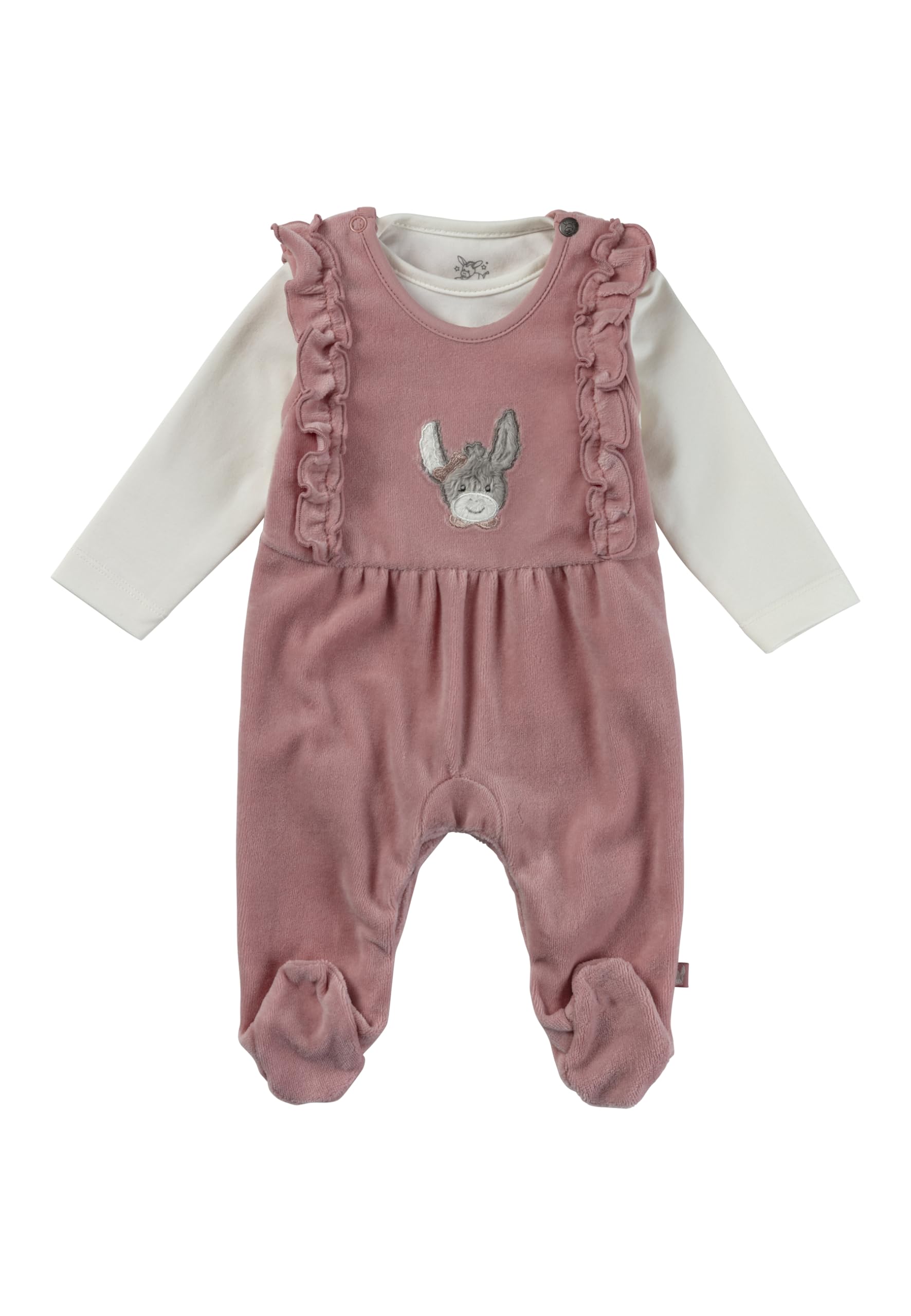 Sterntaler Romper Set Emmi Girl - Baby Rompers made of Velour with Donkey Emmi Girl Appliqué - Long Sleeve Jersey Shirt - Snap Fasteners in the Crotch - Comfortable Girls' Two-Piece from Birth
