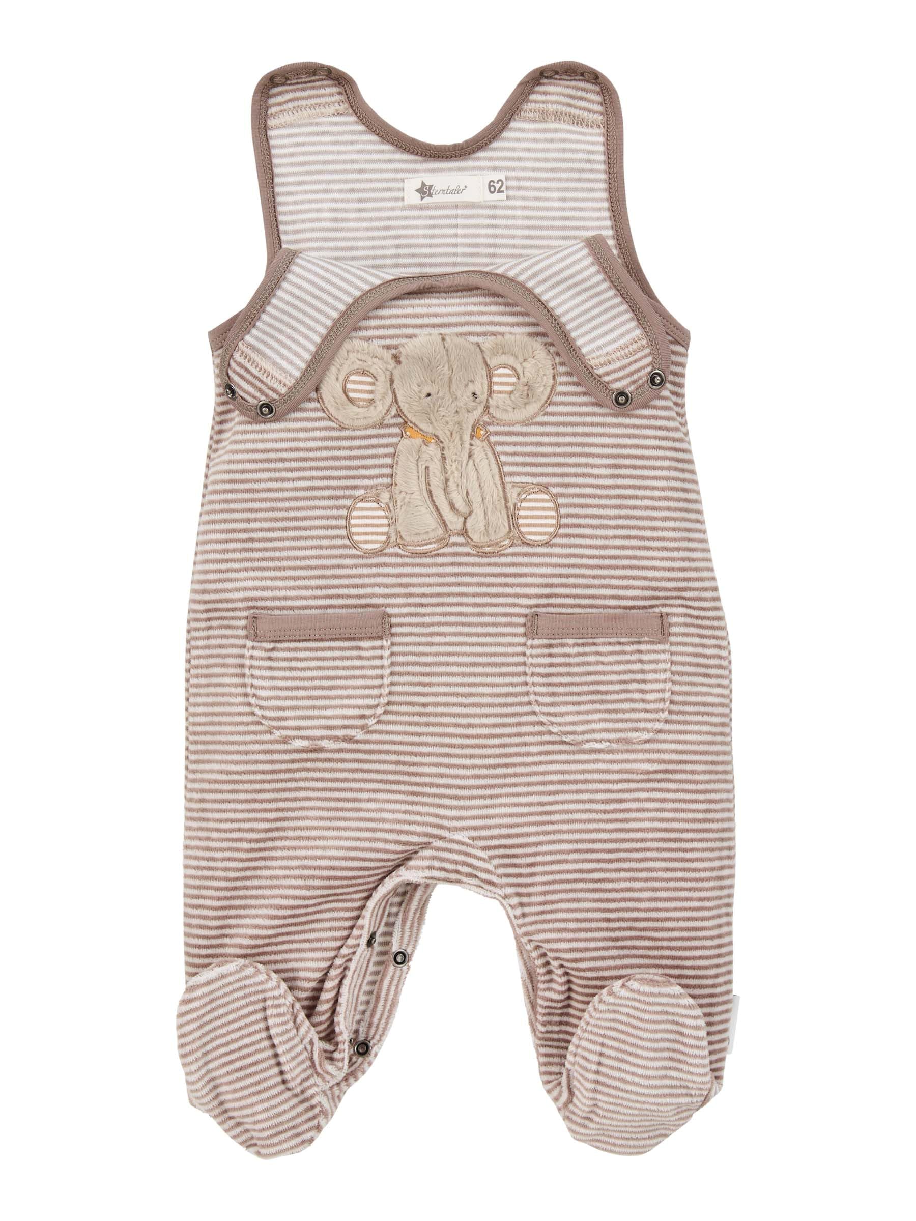 Romper set consisting of a bodysuit in single jersey and a striped velour romper with two small patch pockets and an "elephant" appliqué.