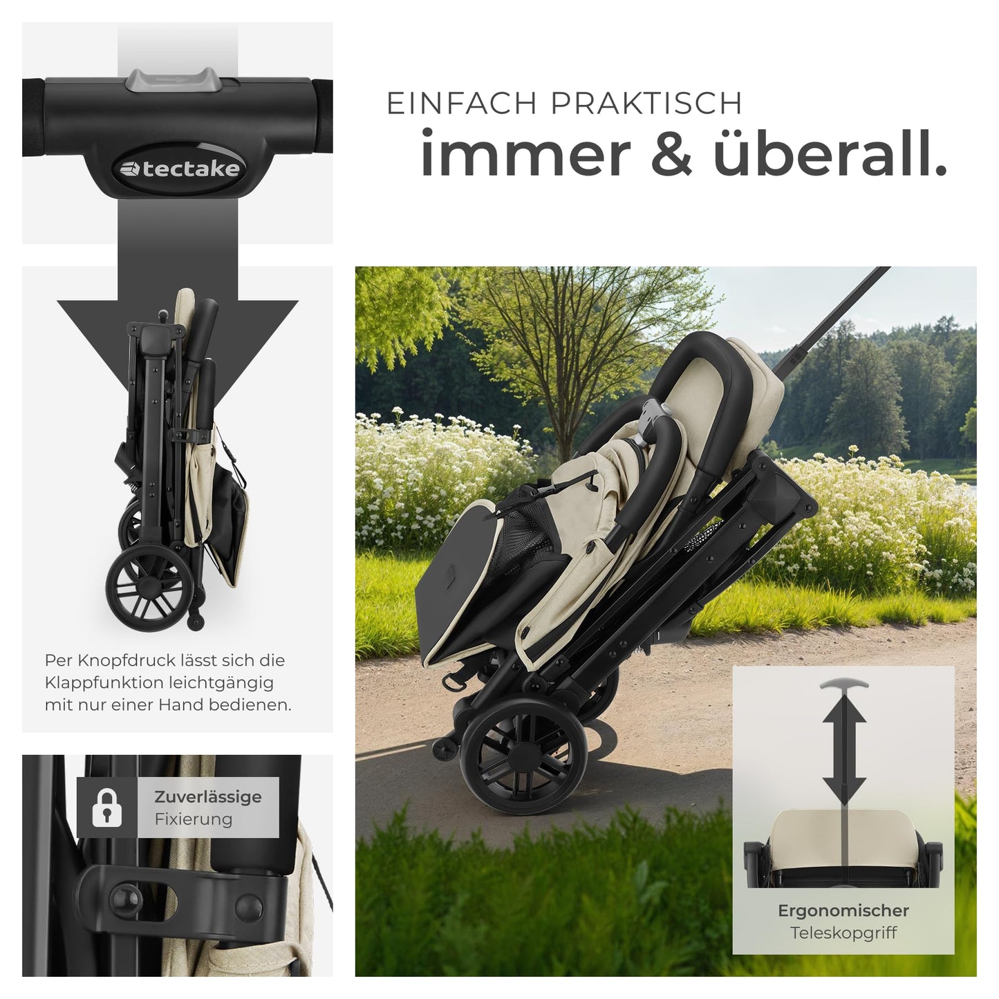 tectake® Buggy Stroller from 0 to 3 years, Carriage for Baby's First Equipment, Newborns and Children's Buggies, One-Handed Foldable Travel Buggy, Travel Stroller, Baby Carriage with Canopy - Grey/Beige