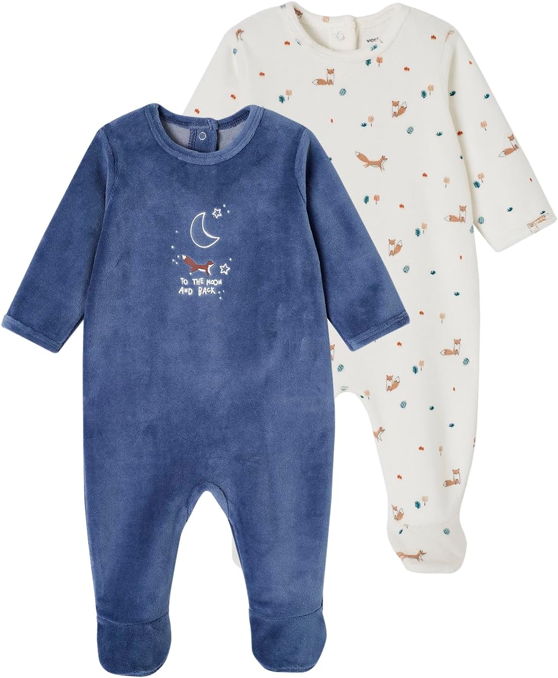 Vertbaudet 2-pack baby velvet rompers fox Oeko-Tex blue 50
