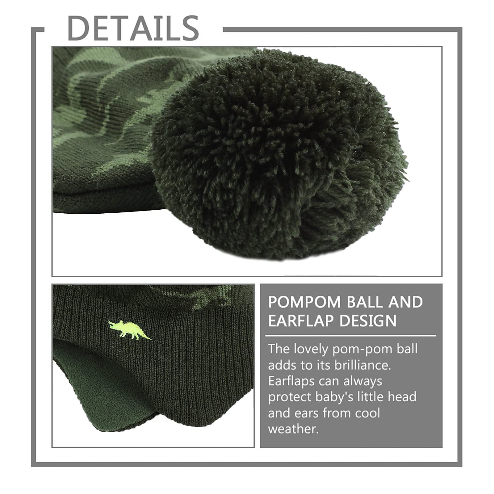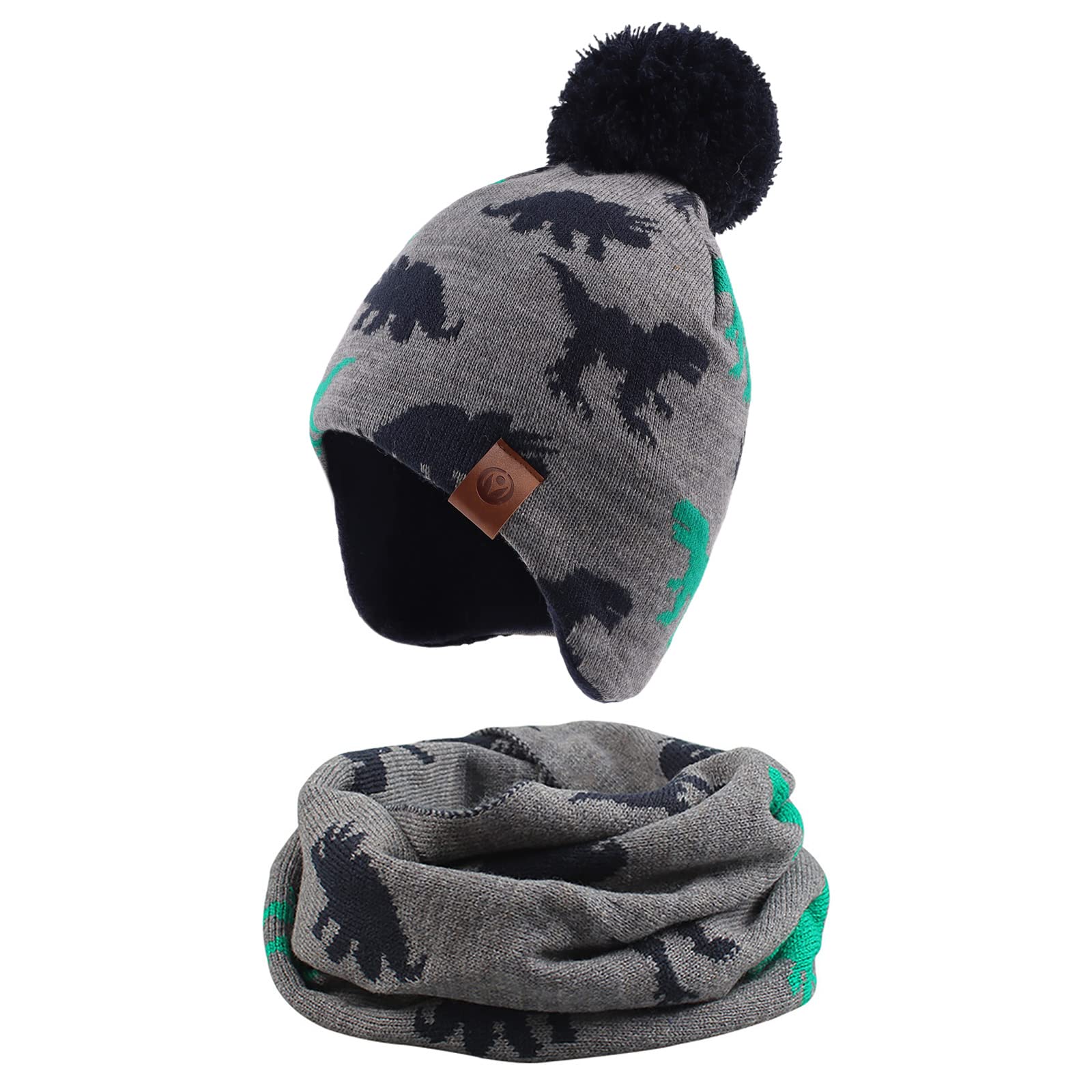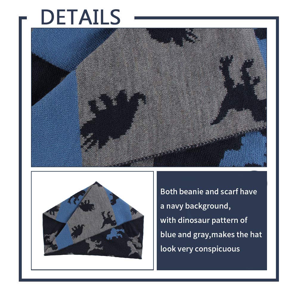 • NIEDLICHES DINOSAURIER-MUSTER: Der Baby Junge Mütze und Schal haben eine klassische graue Farbe mit Dinosaurier-Muster. Ihre kleinen Jungs werden diese niedliche Dinosaurier-Babymütze lieben.
