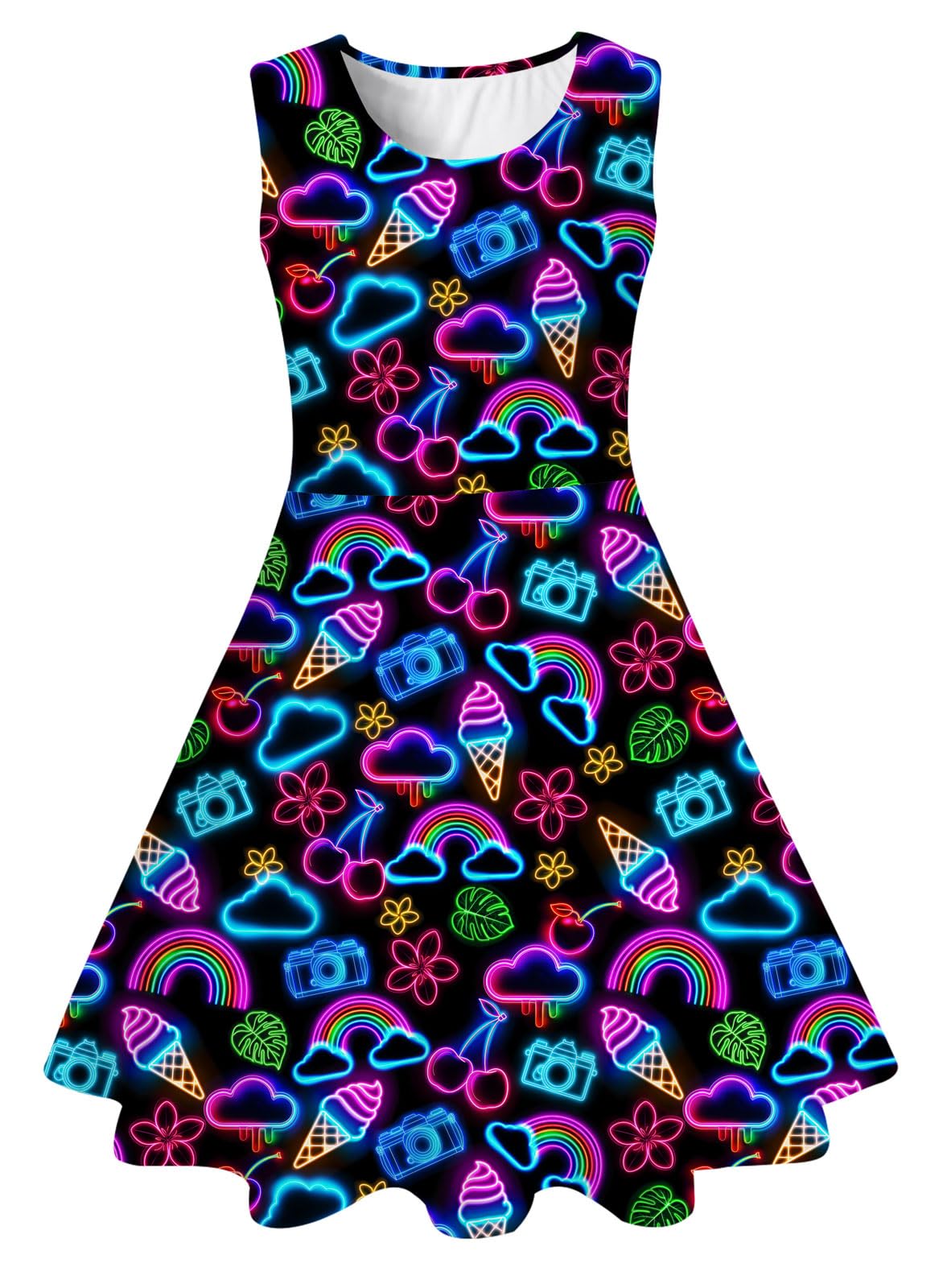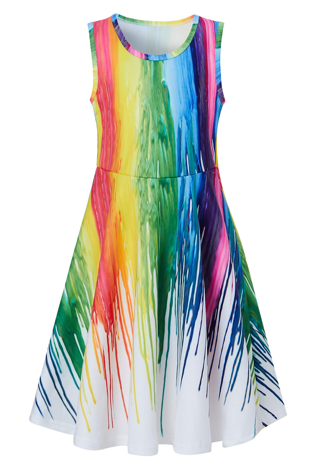 • Mädchen ärmelloses Kleid mit Rundhalsausschnitt;elastisch und atmungsaktiv;niedlich und lässig