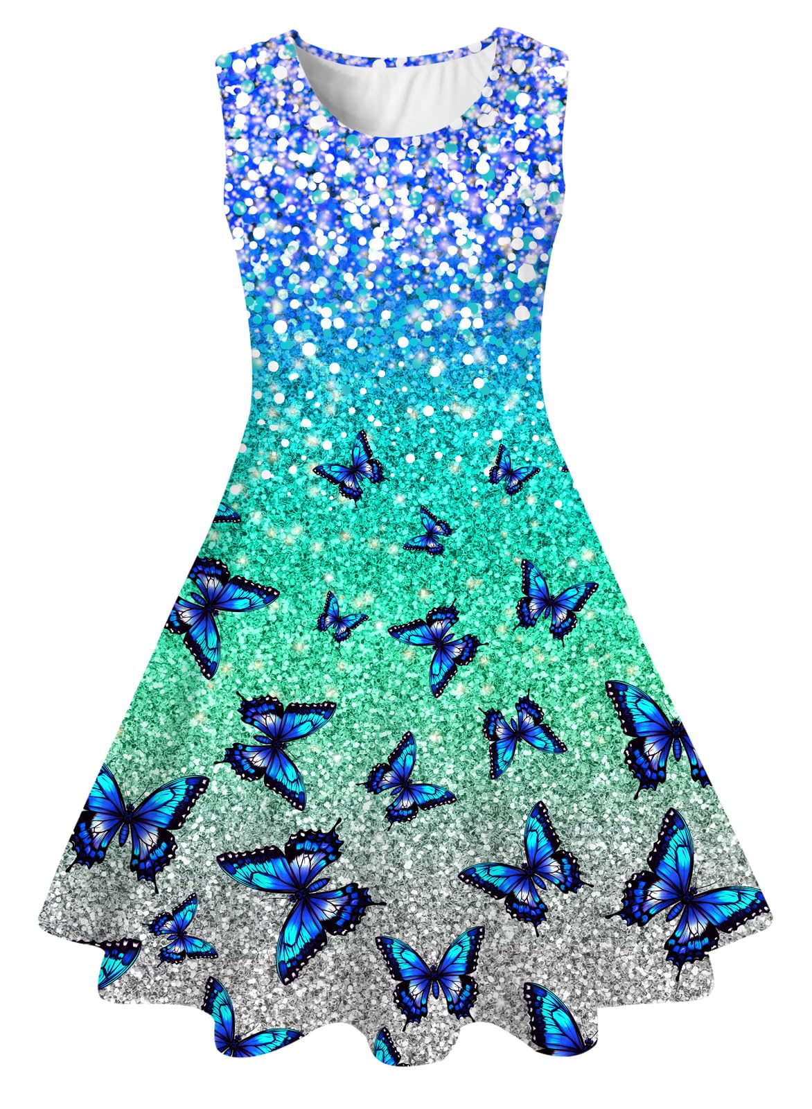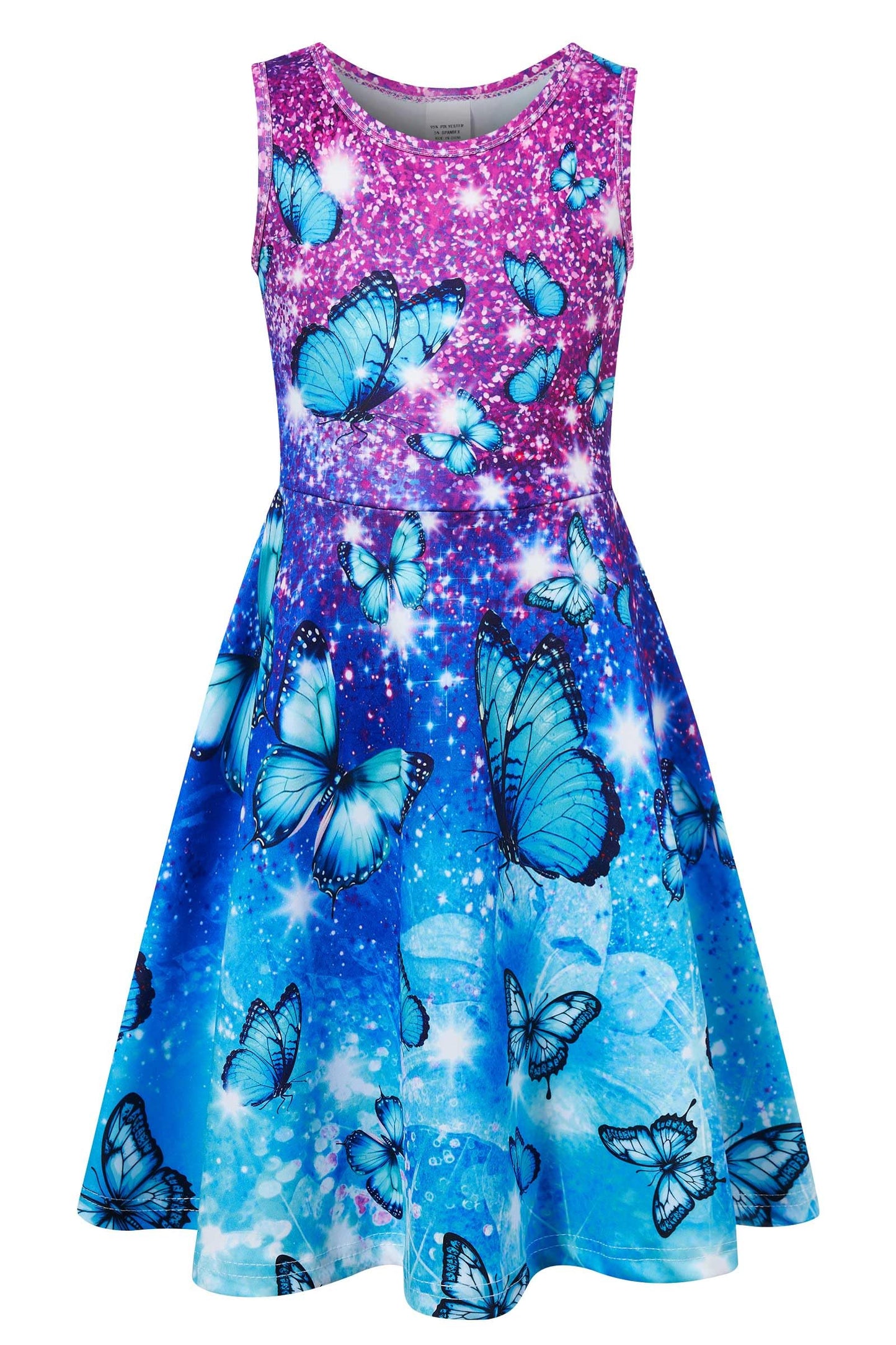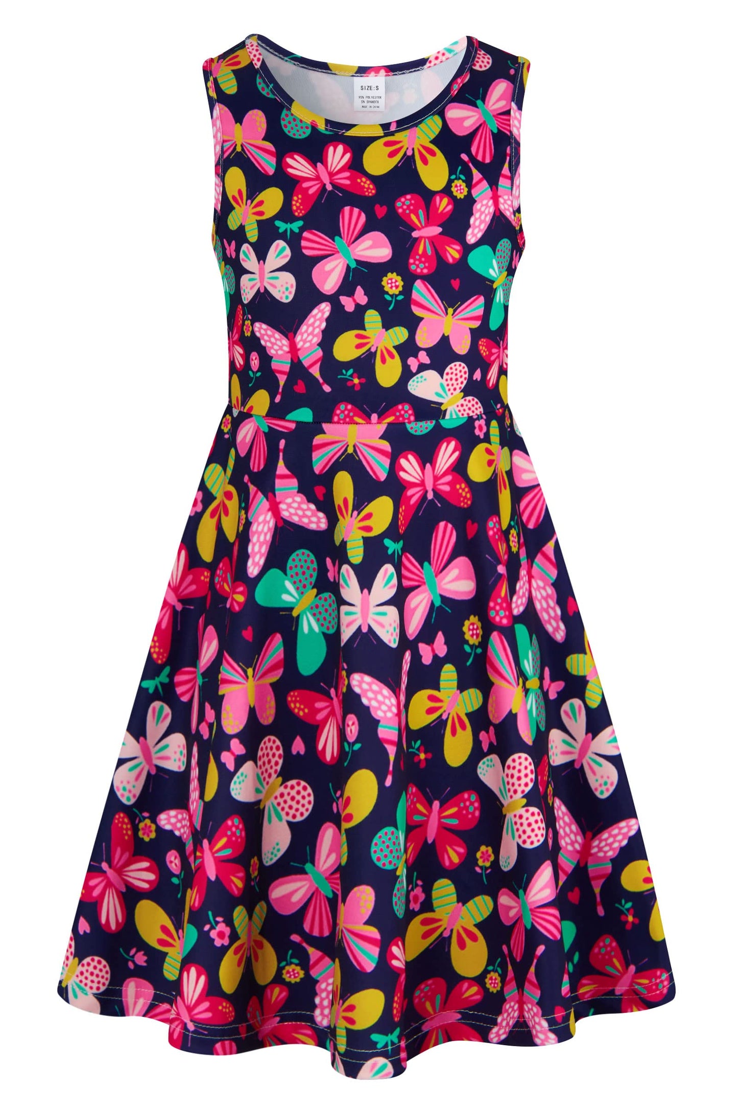 AIDEAONE Mädchenkleid Schmetterling A-Linie Ärmelloses Sommerkleid Buntes Kleid 4-12 Jahre