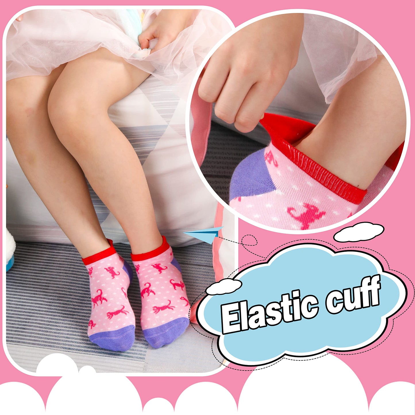 • Neuartige Cartoons: Wir haben verschiedene Stile für die lustigen Sneaker-Socken entworfen - Einhorn-Serie, süße Tiere, schöne Blumen. Jede Farbe lässt sich leicht mit Outfits kombinieren und Kinder werden es lieben, diese Baumwollsocken zu tragen!