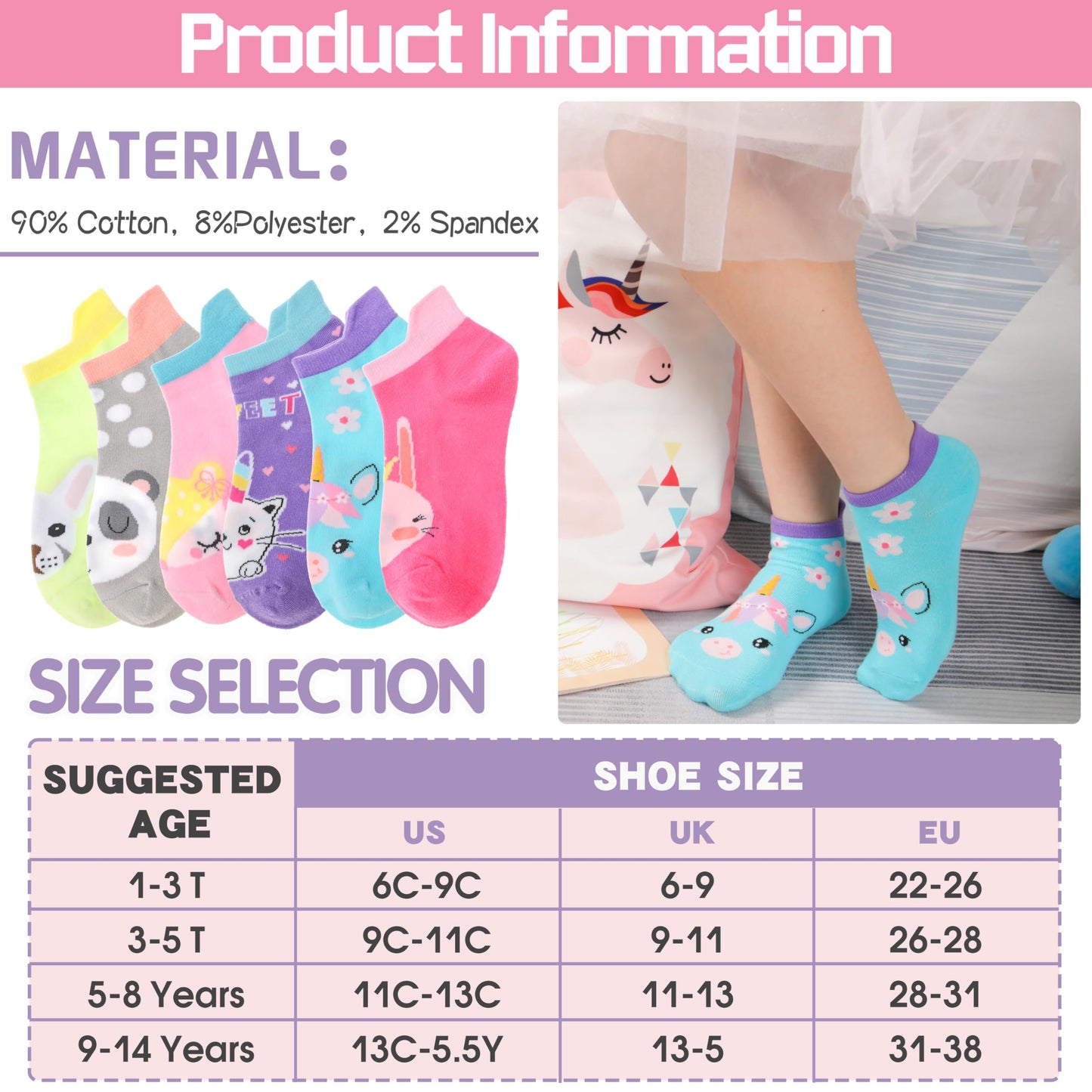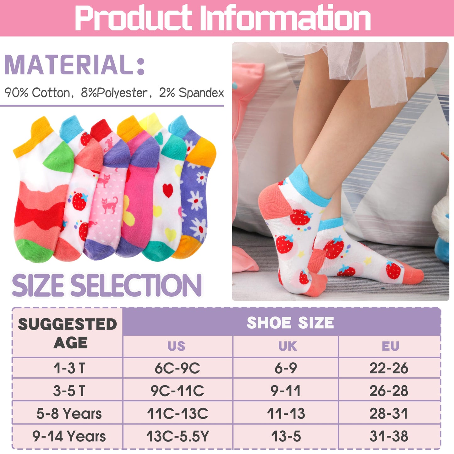 • Größe & Paket: Diese lustigen Sneaker-Socken für Mädchen sind in 3 Größen erhältlich:22-26(1-3 Jahre) ,26-28(3-5 Jahre), 28-31(5-8 Jahre) und 31-38(9-14 Jahre). Jede Größe enthält 6 Paare Socken!