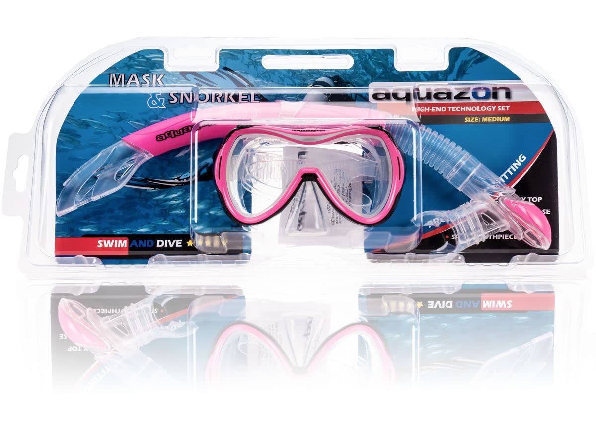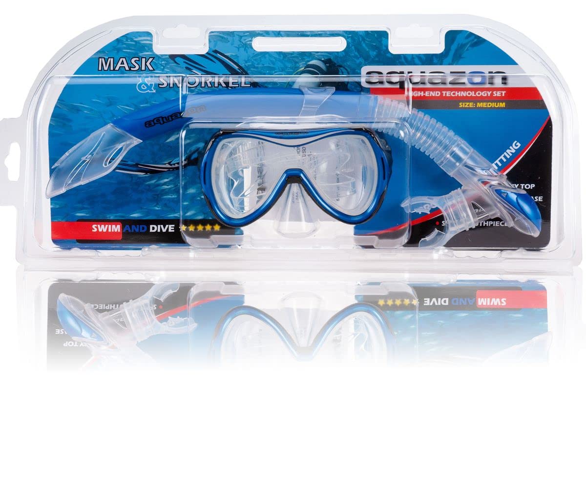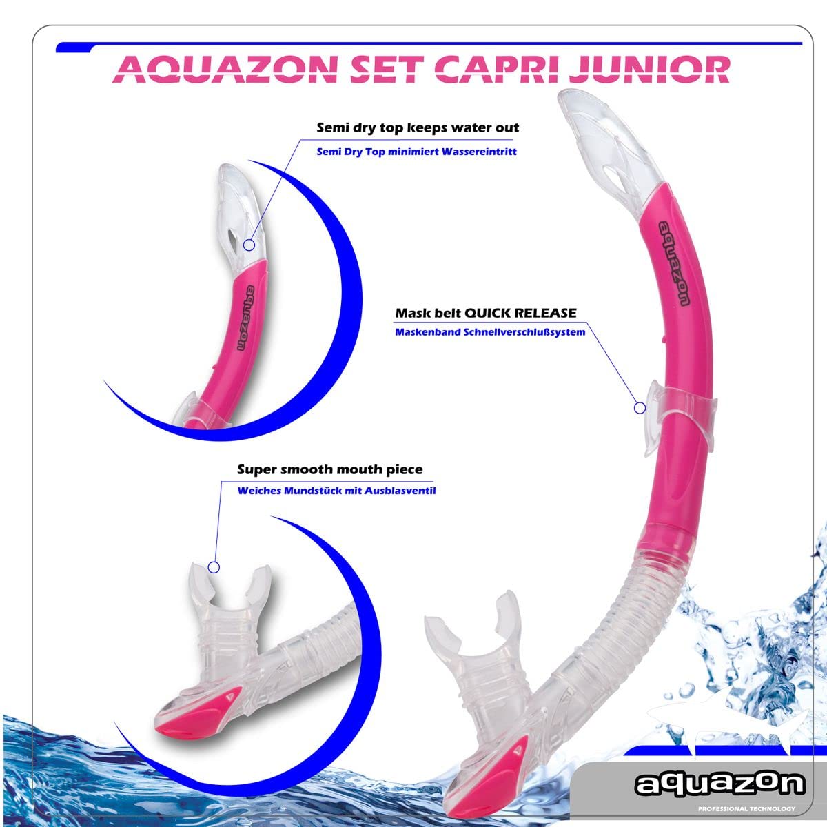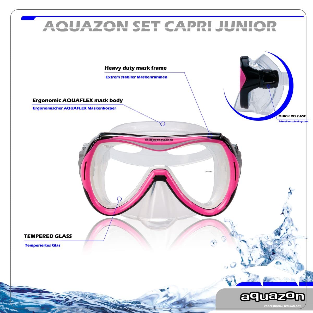 AQUAZON Capri extra Komfortables Kinder Schnorchelset, Taucherbrille mit superweichem Silikon, 7-12 Jahre, glasklarer Blick durch temperiertes Glas