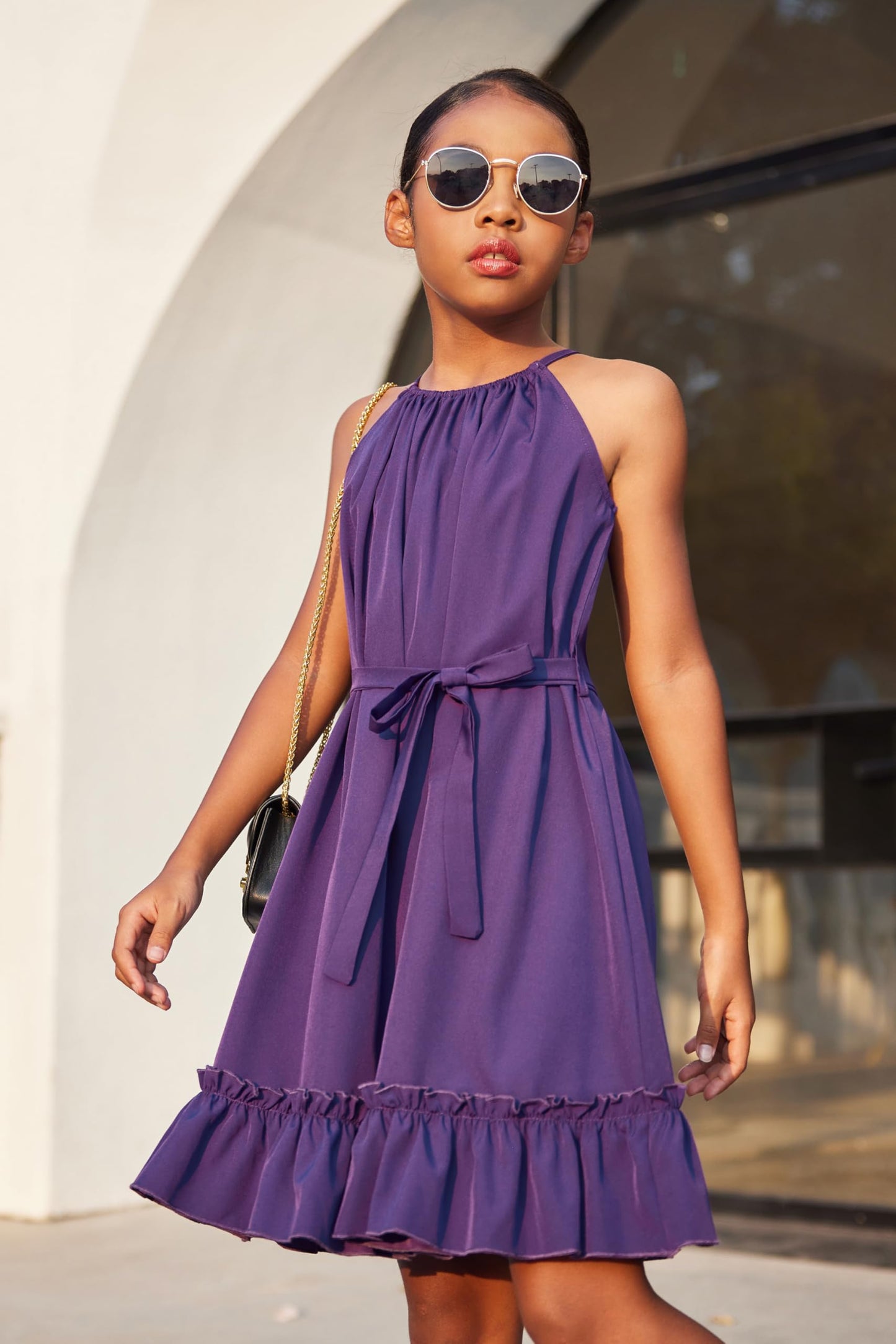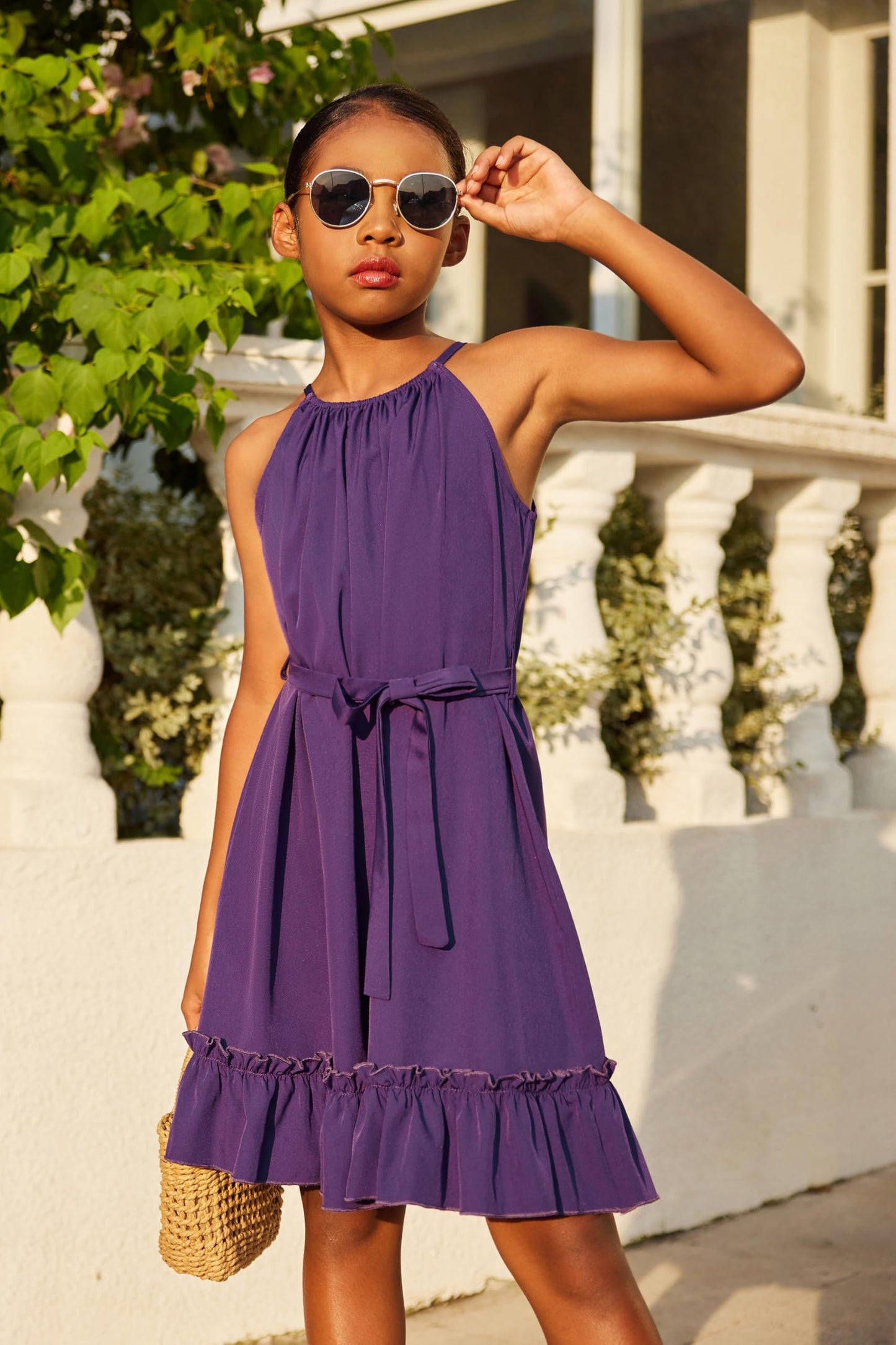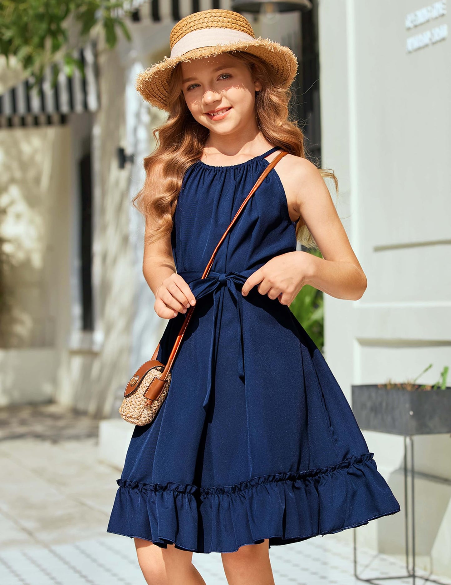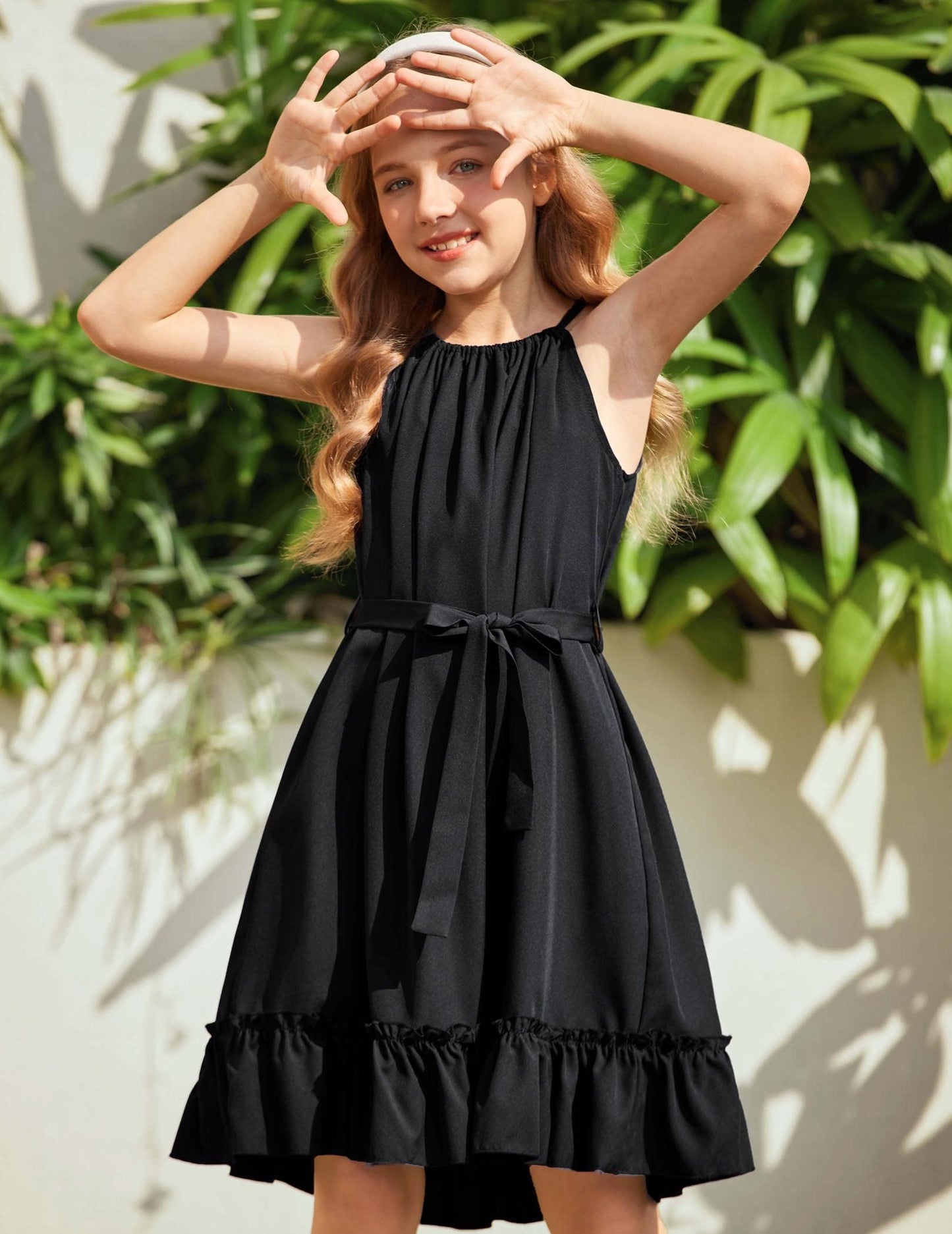 • Kombinieren Sie es mit: Das Mädchenkleid wird mit einem abnehmbaren Gürtel in der gleichen Farbe geliefert, mit dem Sie auch einen eleganten, gürtellosen, lässigen Urlaubsstil kreieren können. Binden Sie es mit einem Gürtel zusammen, um ein Kleid mit gerafftem Saum für ultimative Eleganz zu schaffen.