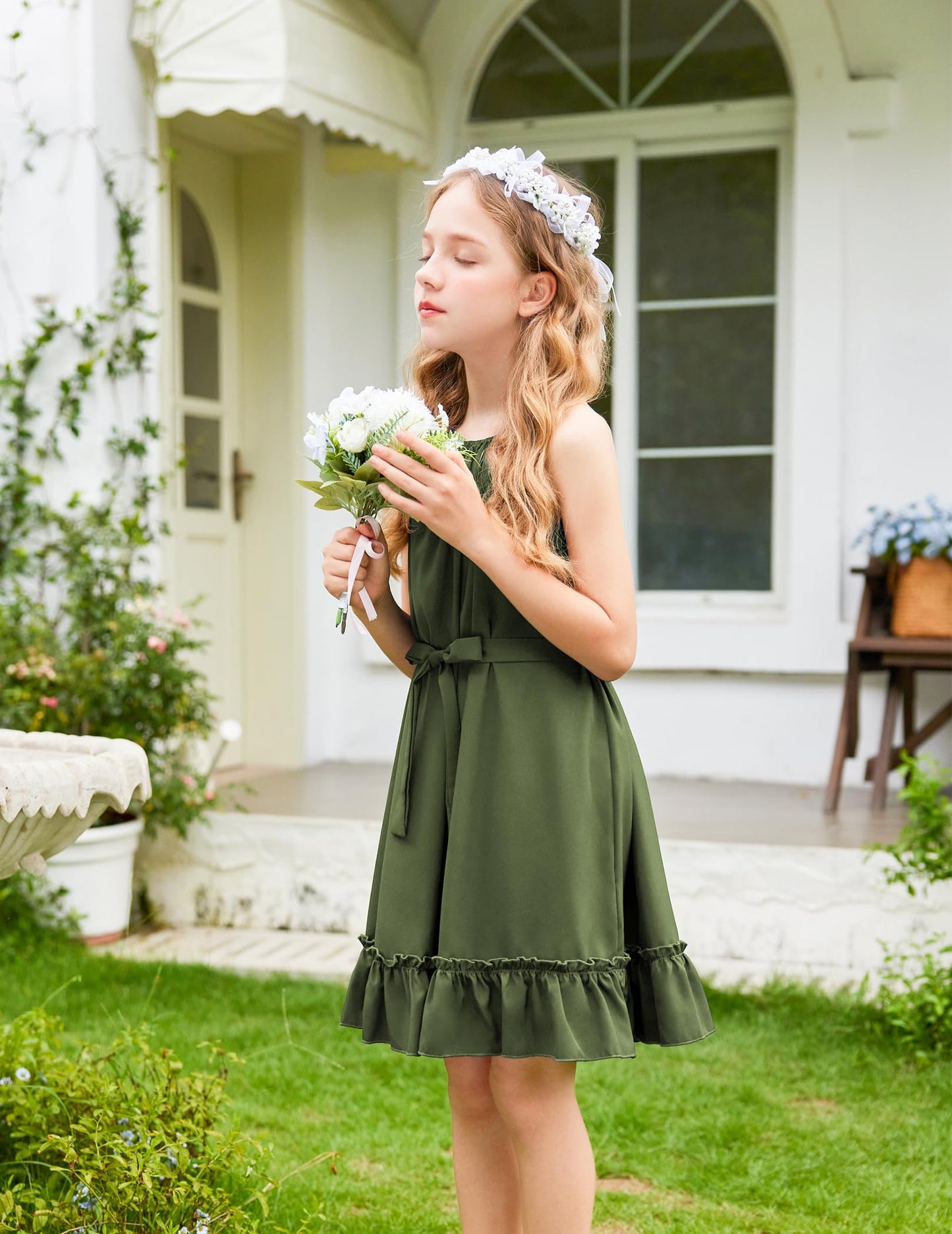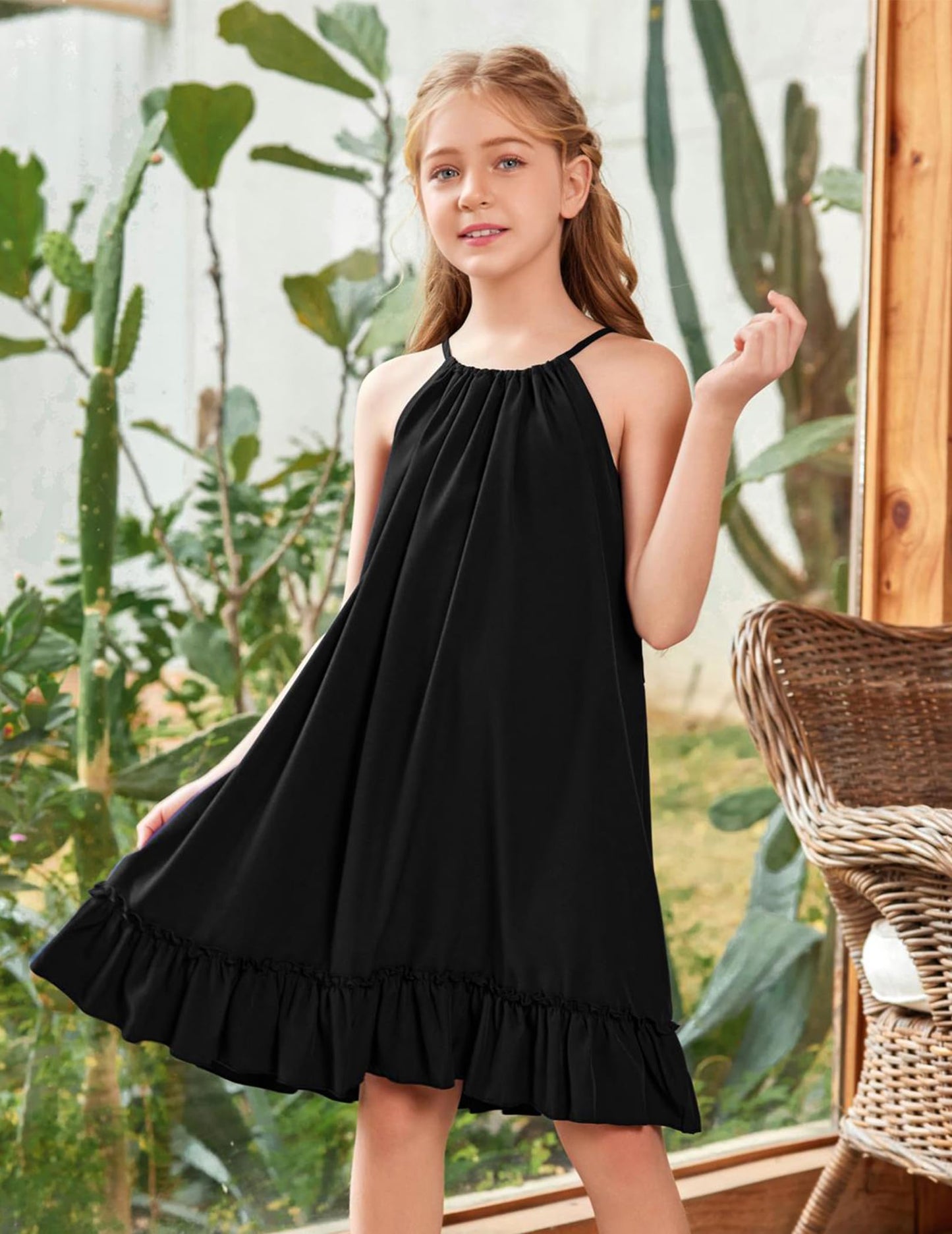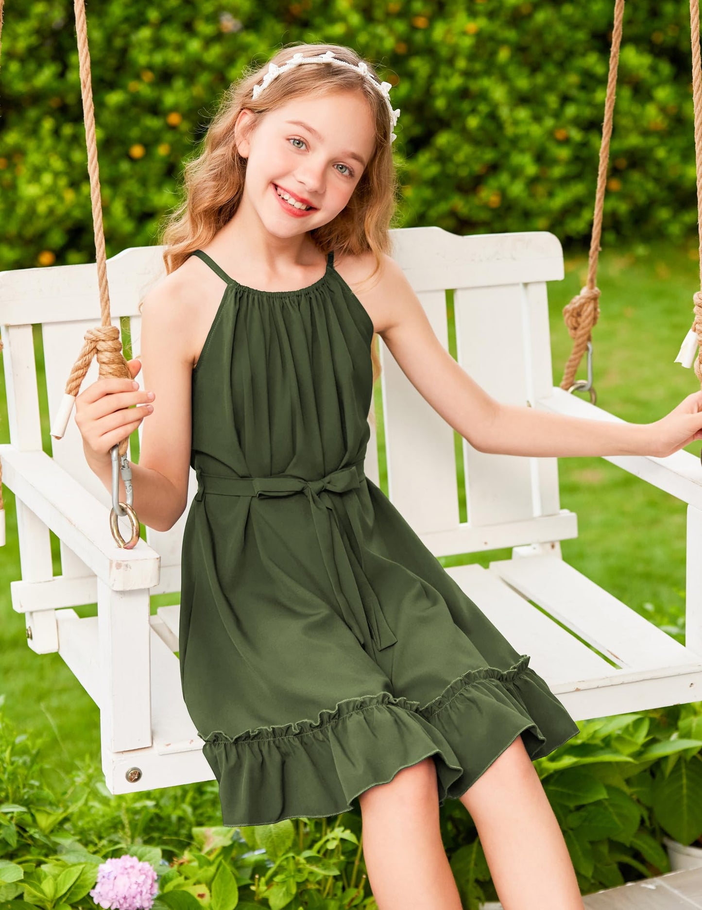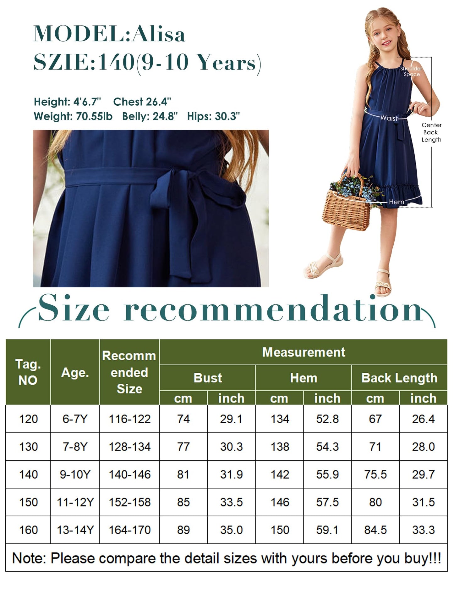 • Kombinieren Sie es mit: Das Mädchenkleid wird mit einem abnehmbaren Gürtel in der gleichen Farbe geliefert, mit dem Sie auch einen eleganten, gürtellosen, lässigen Urlaubsstil kreieren können. Binden Sie es mit einem Gürtel zusammen, um ein Kleid mit gerafftem Saum für ultimative Eleganz zu schaffen.