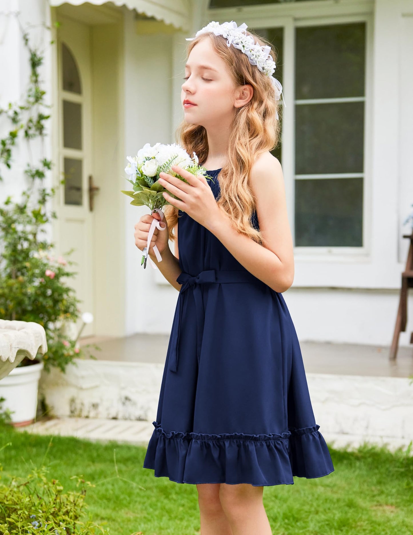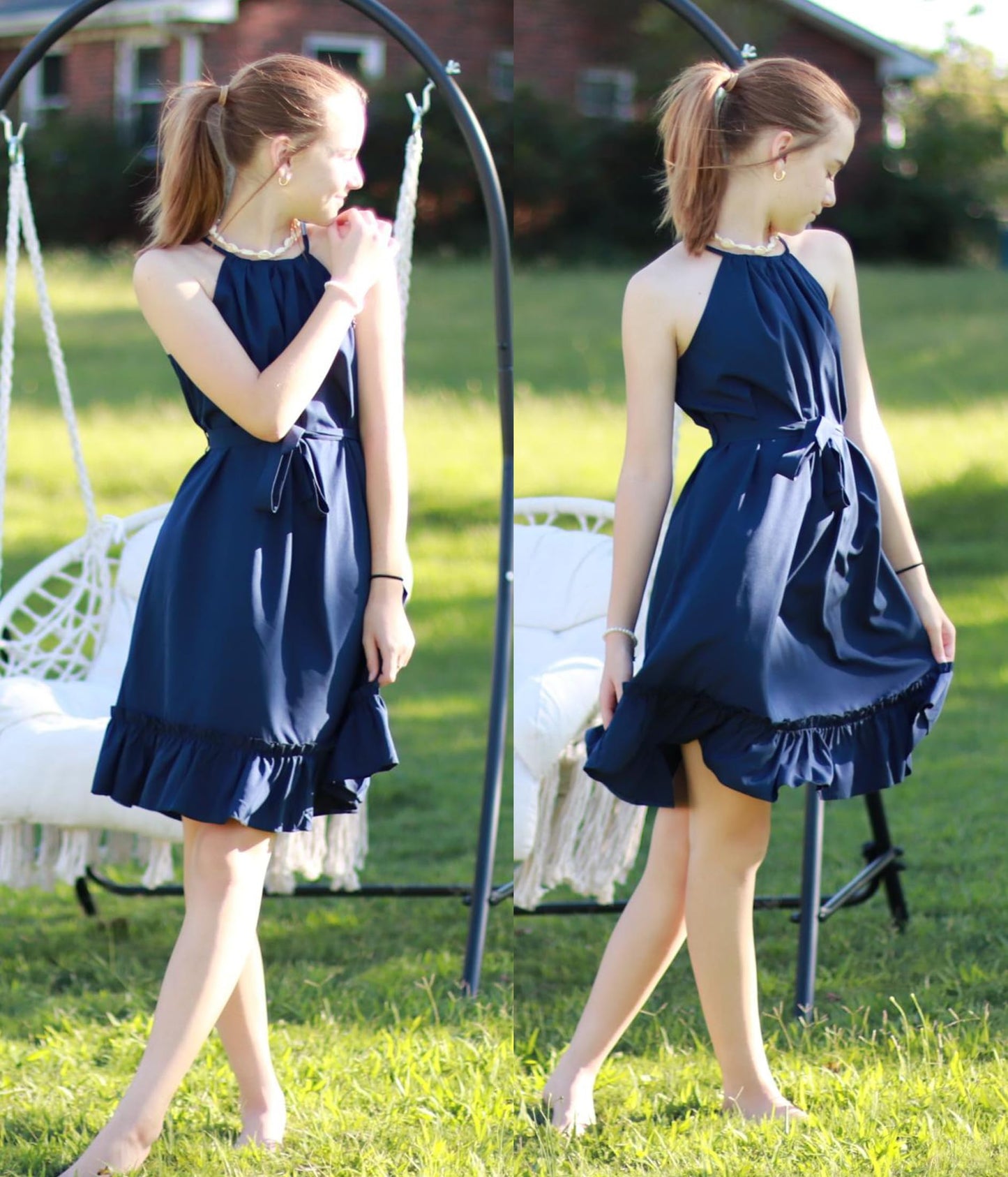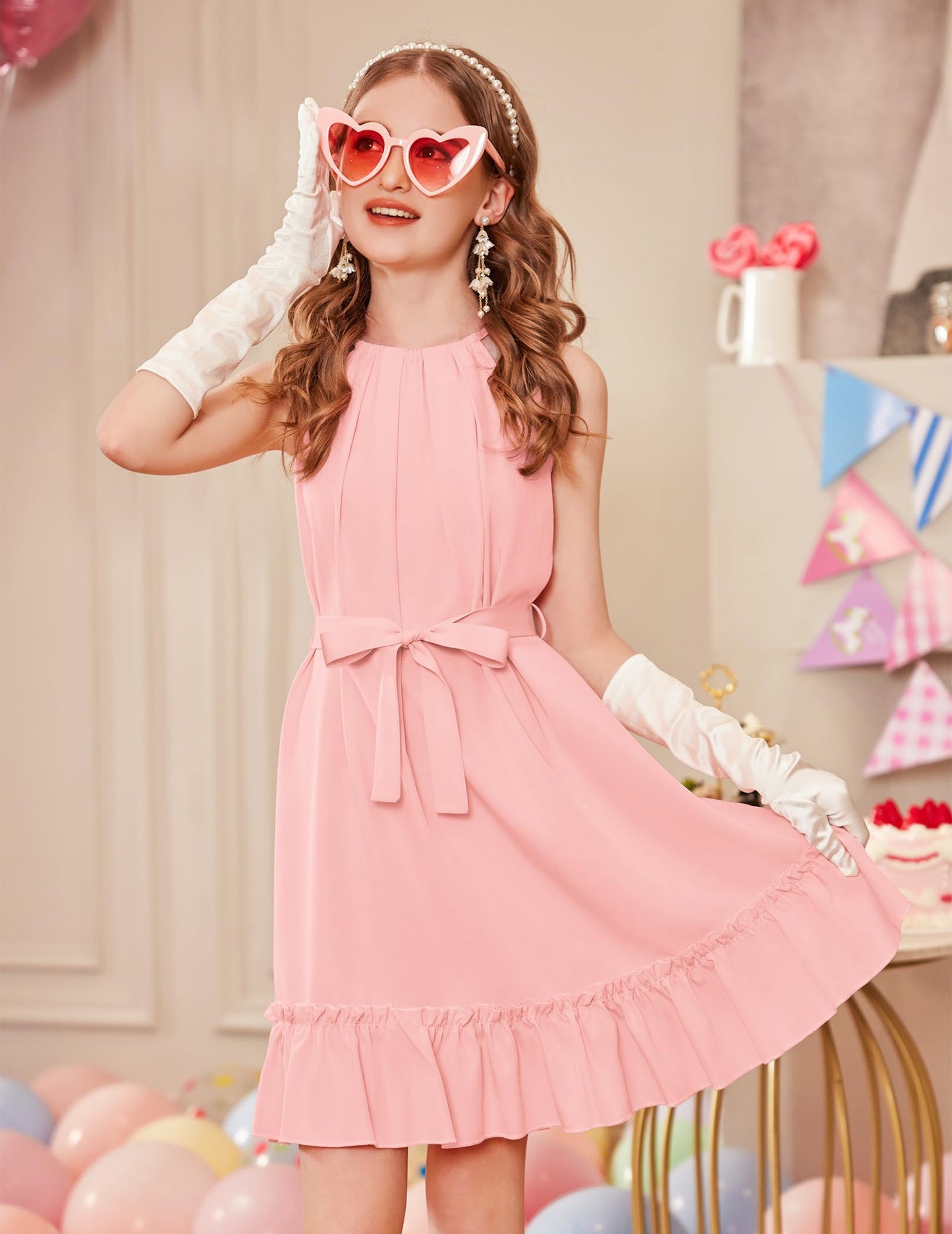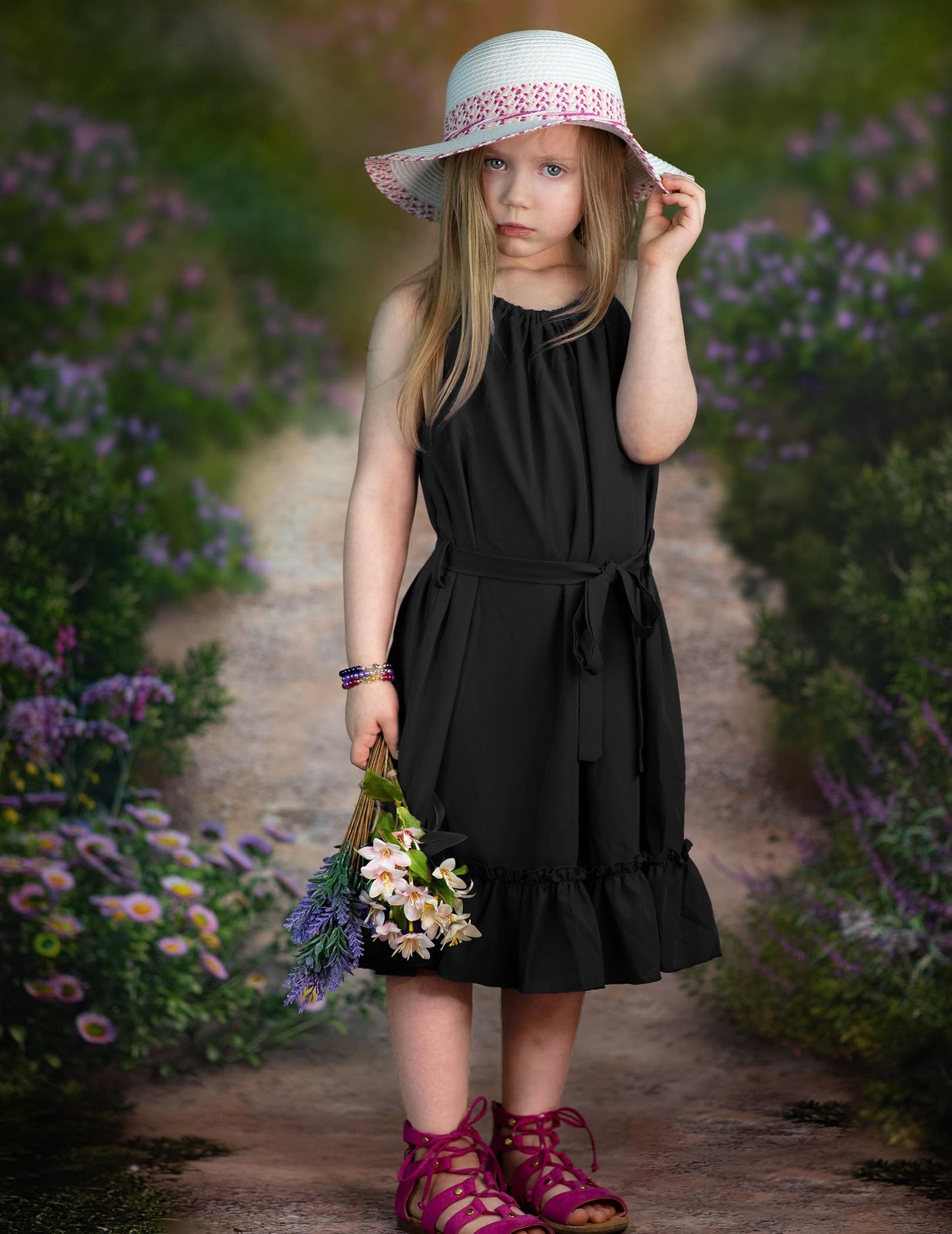 • Kombinieren Sie es mit: Das Mädchenkleid wird mit einem abnehmbaren Gürtel in der gleichen Farbe geliefert, mit dem Sie auch einen eleganten, gürtellosen, lässigen Urlaubsstil kreieren können. Binden Sie es mit einem Gürtel zusammen, um ein Kleid mit gerafftem Saum für ultimative Eleganz zu schaffen.