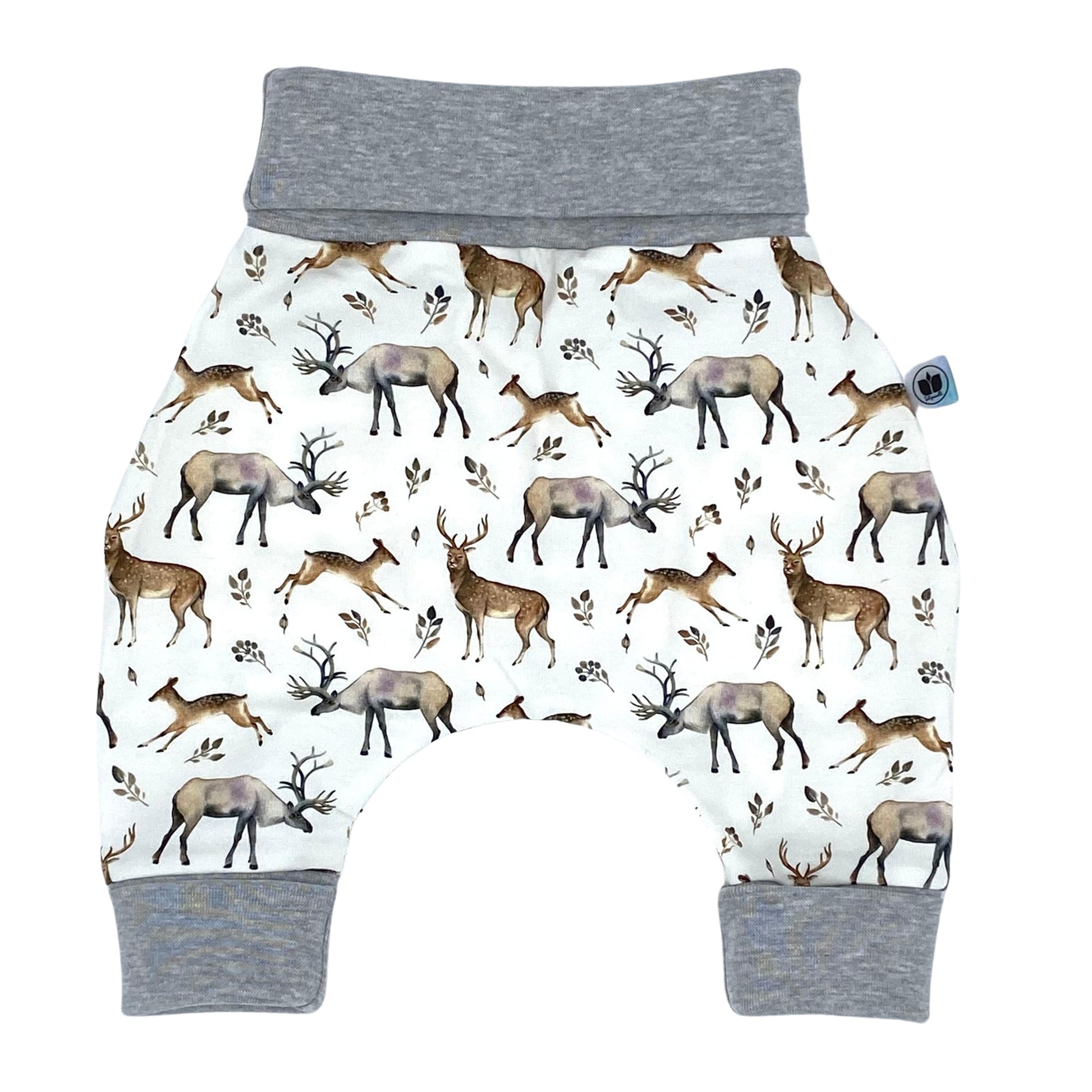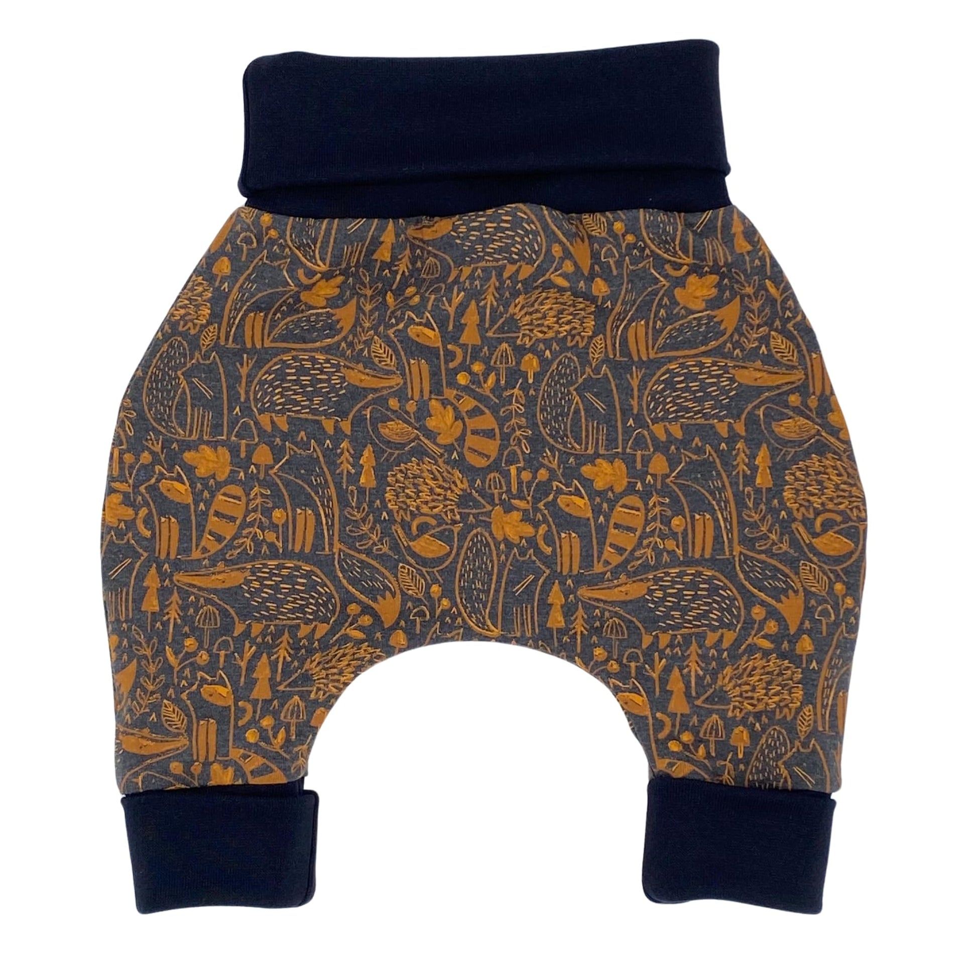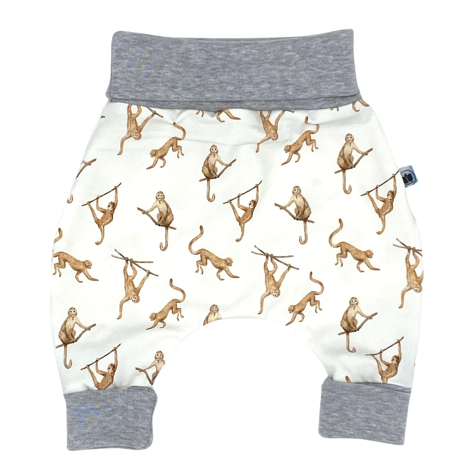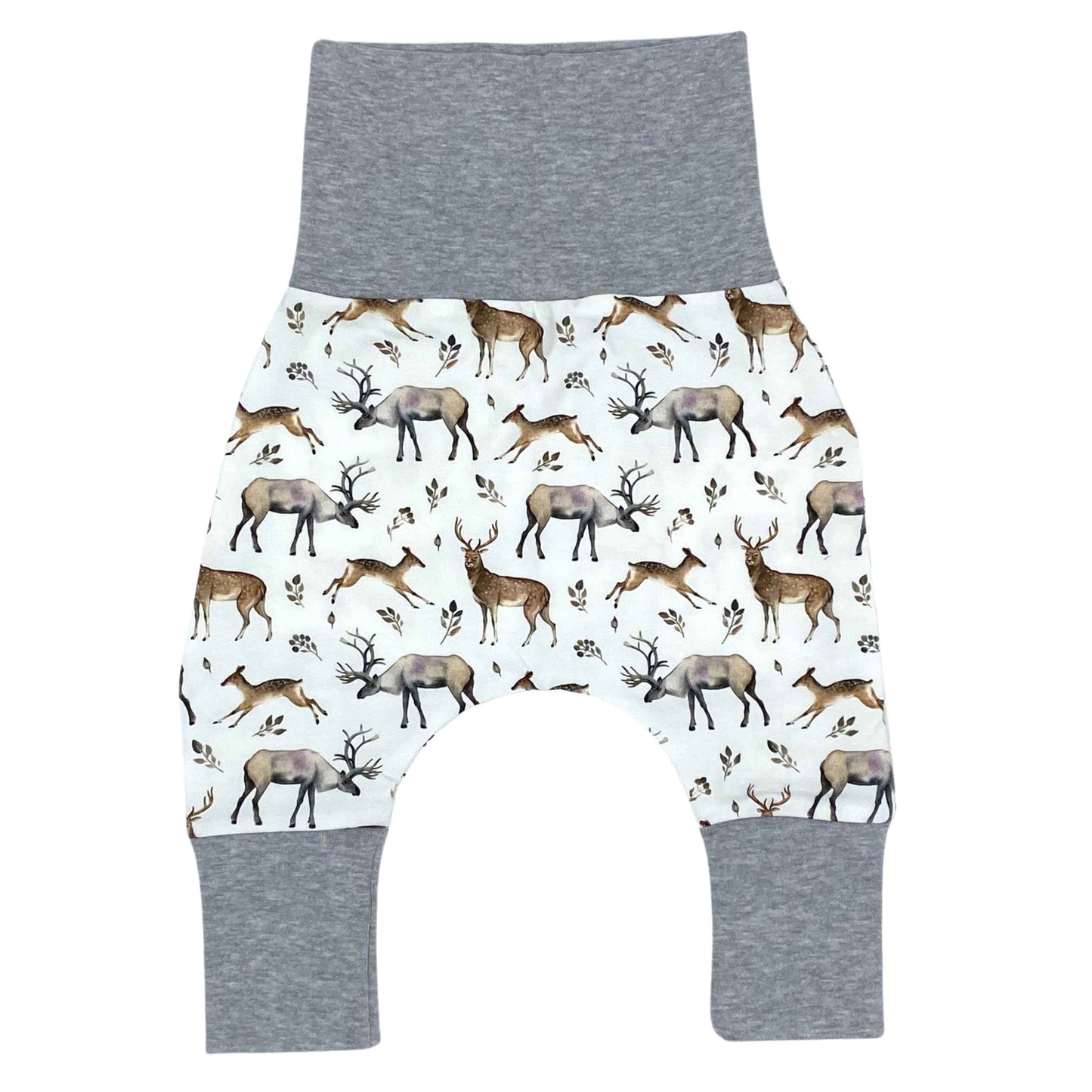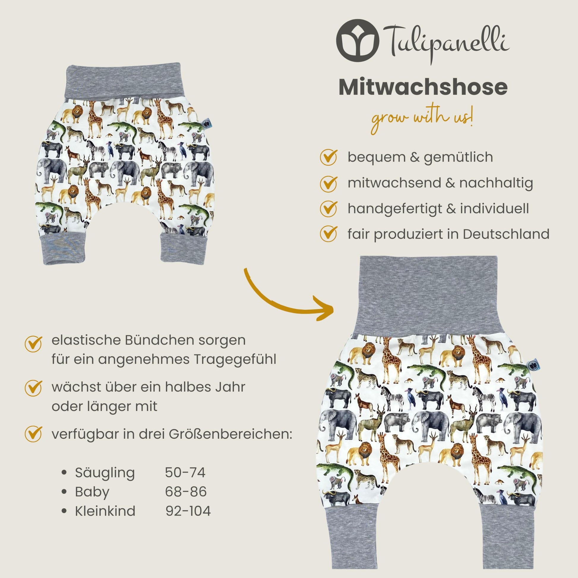 Baby Baggy Trousers, Handmade Cotton Jersey Grow Trousers, Sizes 50-74, 68-86, 92-104, Wide Waistband (Wild Life, 50-74)