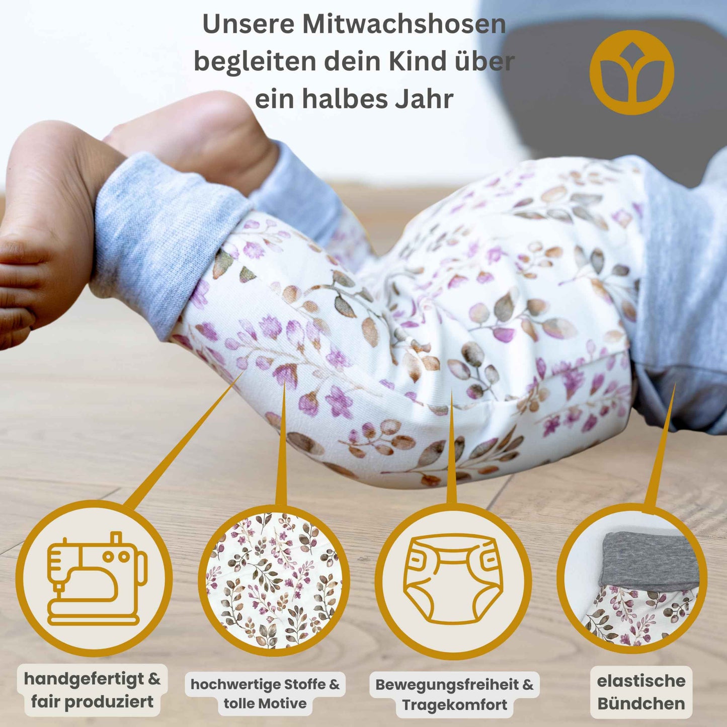 • Comfortable to wear and elastic cuffs: nothing pinches or squeezes - everything fits perfectly. Our baby trousers offer plenty of freedom of movement and space for e.g. cloth nappies