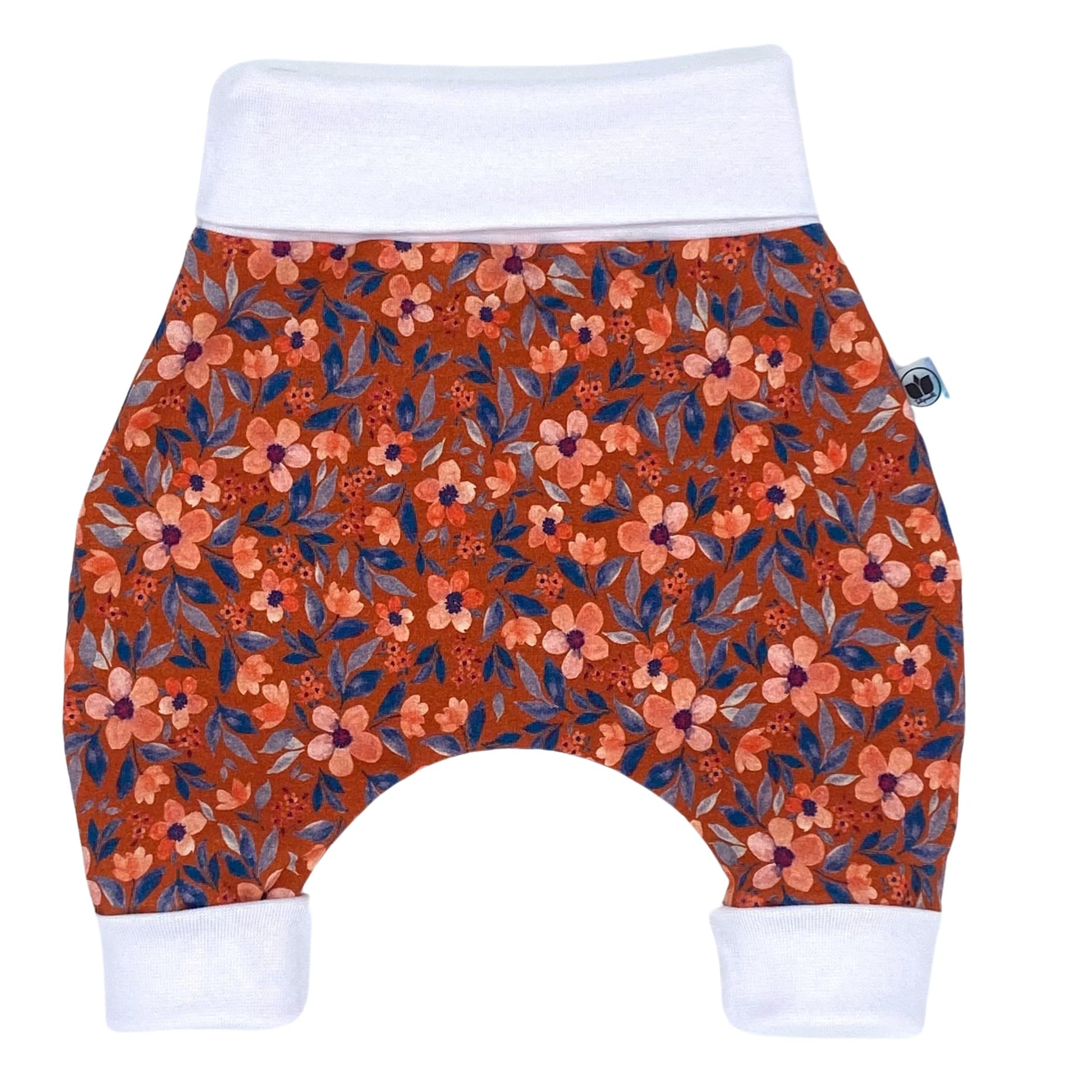 Baby Baggy Trousers, Girls' Handmade Cotton Jersey Grow Trousers, Sizes 50-74, 68-86, 92-104 (Wild Flowers, 50-74)