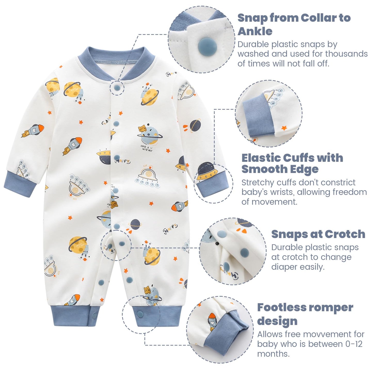 • Druckknopfverschluss vom Halsausschnitt bis zum Boden für einfaches Windelwechseln. Ideal als Geschenk für frischgebackene Eltern oder für Ihr eigenes Kind.