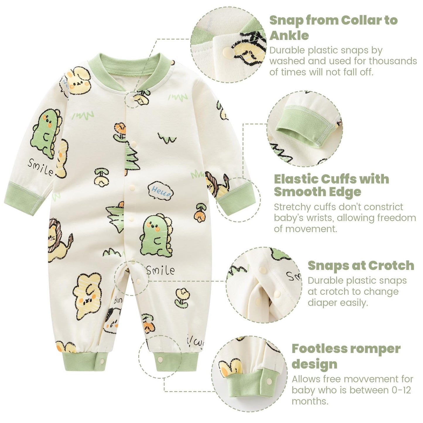• Erhältlich in verschiedenen Größen (0-12 Monate) für Babys jeden Alters. Maschinenwaschbar für einfache Pflege und Instandhaltung.