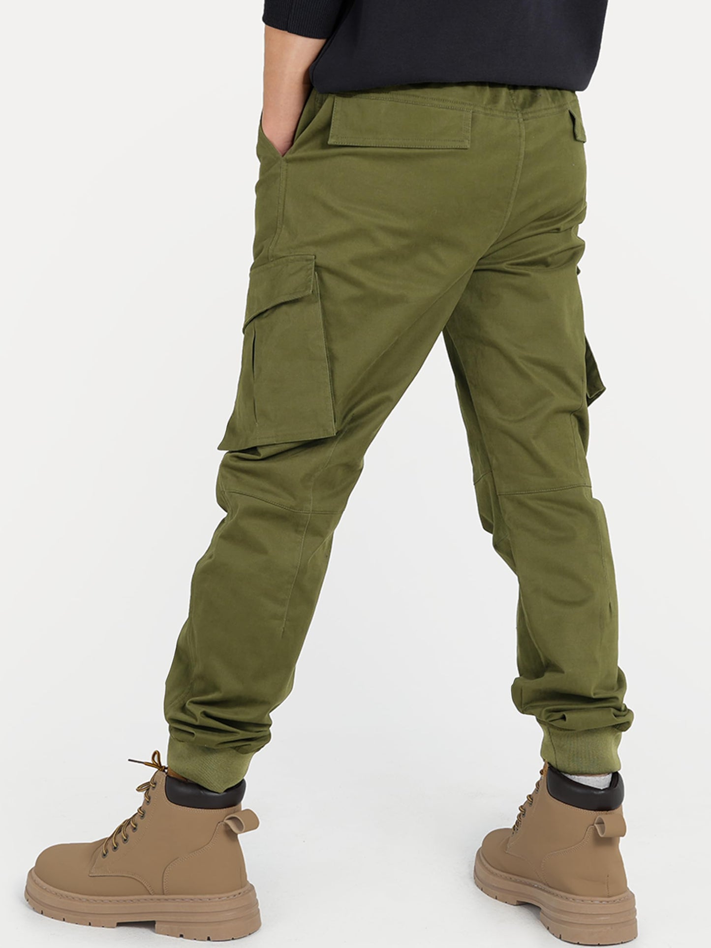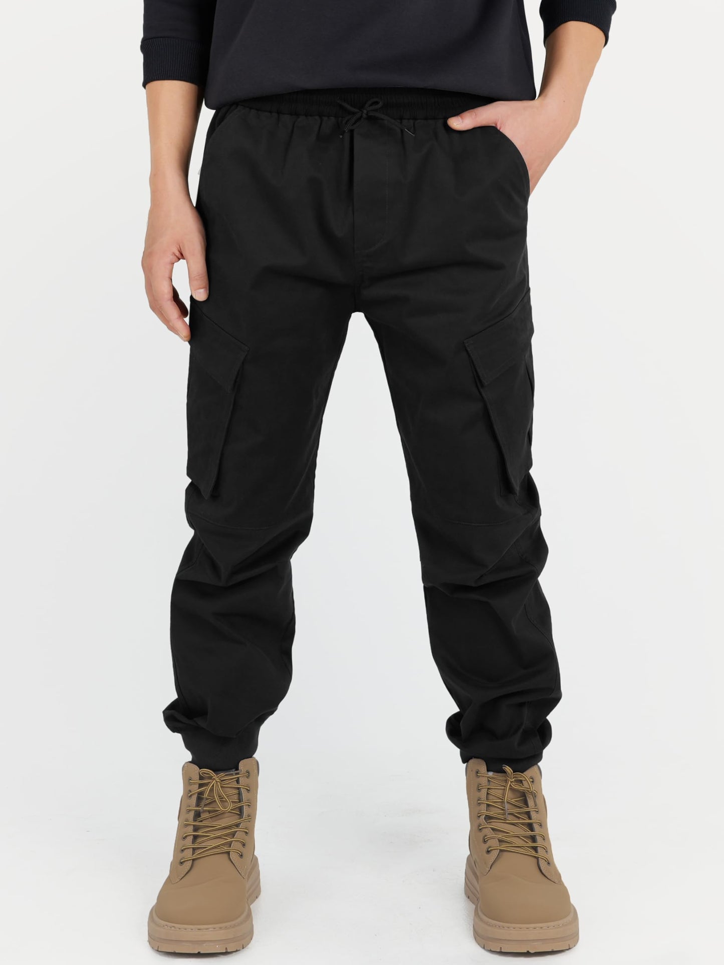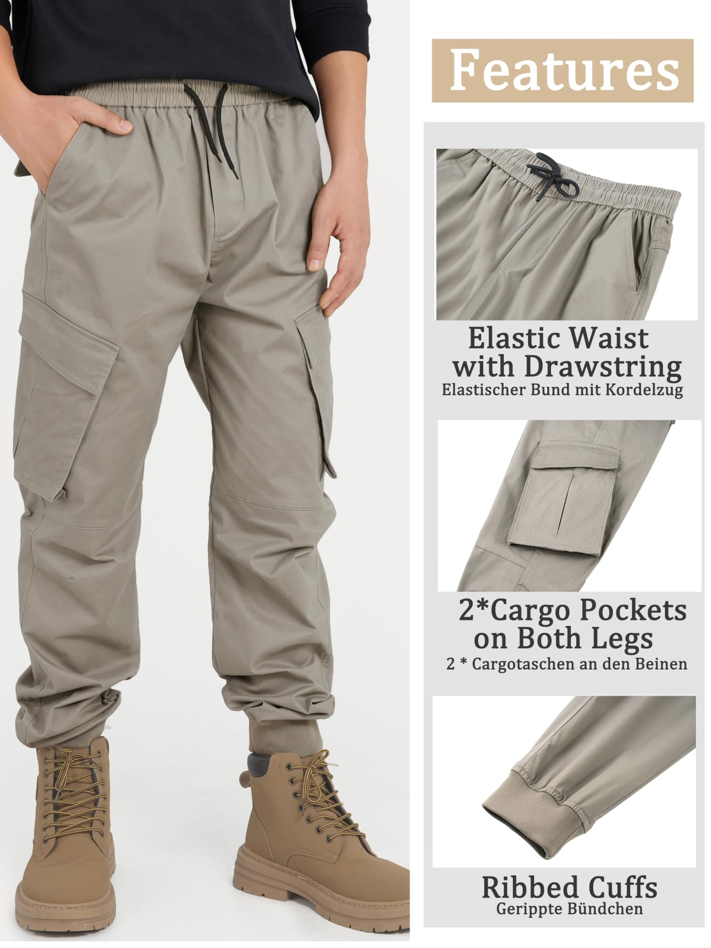 • Geripptes Bündchendesign: Cargohosen mit stylischen gerippten Bündchen bieten eine bequeme Passform und einen trendigen Look für jeden Freizeitausflug.