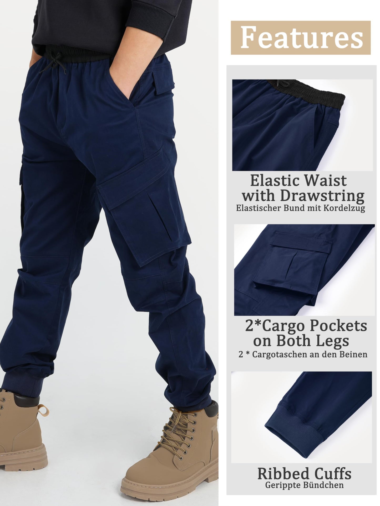 CAMLAKEE Jungen Jogger Hose aus Twil Cargohose mit elastischem Bund