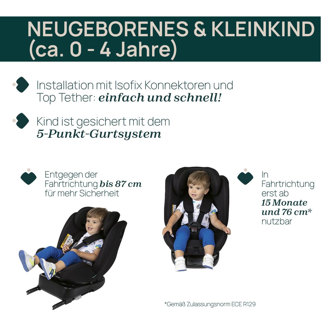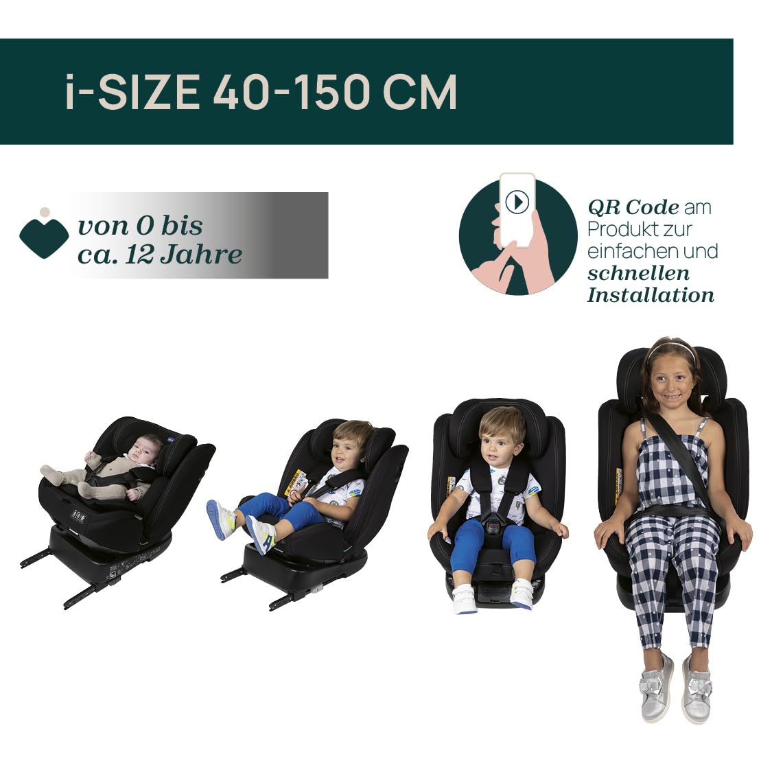Chicco Unico Evo I-Size, Kindersitz 0-36 Kg, für Kinder von 40 bis 150 cm, homologiert ECE R129/03, Isofix 360° drehbar und neigbar, Gruppe 0+/1/2/3 von 0 bis 12 Jahren, Schwarz