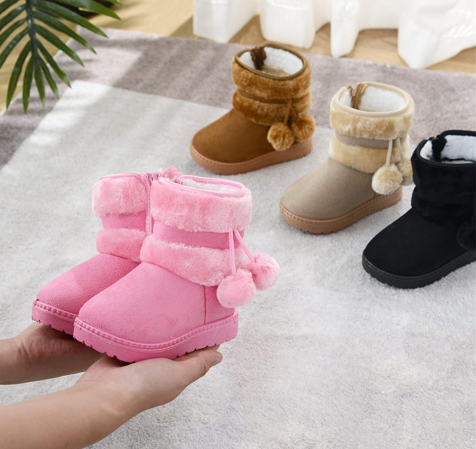 Children's Warm Lined Snow Boots, Girls' Winter Shoes, Baby Non-Slip Boots, Toddler Shoes, Soft Soles, Slip-On Boots