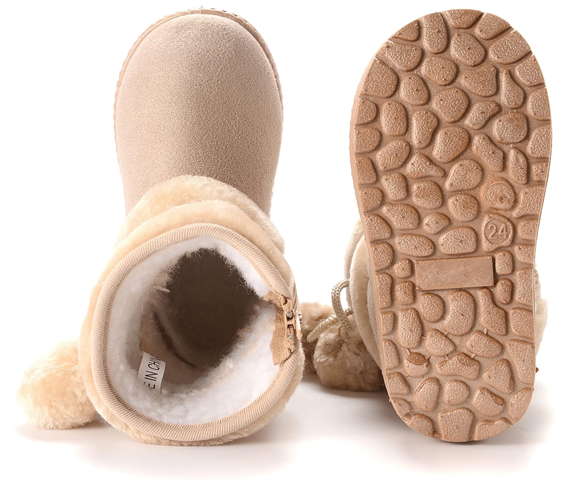 • Vorgelen Girls Winter Snow Boots Fur Lined Warm Ankle Boots Toddler First Walking Shoes Soft Sole Cotton Booties (152 Brown - Size 5 UK Child = Label 22)