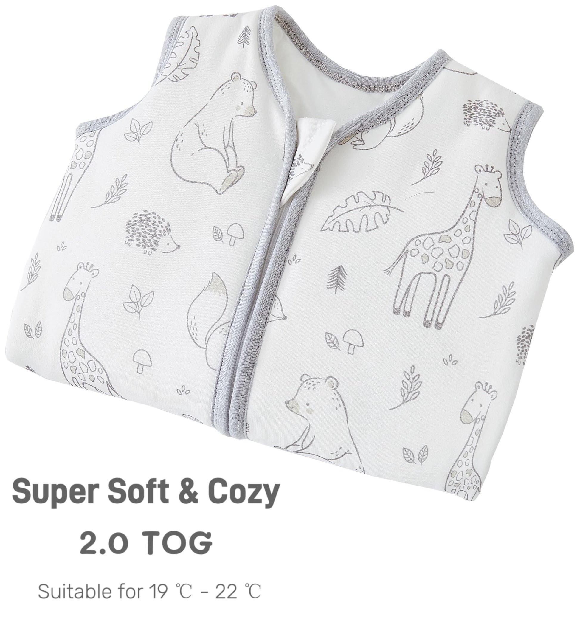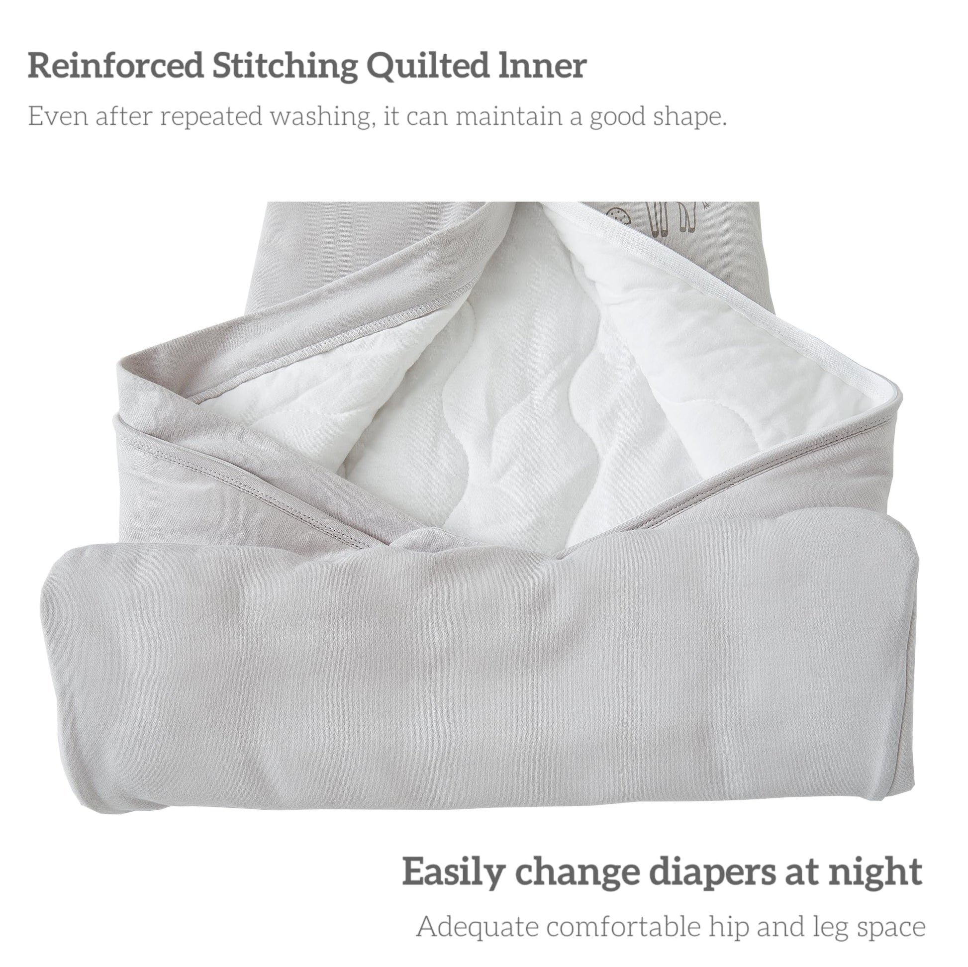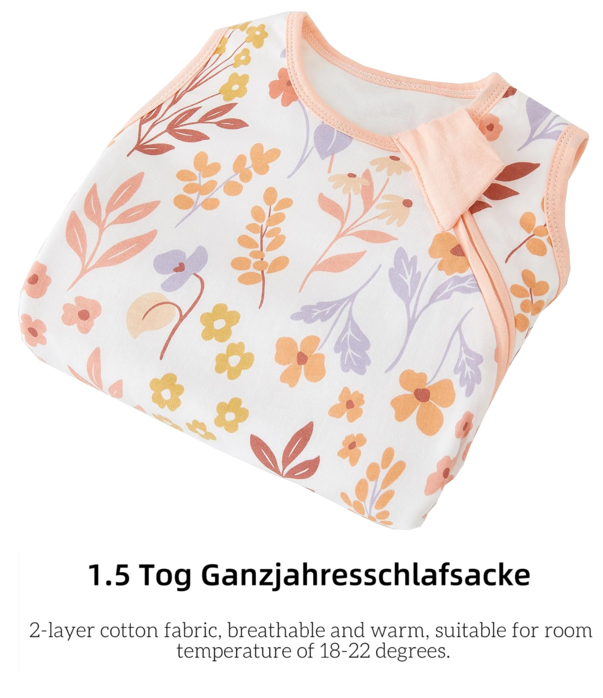 • High-quality material: the baby sleeping bag is made from 100% cotton fabric, filled with 100% recycled fibres (polyester), super skin-friendly, soft and warm.