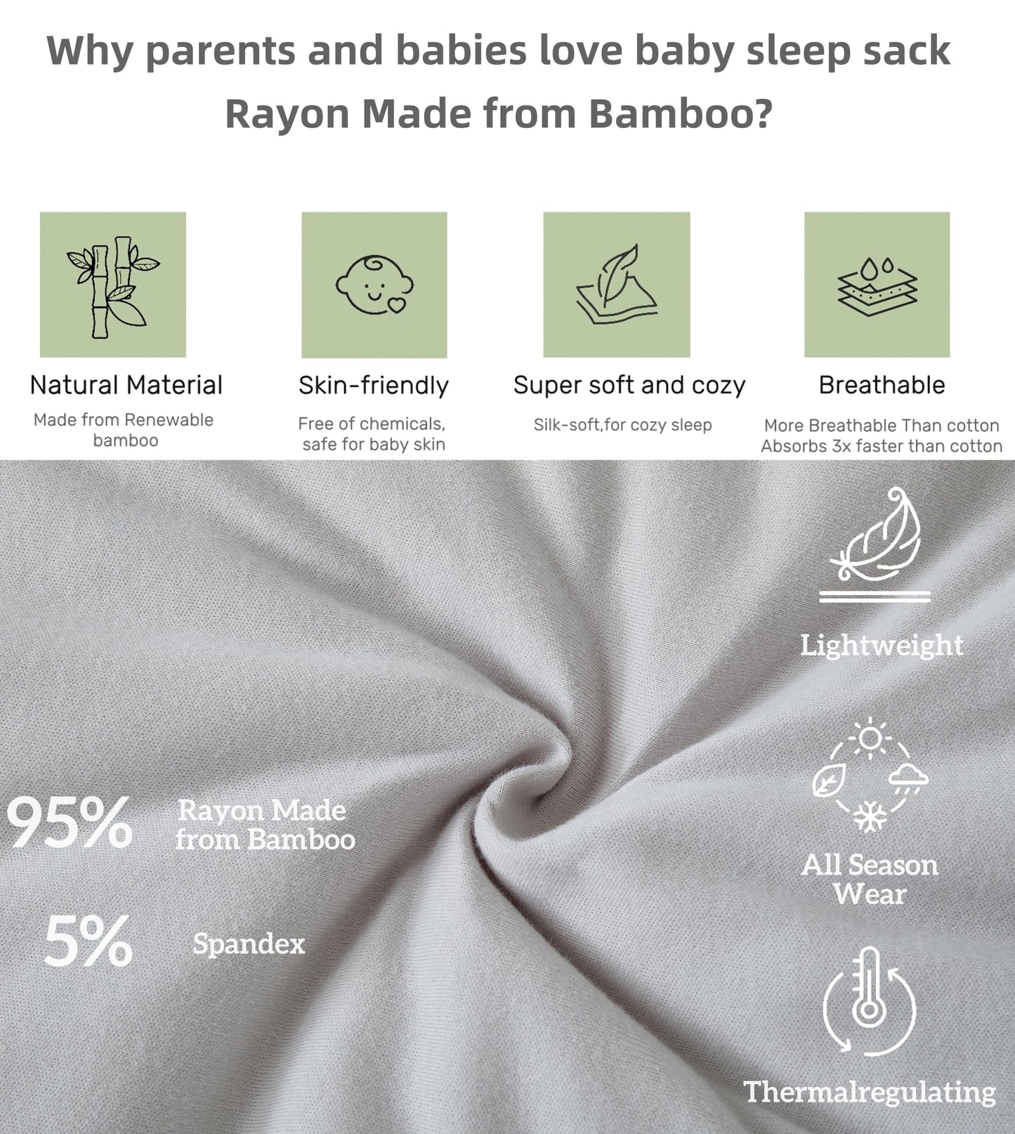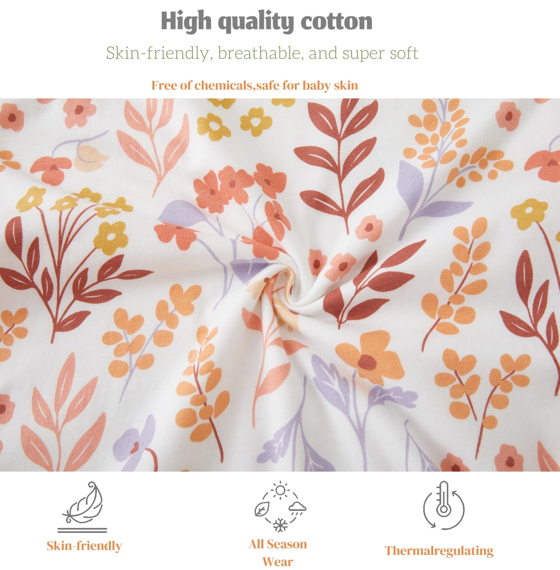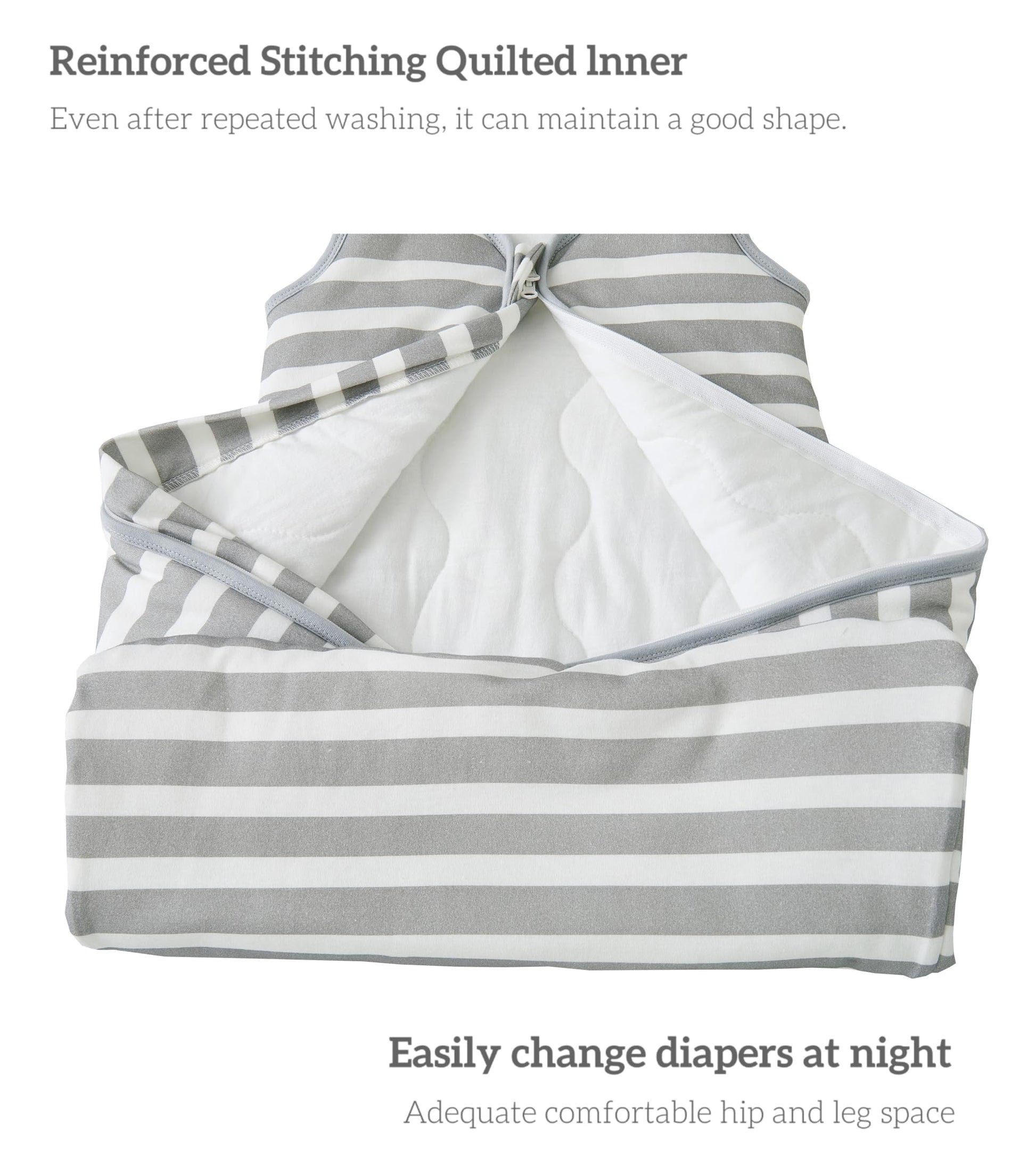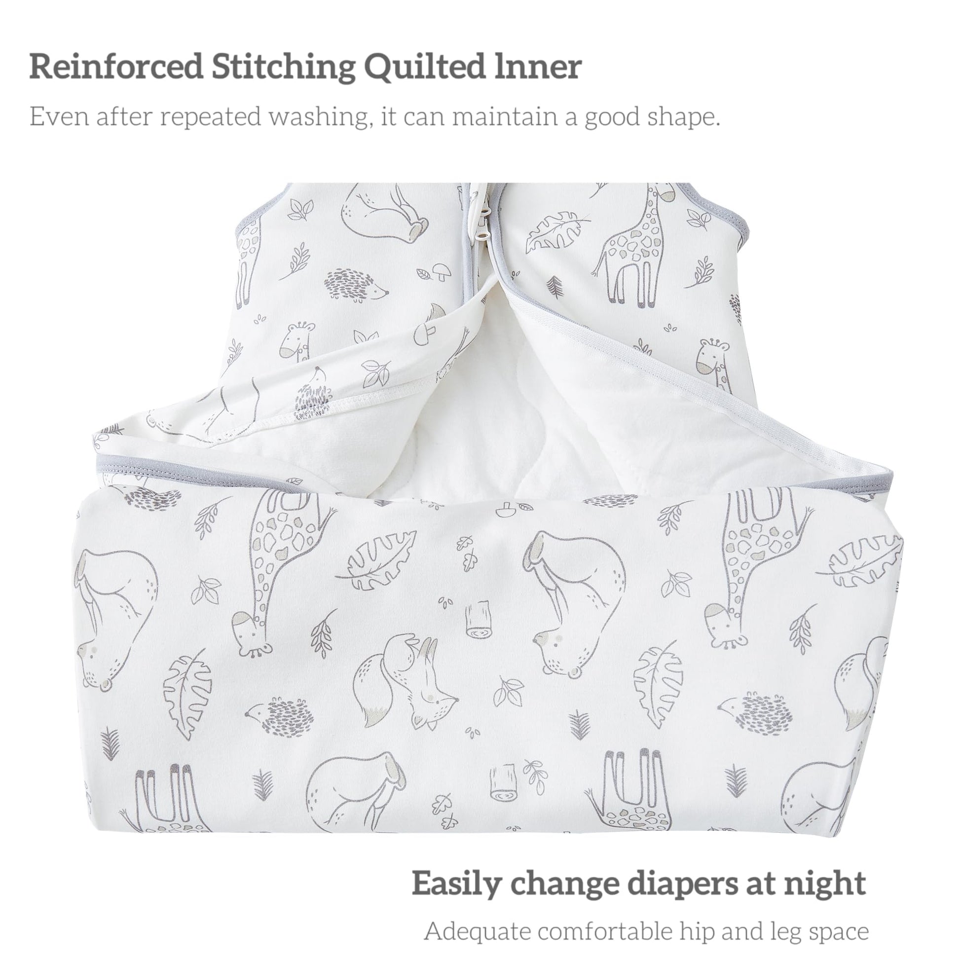 • High-quality material: the baby sleeping bag is made from 100% cotton fabric, filled with 100% recycled fibres (polyester), super skin-friendly, soft and warm.