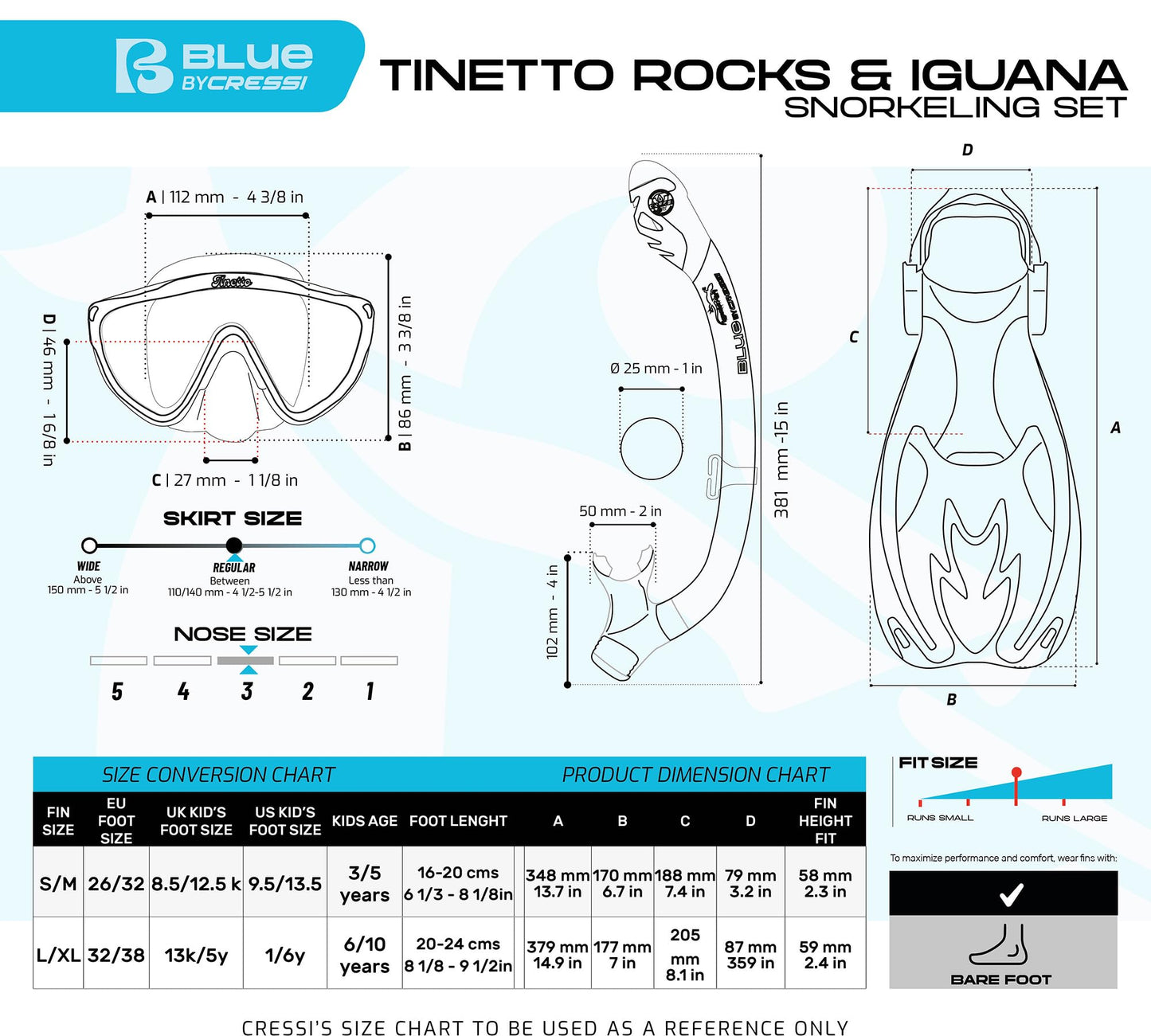 • The Tinetto Rocks Dry Set was designed in Italy by Cressi and made in China. Cressi has been an Italian pioneer brand for diving, freediving and snorkelling equipment since 1946.