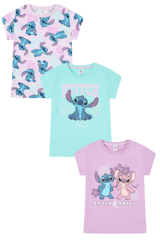 Disney Mädchen 3er-Pack Lilo und Stitch T-Shirts Kinder Angel Sommertop Kurzarm-T-Shirts