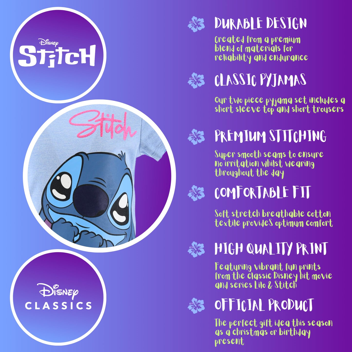 Disney Stitch Pyjamas für Mädchen, Stitch Design 2-Teiliges T-Shirt und Shorts-Set für Mädchen, Geschenk für Mädchen, Größen 6 bis 12 Jahre