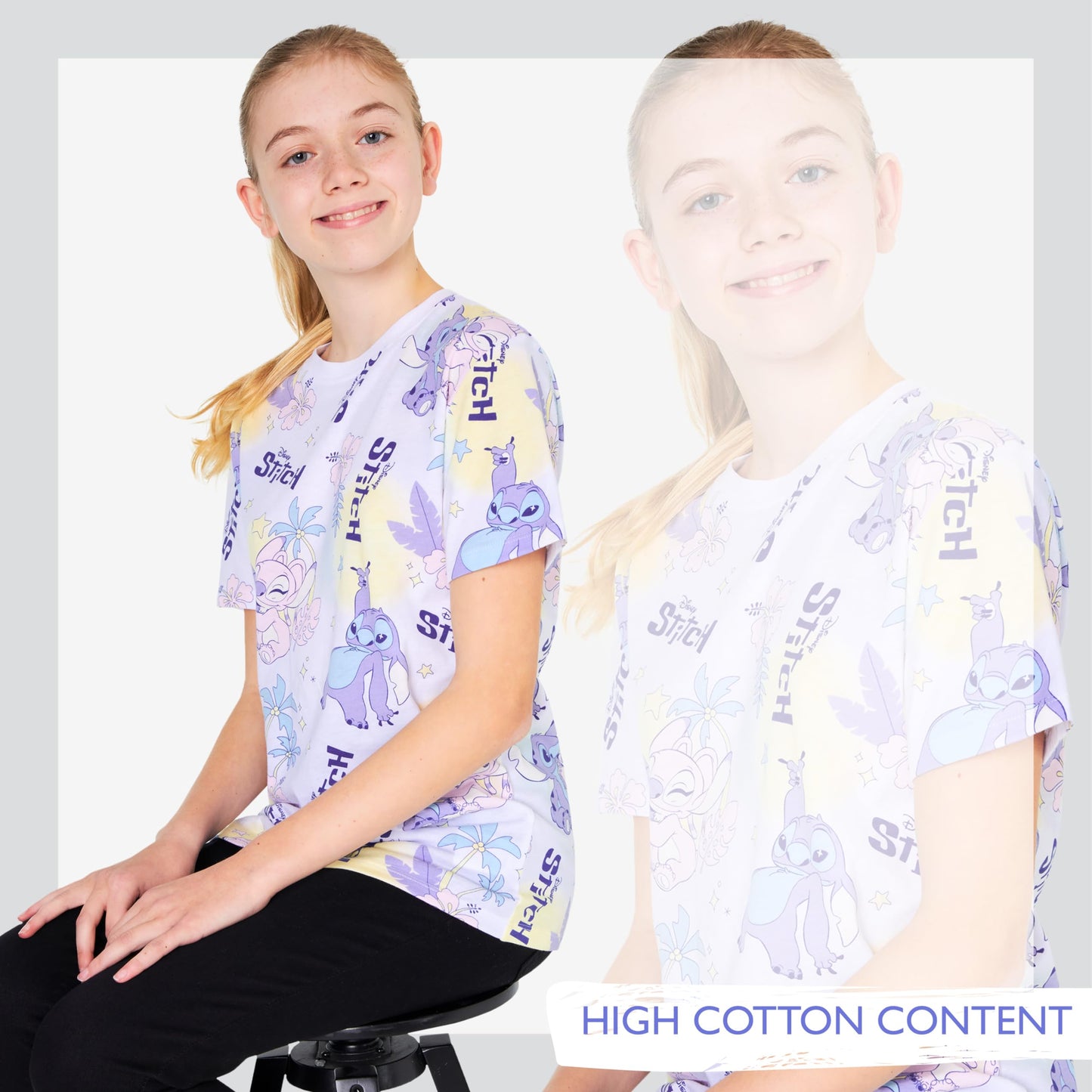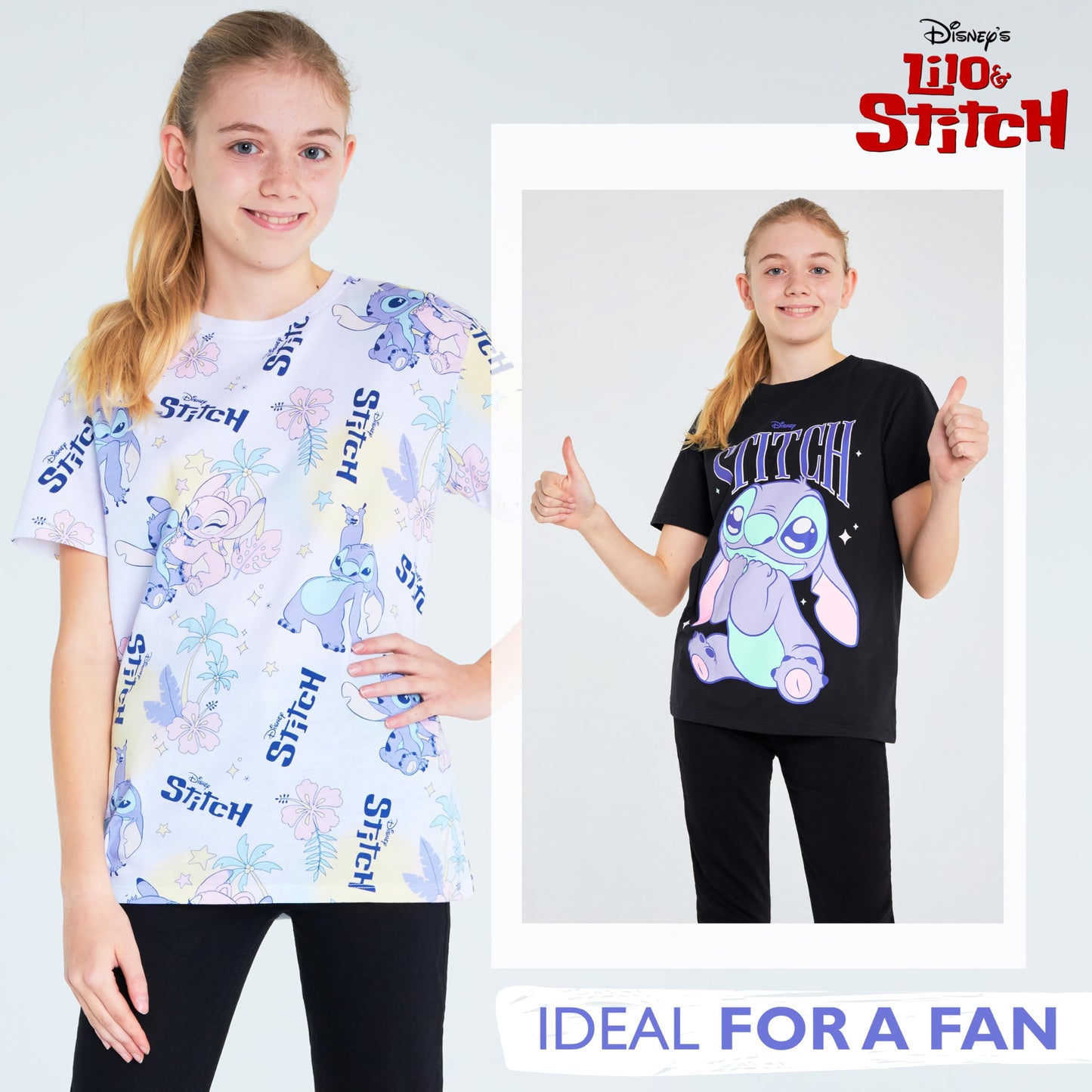 Disney Stitch T Shirt Mädchen Teenagers mit Rundhalsausschnitt 2er Pack Farbenfrohe T-Shirt Kinder Set Geschenke für Mädchen